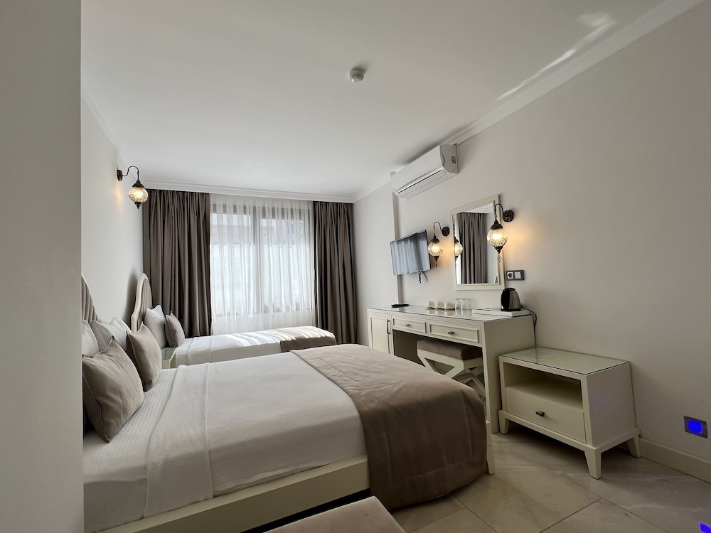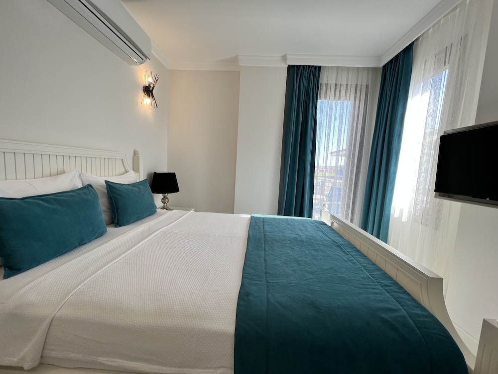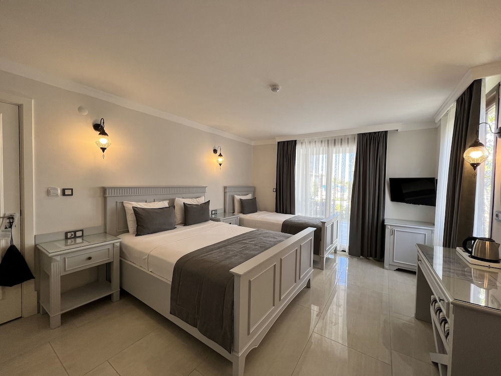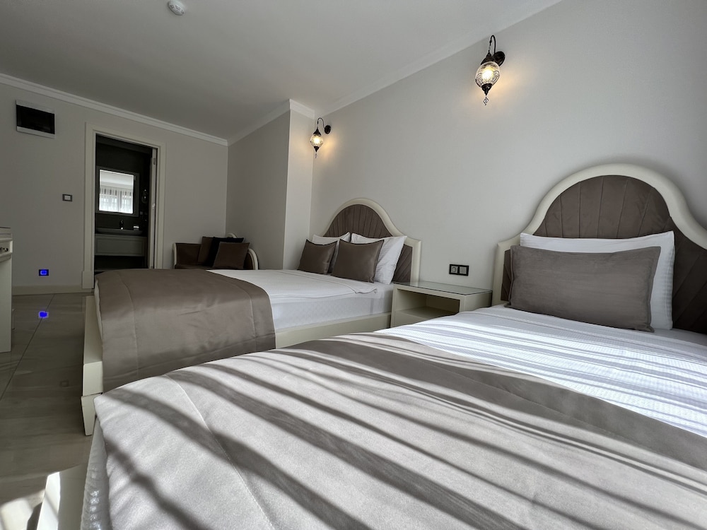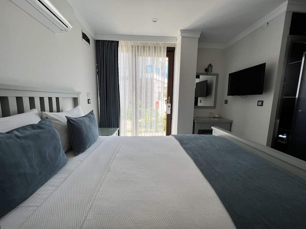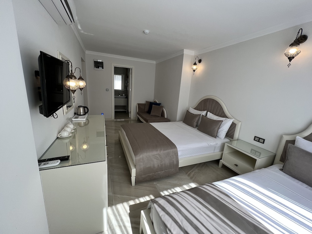 Temiz ve düzenli odalar, konforlu bir yatak vardı. Tuvaletin cam ile odadan bölünmesi rahat bir kullanım sağlamıyordu. Odada gece mavi ışıkları kapatmak isterdim, bir de sineklik olsa güzel olurdu. Kahvaltısı gerçekten güzel, memnun kaldık. Denizini tercih etmem. Merkeze oldukça yakın ve gürültüsünden uzak, sakin bir otel. Tavsiye ederim.