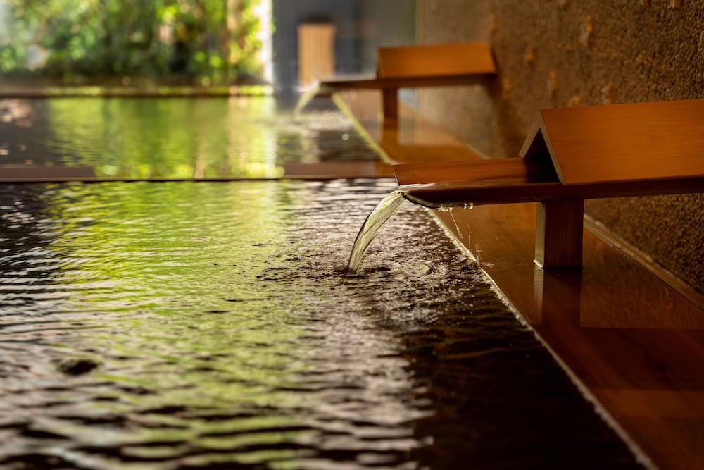 Indulge in the relaxing hot springs and soak in the breathtaking views from the terrace and garden of Hoshino Resorts KAI Beppu.