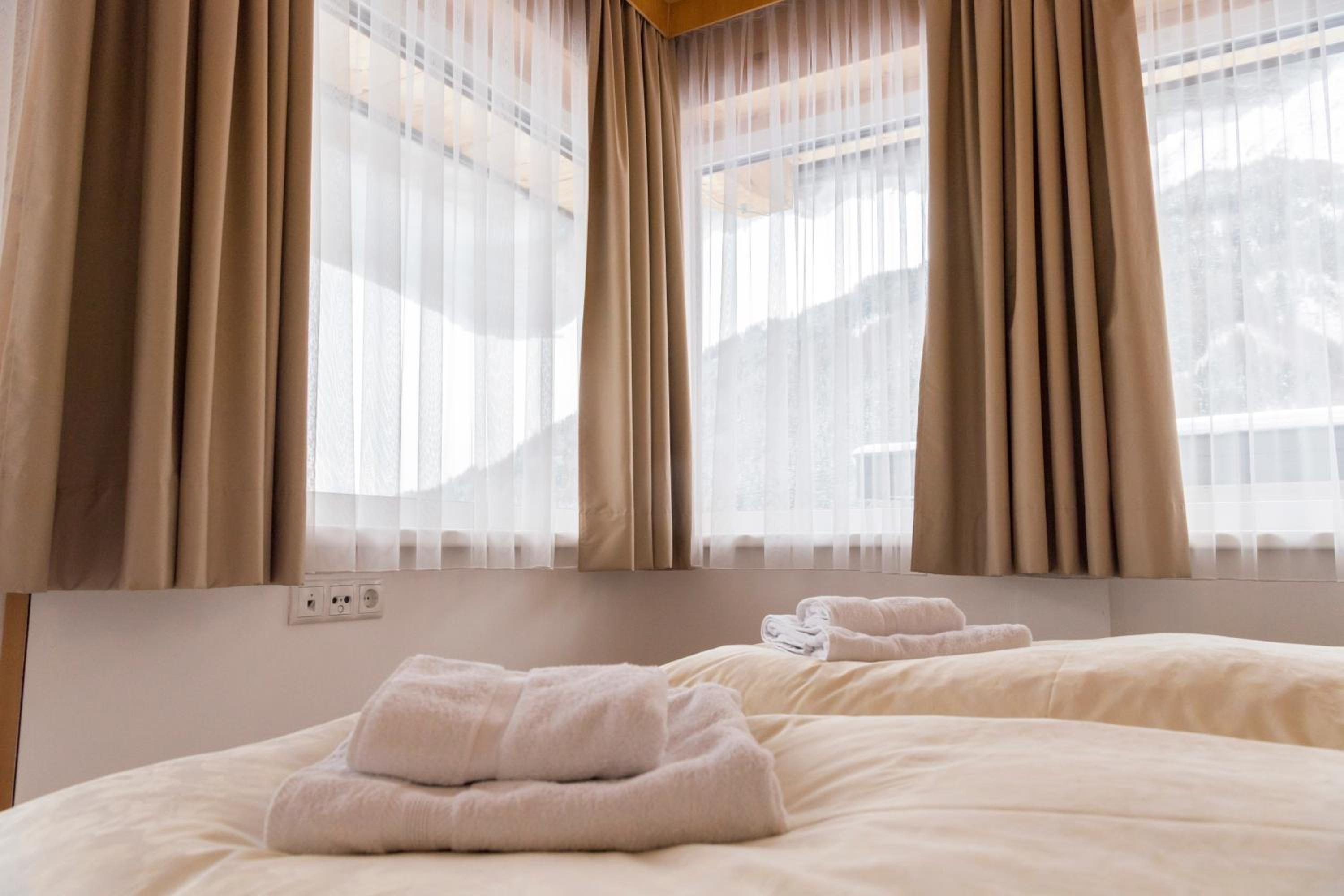 The rooms were ideal for our needs. We had 3 family rooms with each containing two bedrooms and 3 single rooms with one these having the optional 3rd bed. The beds were very comfortable and there was enough closet space for all our ski gear and clothes. The shower and toilet had separate rooms which I thought was a clever idea.