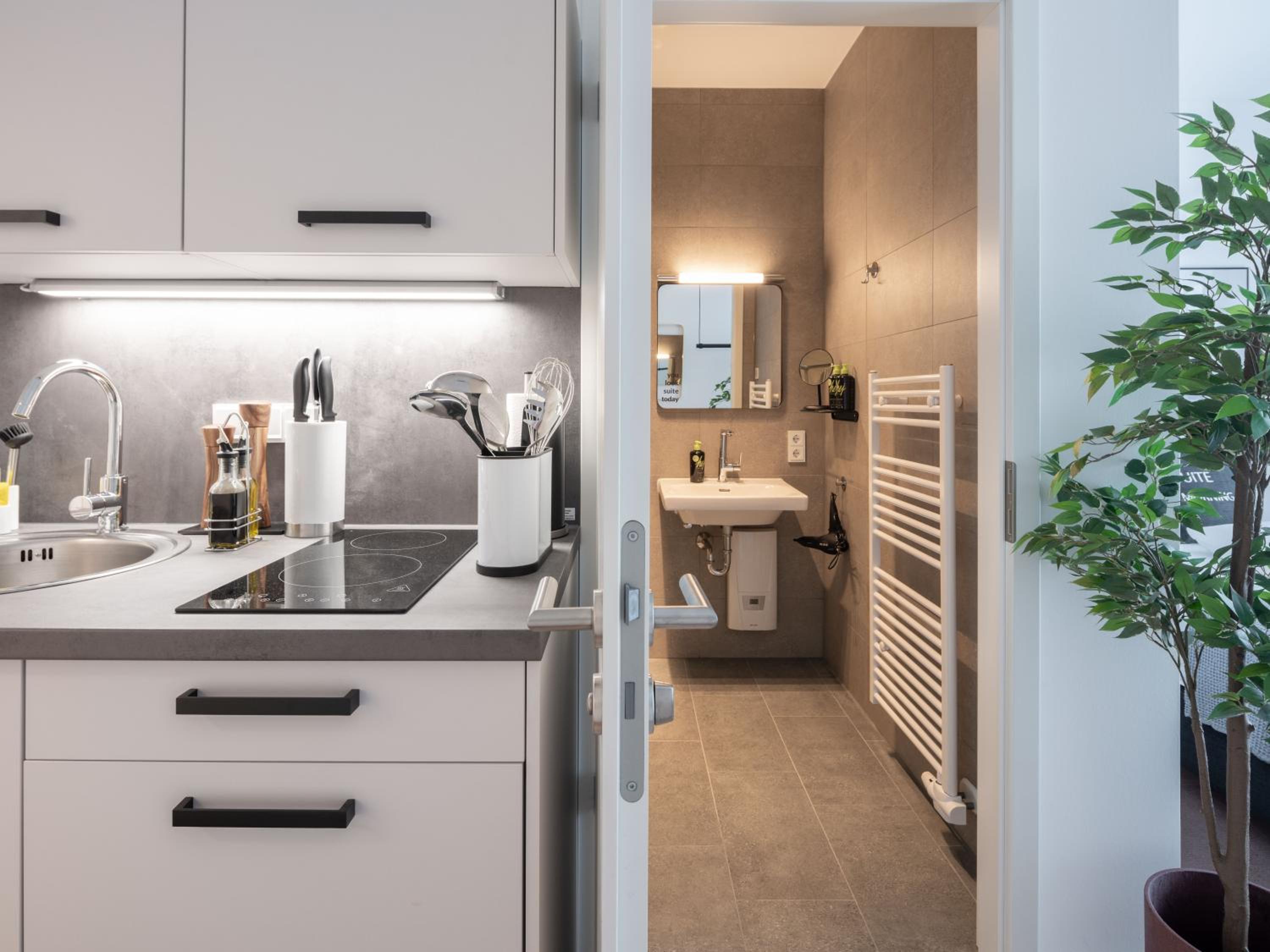 I was in one of the smaller studios. Well laid out, well equipped kitchen, nice shower, it was great for one person, would do for two. Very close to main rail station, transit, and business district.