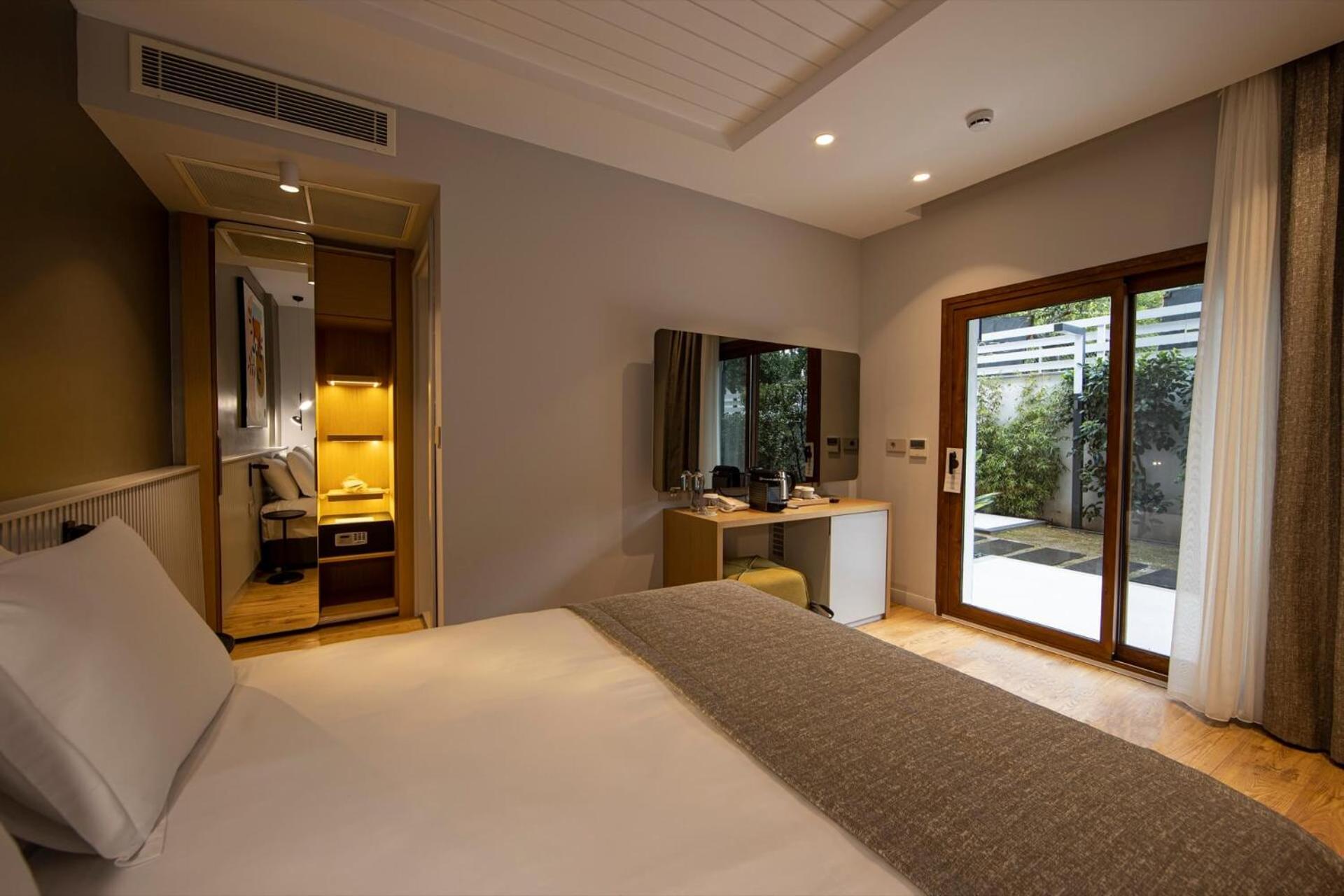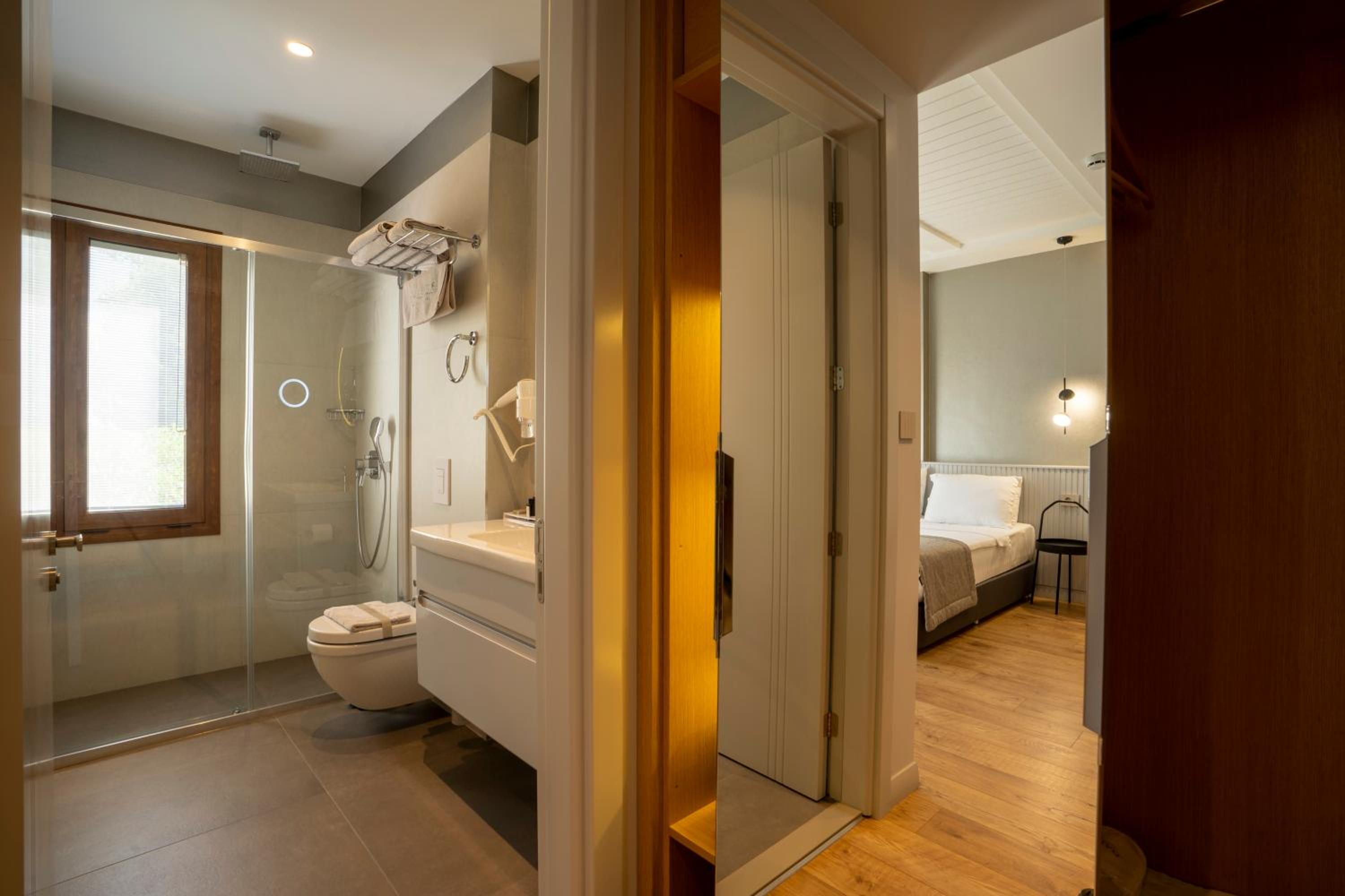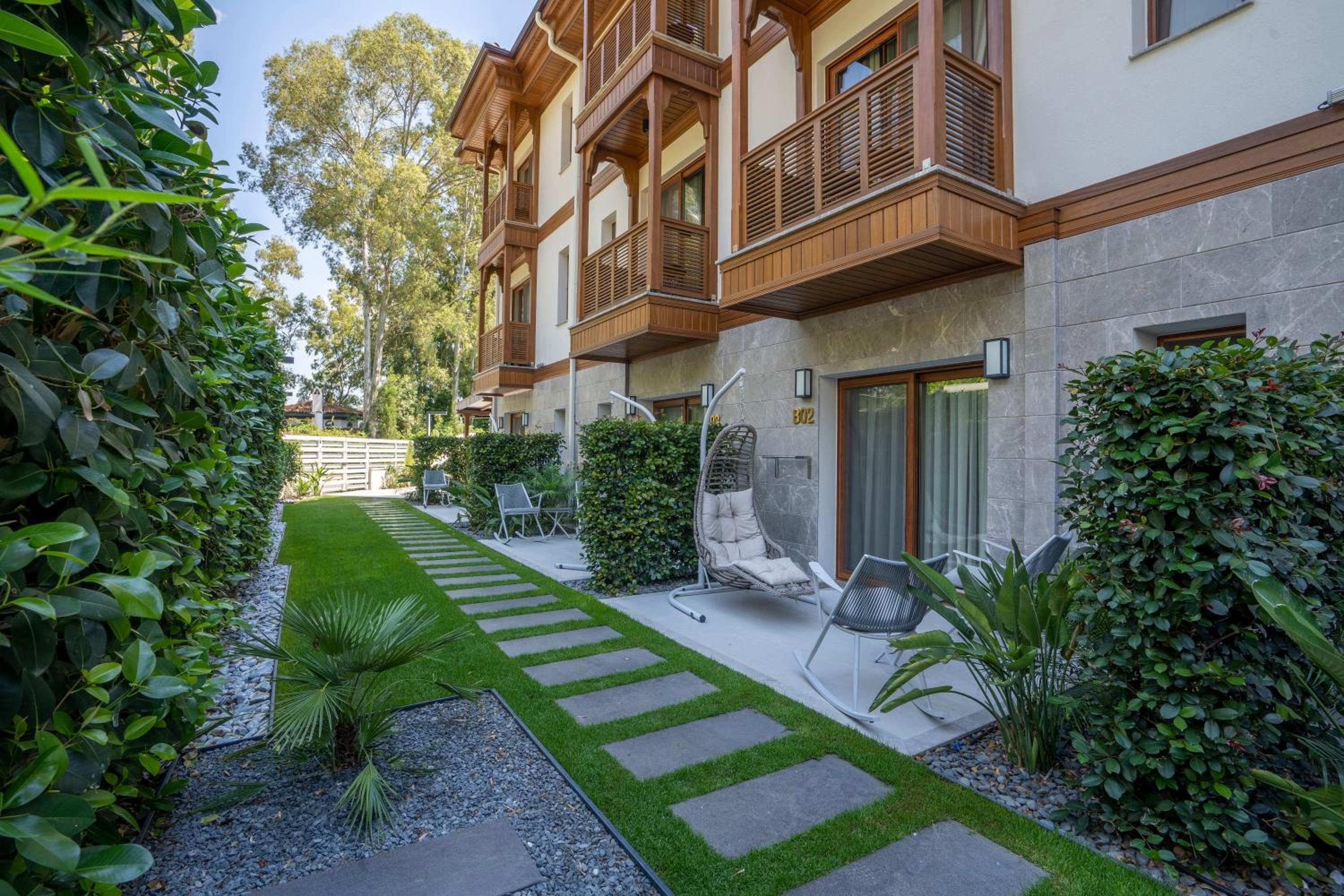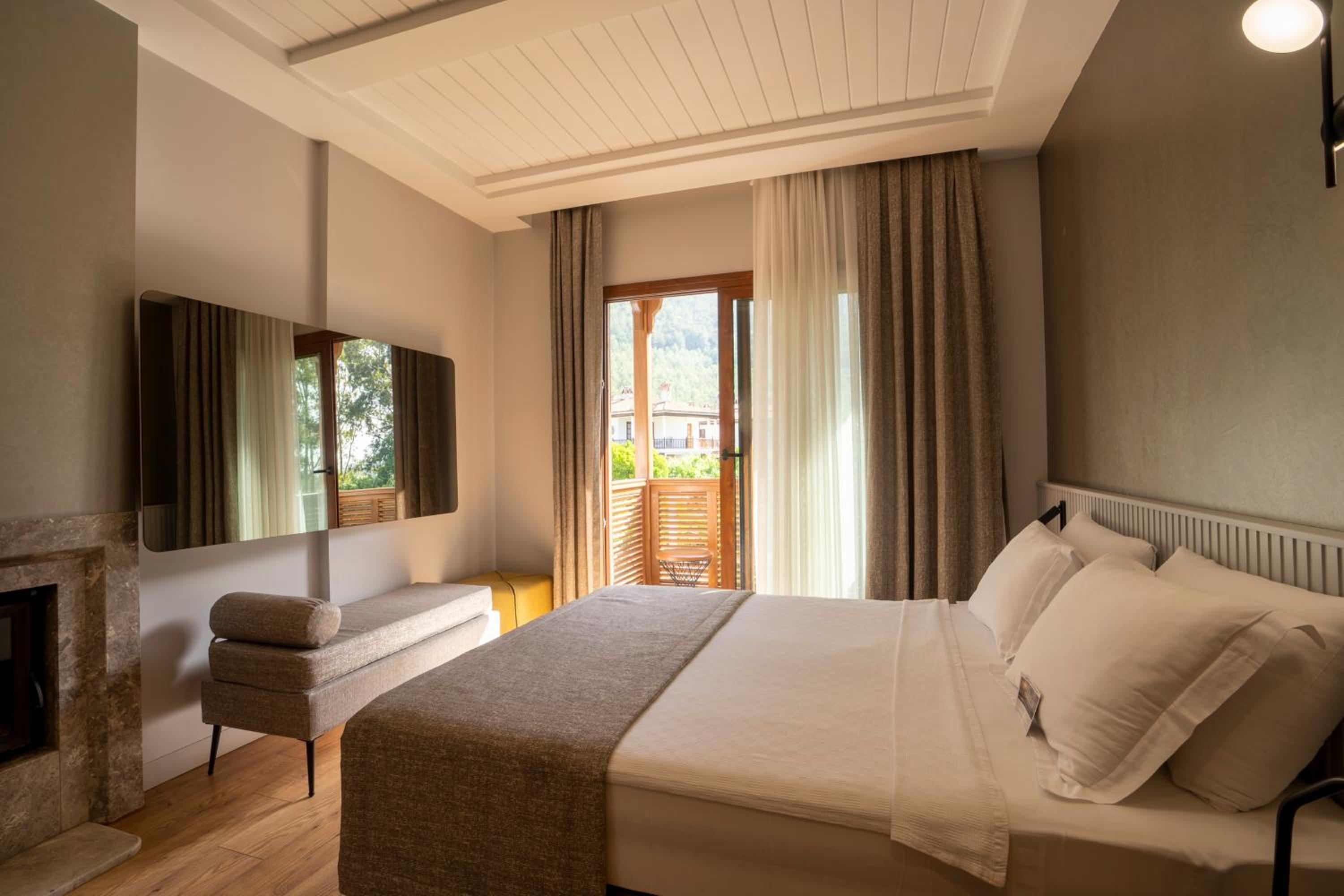 Guests can unwind by the seasonal outdoor swimming pool, stroll through the lush garden, or enjoy a meal at the hotel's restaurant terrace. The perfect setting to rejuvenate and soak in the tranquil atmosphere of Akyaka.