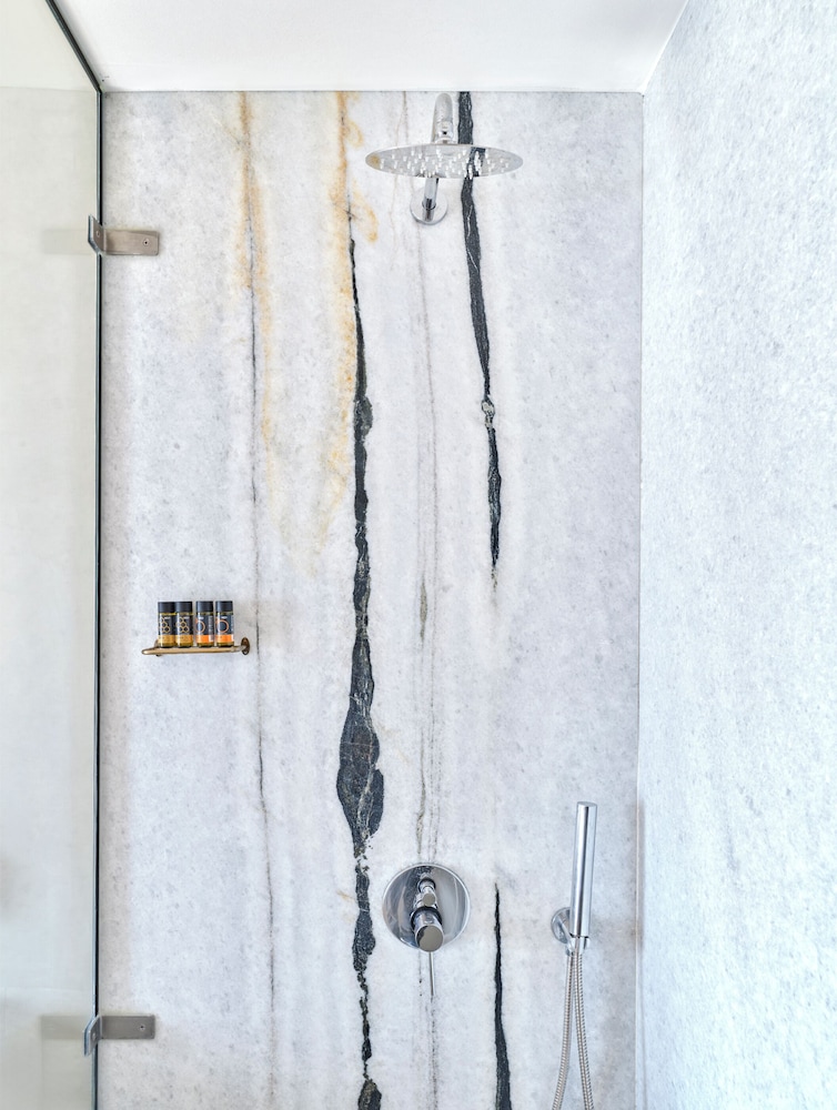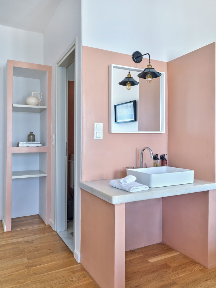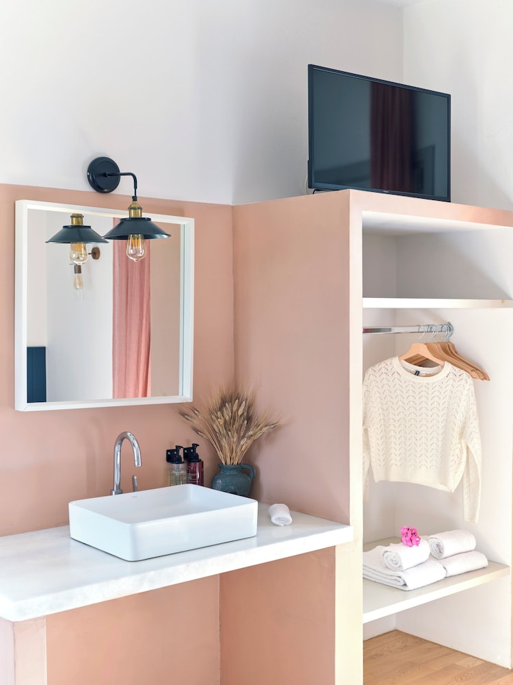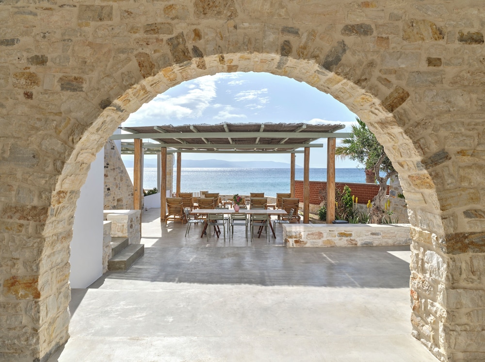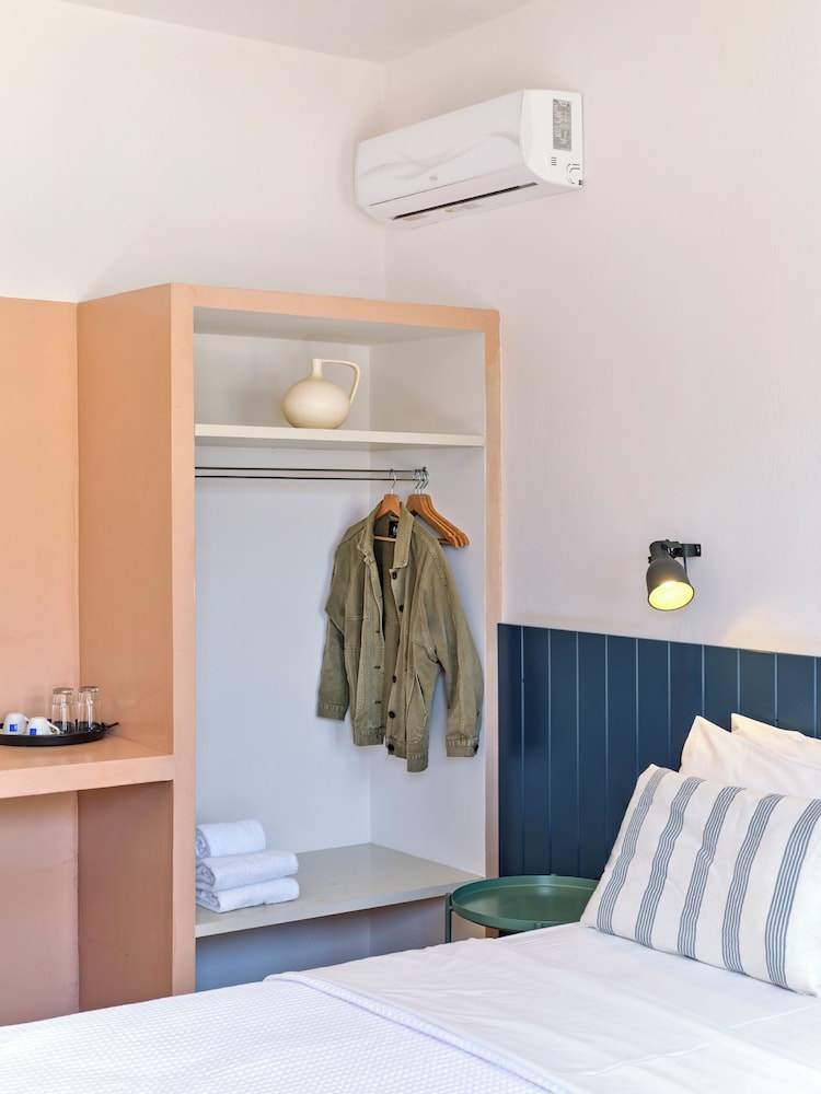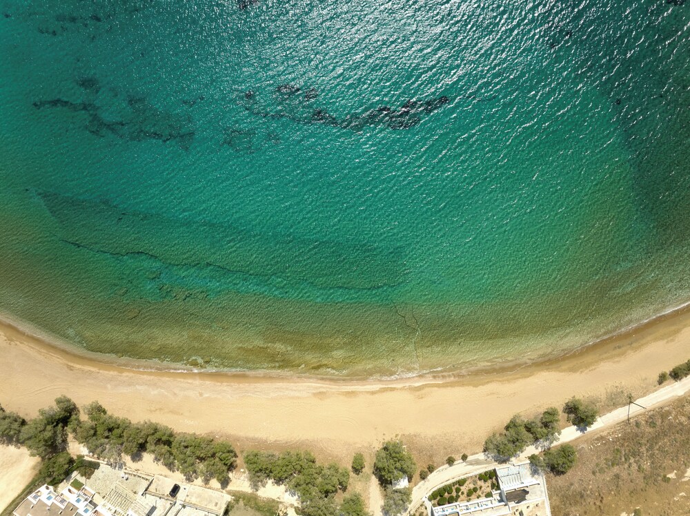 Beautiful luxurious hotel, recently decorated in tastily cycladic modern style. The room (suite) was clean and spacious with a small kitchenette and a fridge. Free parking was on site. Watch the exit from the parking, it has limited view. There is a convenient store 10 metres from the hotel and a small supermarket at 400-500 metres. At about 400 metres along the beach there is a large beach bar music area with two swimming pools, wooden bridges and a variety of tasteful and quaint areas. The hotel staff were very helpful and eager to please. The breakfast was on the healthy side, and relatively pricey compared to the tavern next door which had more basic breakfast however at half price. The hotel is a stone throw away form the beach and our balcony on the 1st floor was inviting and felt right on the beach. The two comfortable loungers and umbrella for the beach could be rented for a reasonable price of 12 Euros/day.