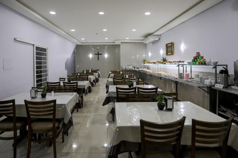 Hotel mt perto da Basílica, pode ir à pé até a Igreja. Conforto e café da manhã razoáveis para quem está indo com a finalidade religiosa e não de passeio. Não fiz pacote com almoço e jantar, mas existe esta opção ao comprar a diária, então não posso avaliar as refeições. É fornecida a roupa de cama e banho em quantidade necessária ao uso diário. O hotel precisa de pequenos consertos, tipo bocal de torneira, vedação de água no box do banheiro, mas nada que comprometa a permanência. Nao tem telefones nos quartos, pra falar com a recepção precisa descer. Enfim, um hotel para ficar pouco tempo, o suficiente pra fazer a peregrinação religiosa. Mas os funcionários são muito atenciosos e trabalhadores, se esforçam bastante para atender aos hóspedes. Meus agradecimentos e elogios para a Jaqueline e o Rodrigo da copa, e o Luiz na recepção. Este é espetacular na solicitude, atenção, educação e cuidado com o hóspede. Se eu tivesse uma empresa gostaria que o Luiz fosse meu funcionário. Fui muito bem atendida por ele. Nota 8 para o hotel, nota 1000 para os funcionários. Recomendo e voltarei a me hospedar lá.