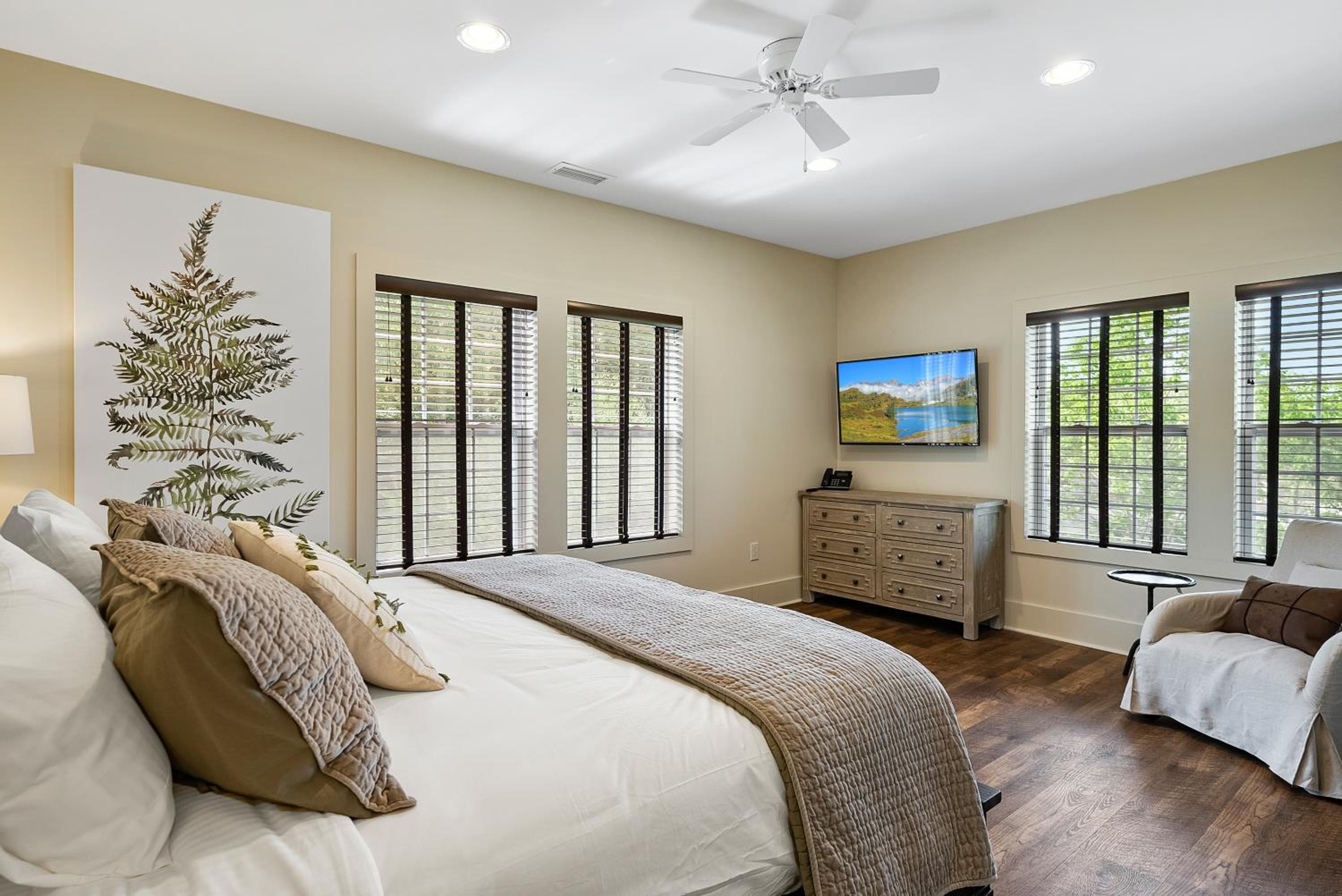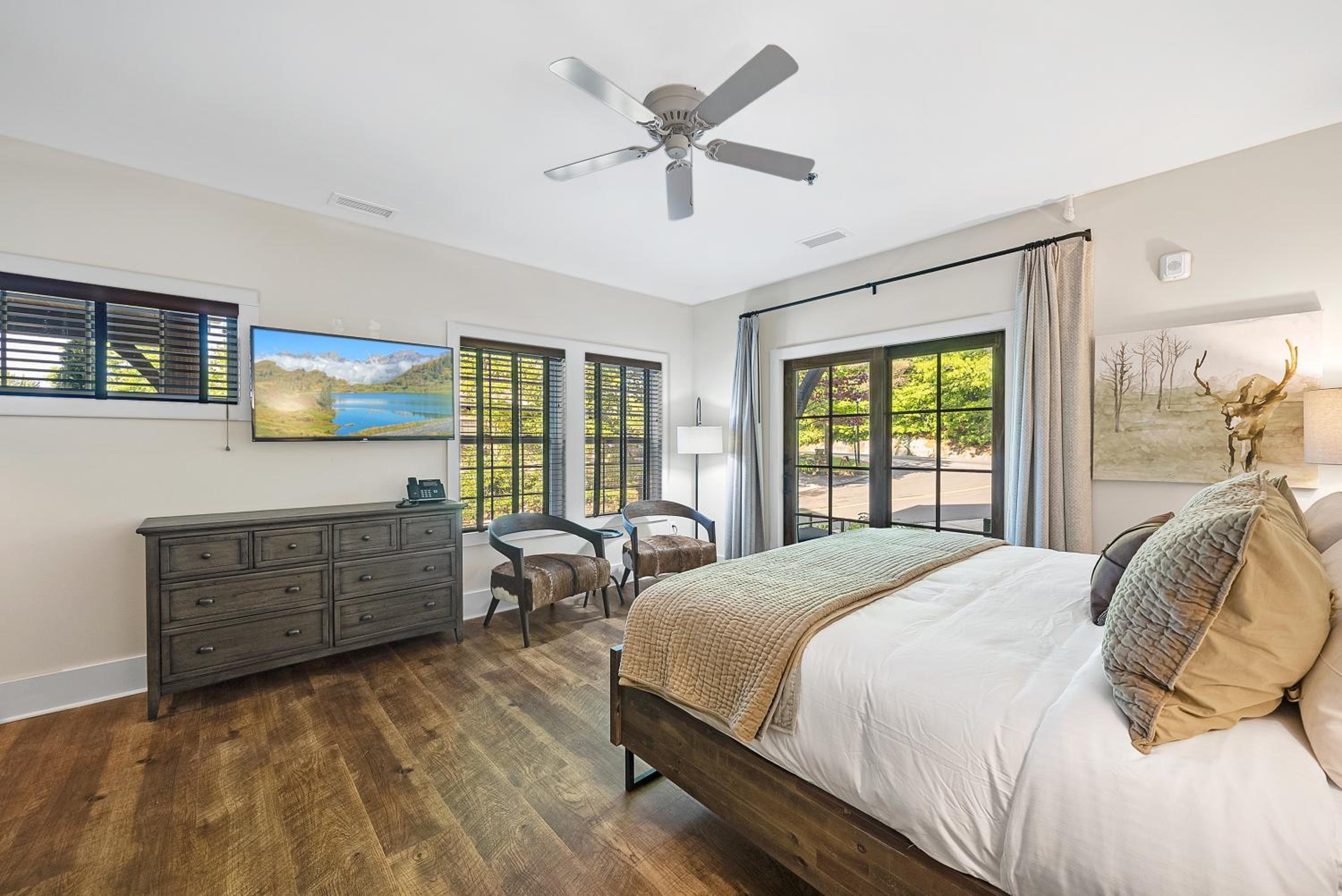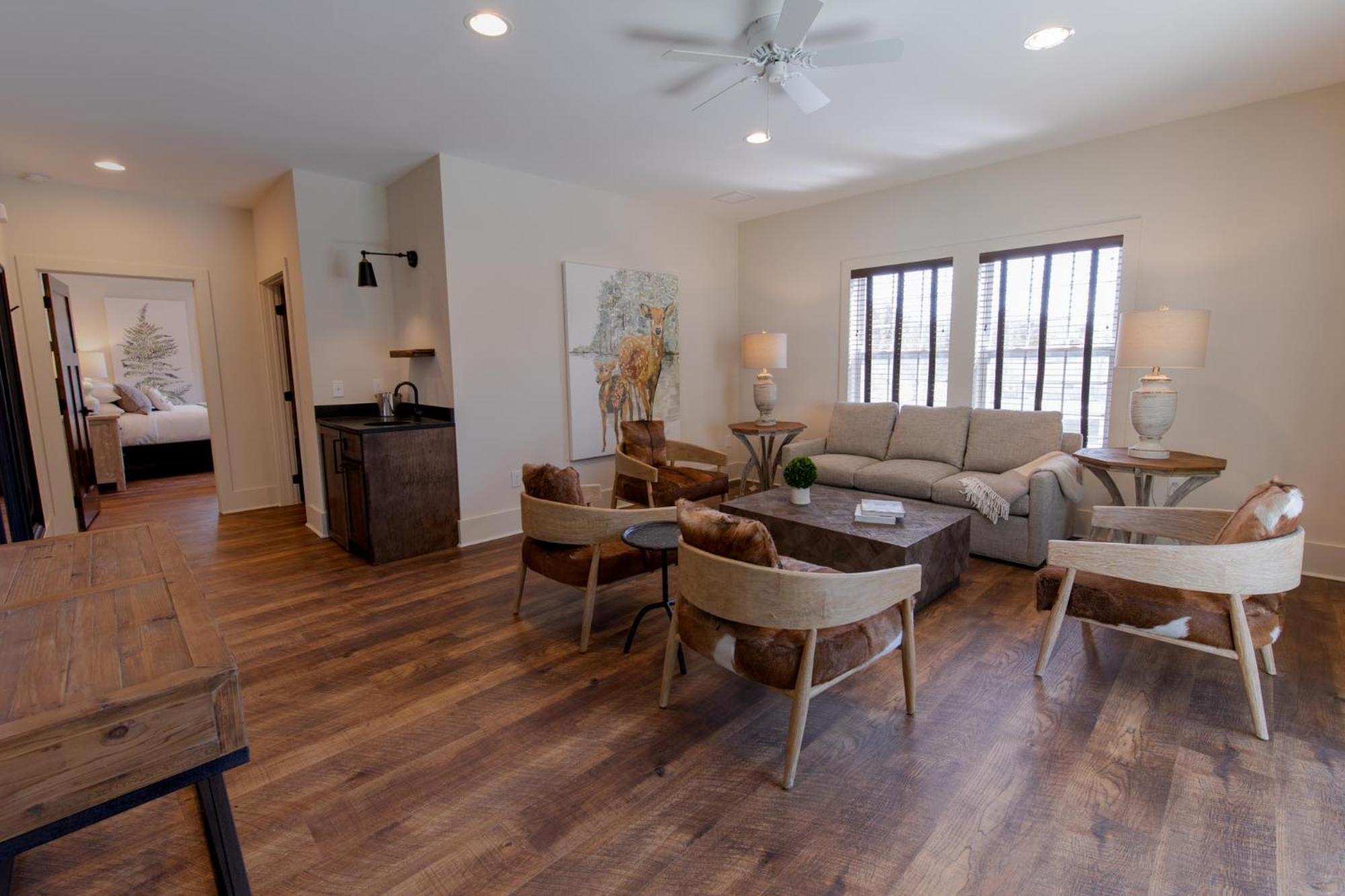 The property was clean, modern and new while conveying, comfort and cozy warmth! The lobby decorations and room were elegant. From the moment we stepped into our room, I couldn’t wait to sink down into the comfort of the amazing king-size bed. Our room was on the backside of the hotel and I particularly loved seeing the ducks that flew in every morning. While it was the perfect Winter getaway, we have also made plans to come back during the month of August. The hotel is perfectly situated with a beautiful view of either the woods or creek. It is a short walk into all the dining options in town.