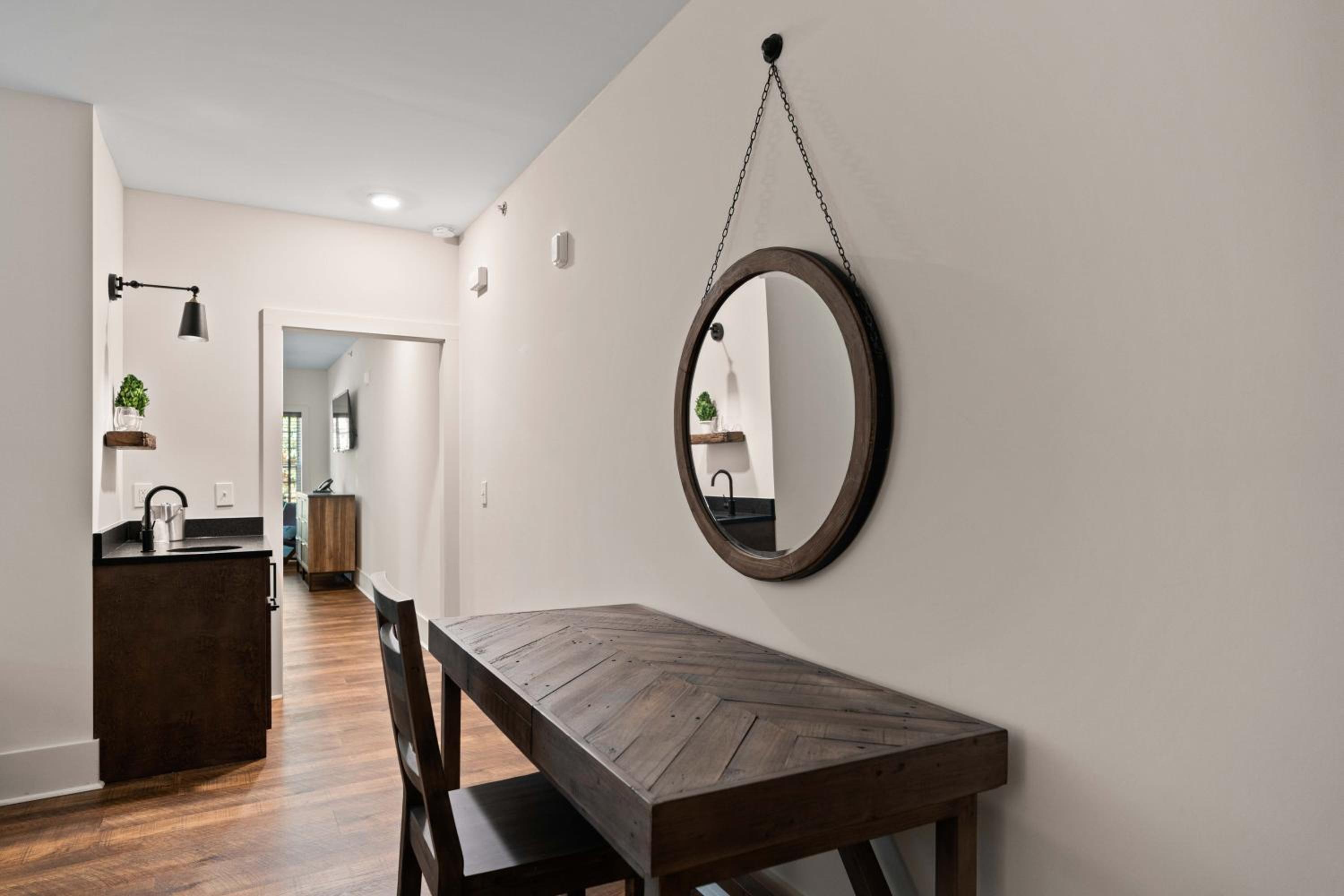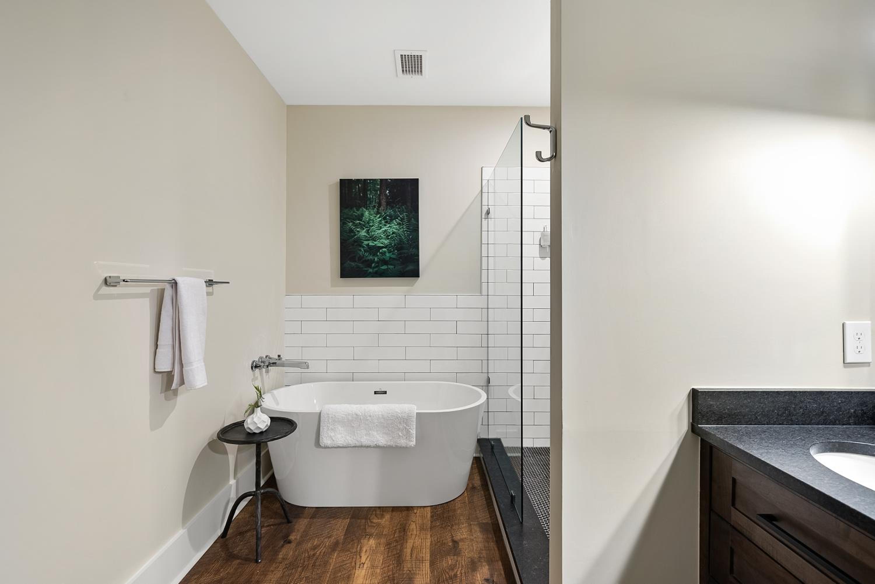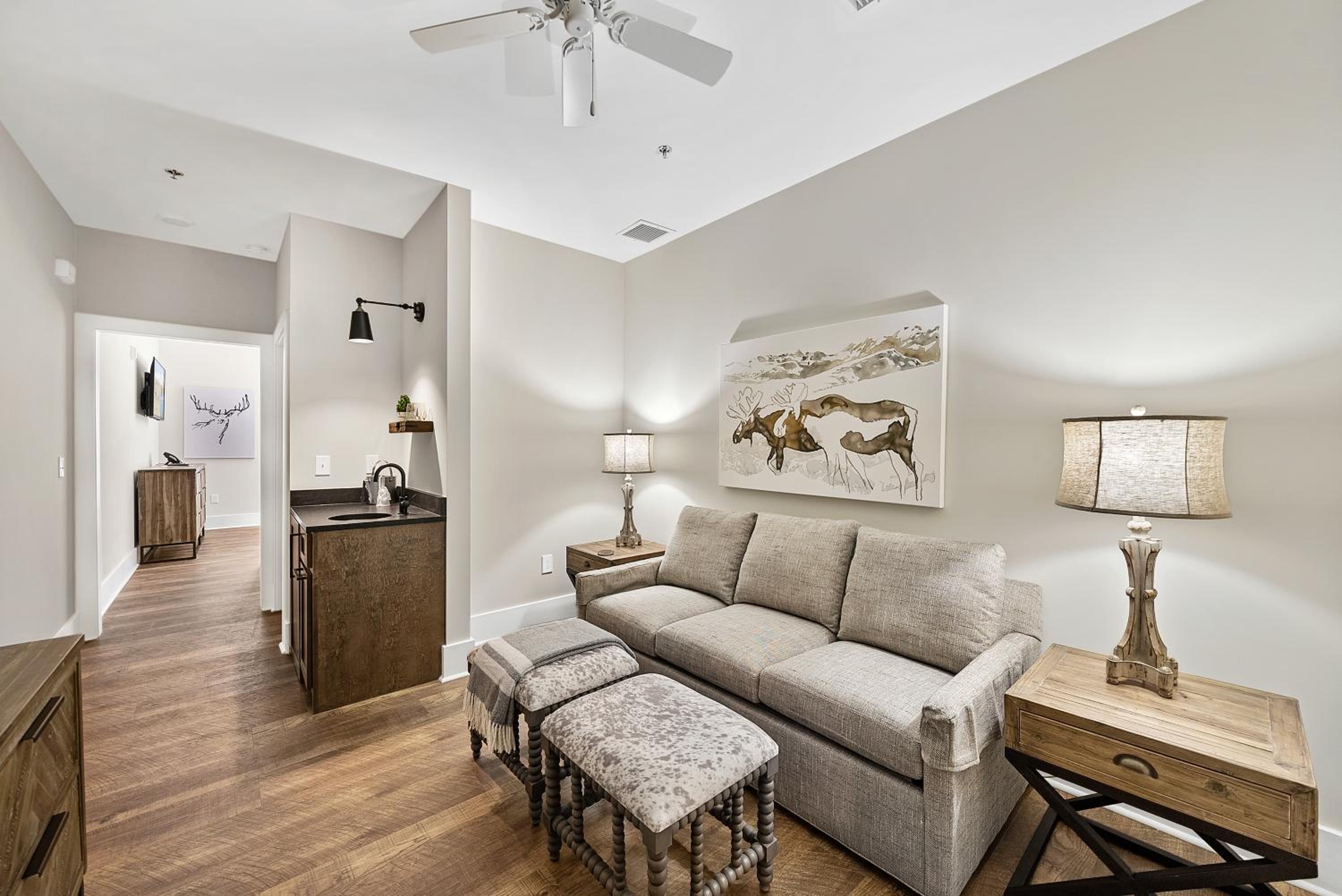 The property was clean, modern and new while conveying, comfort and cozy warmth! The lobby decorations and room were elegant. From the moment we stepped into our room, I couldn’t wait to sink down into the comfort of the amazing king-size bed. Our room was on the backside of the hotel and I particularly loved seeing the ducks that flew in every morning. While it was the perfect Winter getaway, we have also made plans to come back during the month of August. The hotel is perfectly situated with a beautiful view of either the woods or creek. It is a short walk into all the dining options in town.