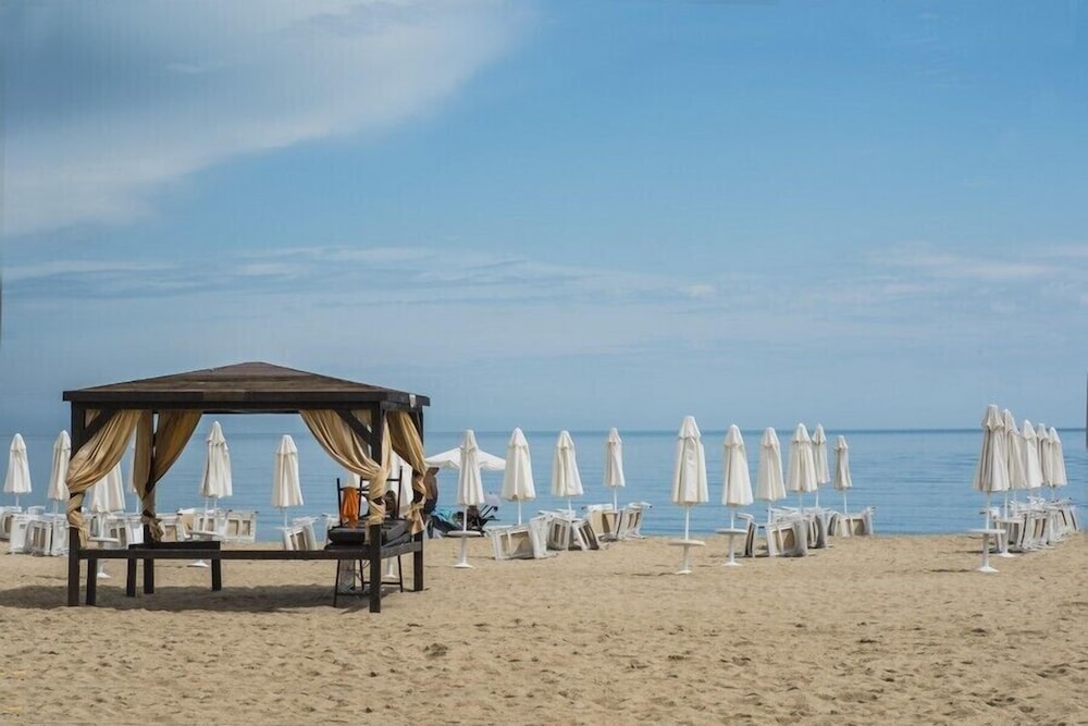 The hotel is modern, stylish, and offers everything needed for a relaxing vacation. The dining experience is excellent, with a wide variety of options to satisfy all tastes, and food and drinks are available throughout the day at multiple locations. Cleanliness is outstanding—staff are constantly maintaining public areas, which always look immaculate. The staff are also very helpful and friendly, making the stay even more enjoyable. We visited in September when the atmosphere was calm and uncrowded, making it easy to find poolside chairs and umbrellas. Evenings include an entertainment program, with schedules available at reception. Rooms are spacious, quiet, and comfortable, featuring balconies with chairs and a table—perfect for morning coffee with a sea view. The beach is just across the pedestrian walkway; while the hotel does not provide umbrellas or loungers, rentals are available nearby. The area is walkable and safe, ideal for evening strolls to the shopping district, though souvenir quality is limited. A small train runs between hotels, adding a charming touch. We stayed all-inclusive and enjoyed every meal. There are a lot of restaurants for dining outside the hotel. Overall, this hotel combines comfort, excellent service, and convenience. We would highly recommend it for travelers seeking a relaxing, well-maintained, and enjoyable stay.