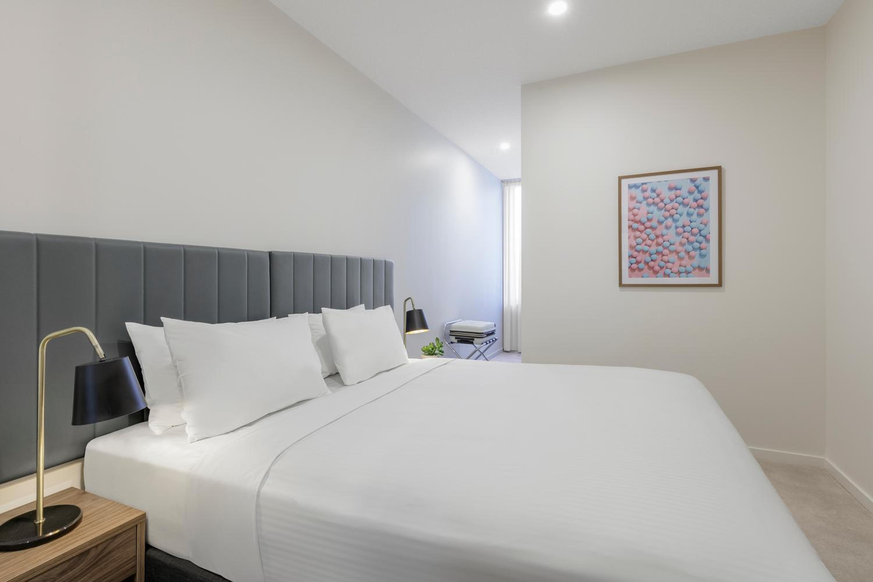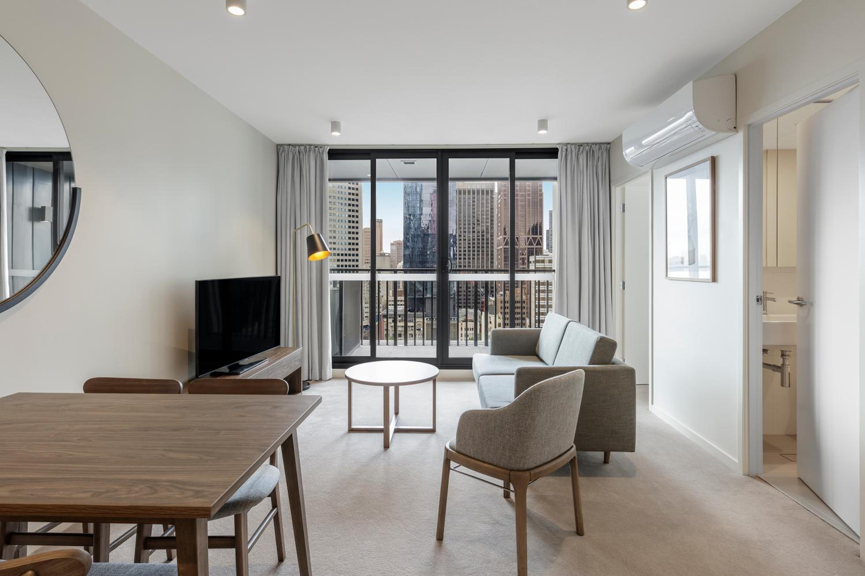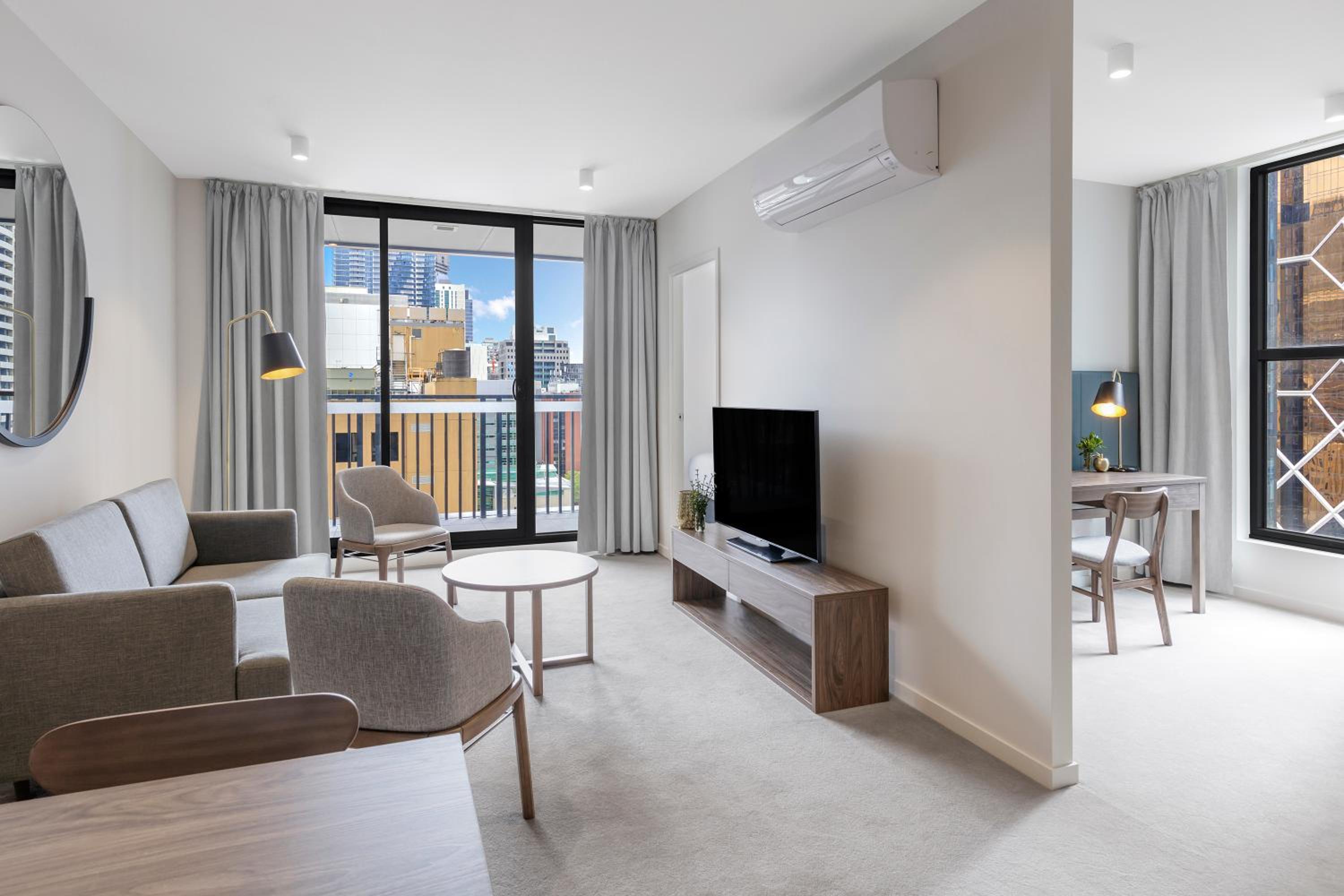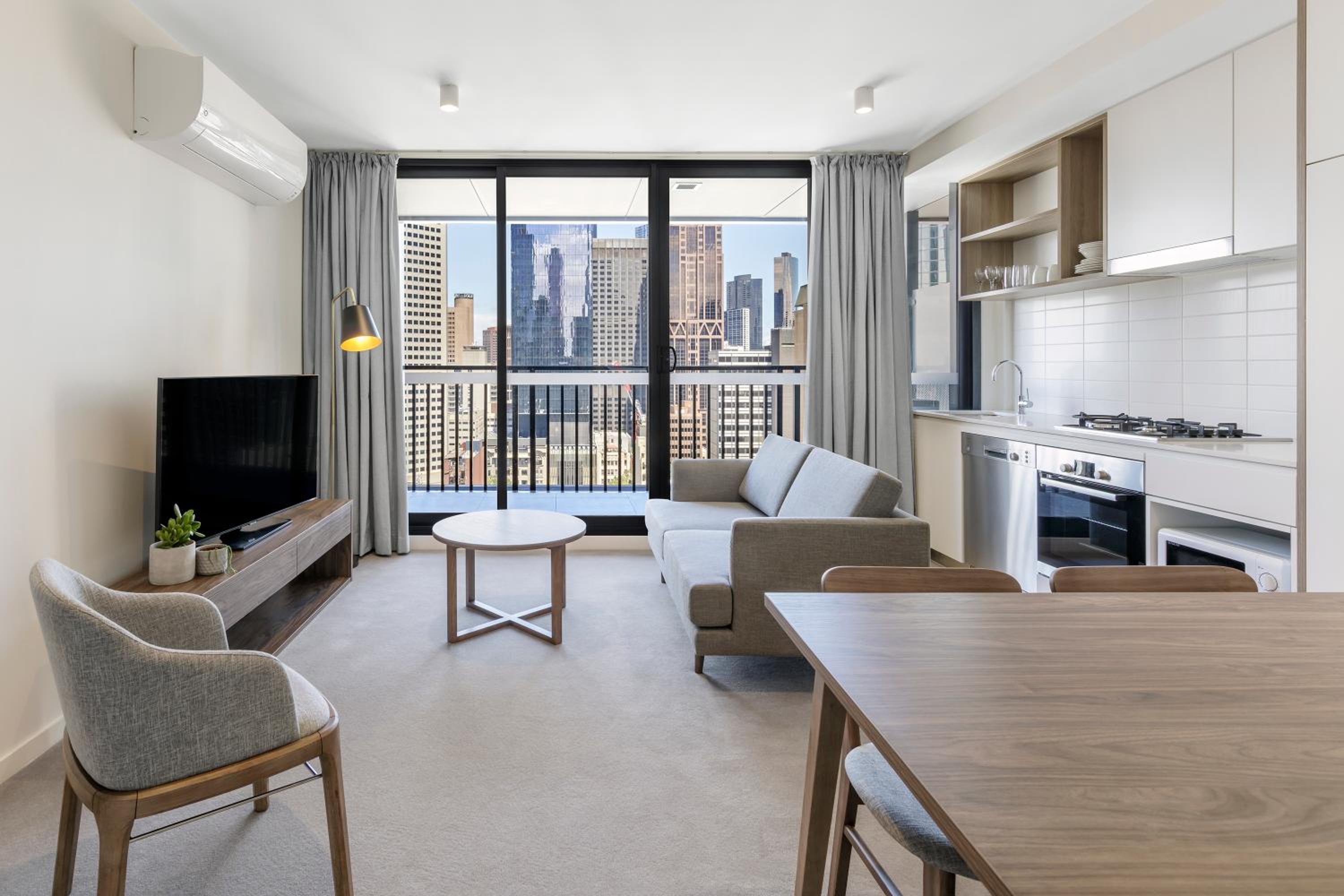 Great central location. Comfortable beds. Only drawback was that we were there in extreme heat for the Australian Open and the air conditioning didn’t quite reach completely into the bedrooms at night. Cleaning staff were run off their feet and failed to leave towels but these were easily accessed at reception. Reception staff were extremely helpful with orientating is and giving recommendations.