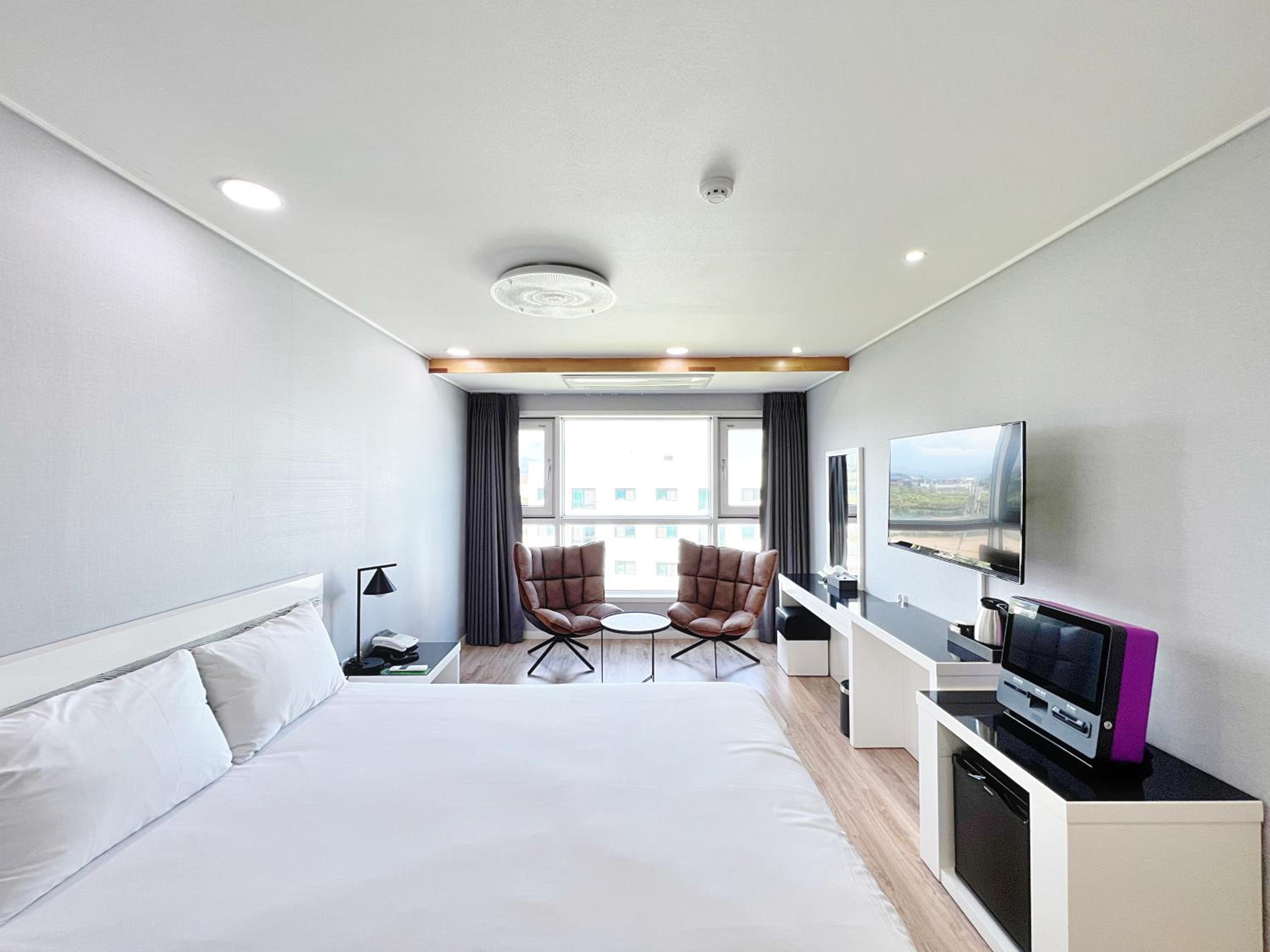 Each room at Hotel Sweet Castle Jeju Hamdeok is thoughtfully equipped with modern amenities like a kettle, flat-screen TV, and air conditioning. Guests can unwind in rooms featuring a private bathroom with a bidet and hairdryer, along with complimentary WiFi. Some rooms even offer breathtaking sea views.