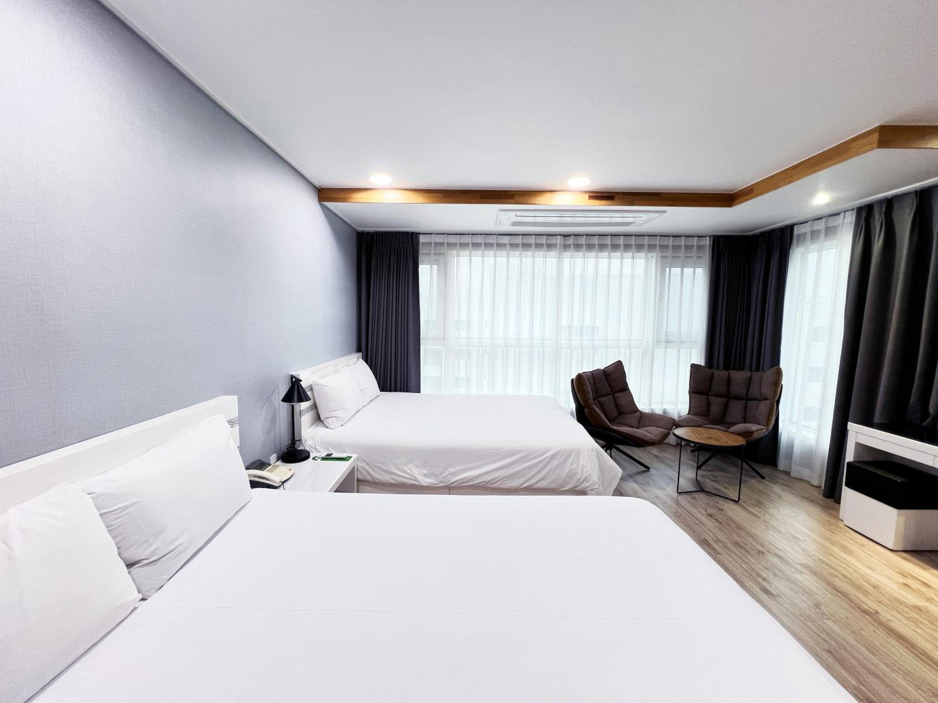 가족여행에 추천합니다. 방이 넓고 화장실도 쾌적합니다. 1층에 편의점도 있어서 좋았습니다.