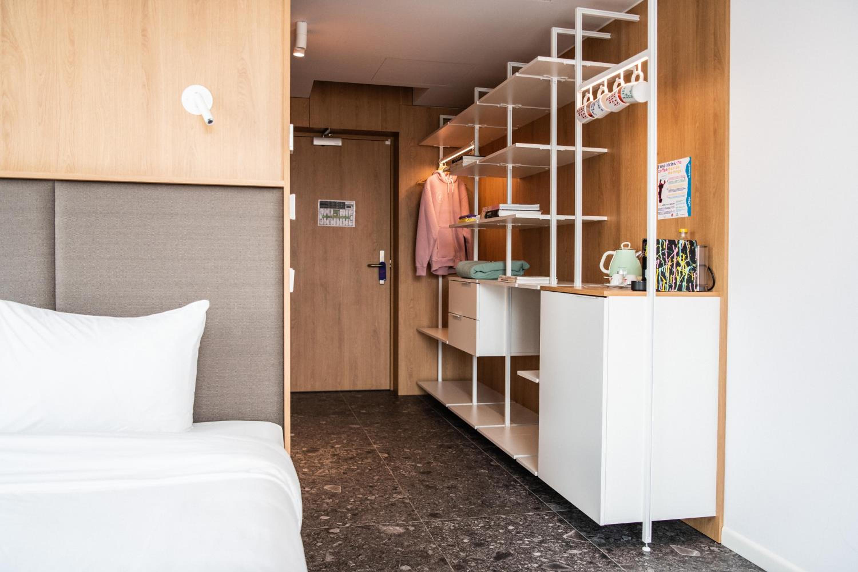 Clean and well-organized room. Kind staff. Comfortable bed. Big open wardrobe. The water dispensers available in the hotel are a really nice touch.