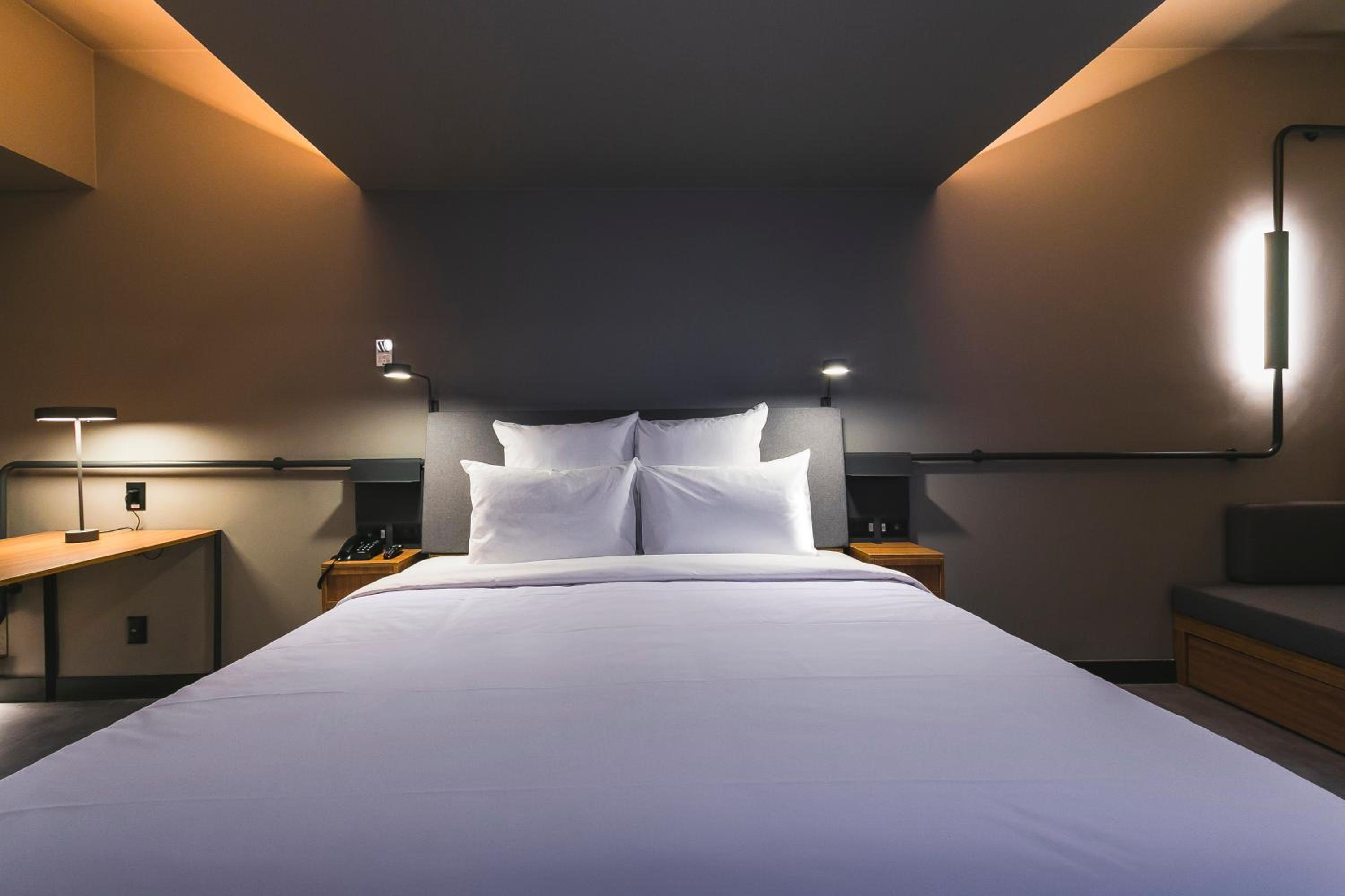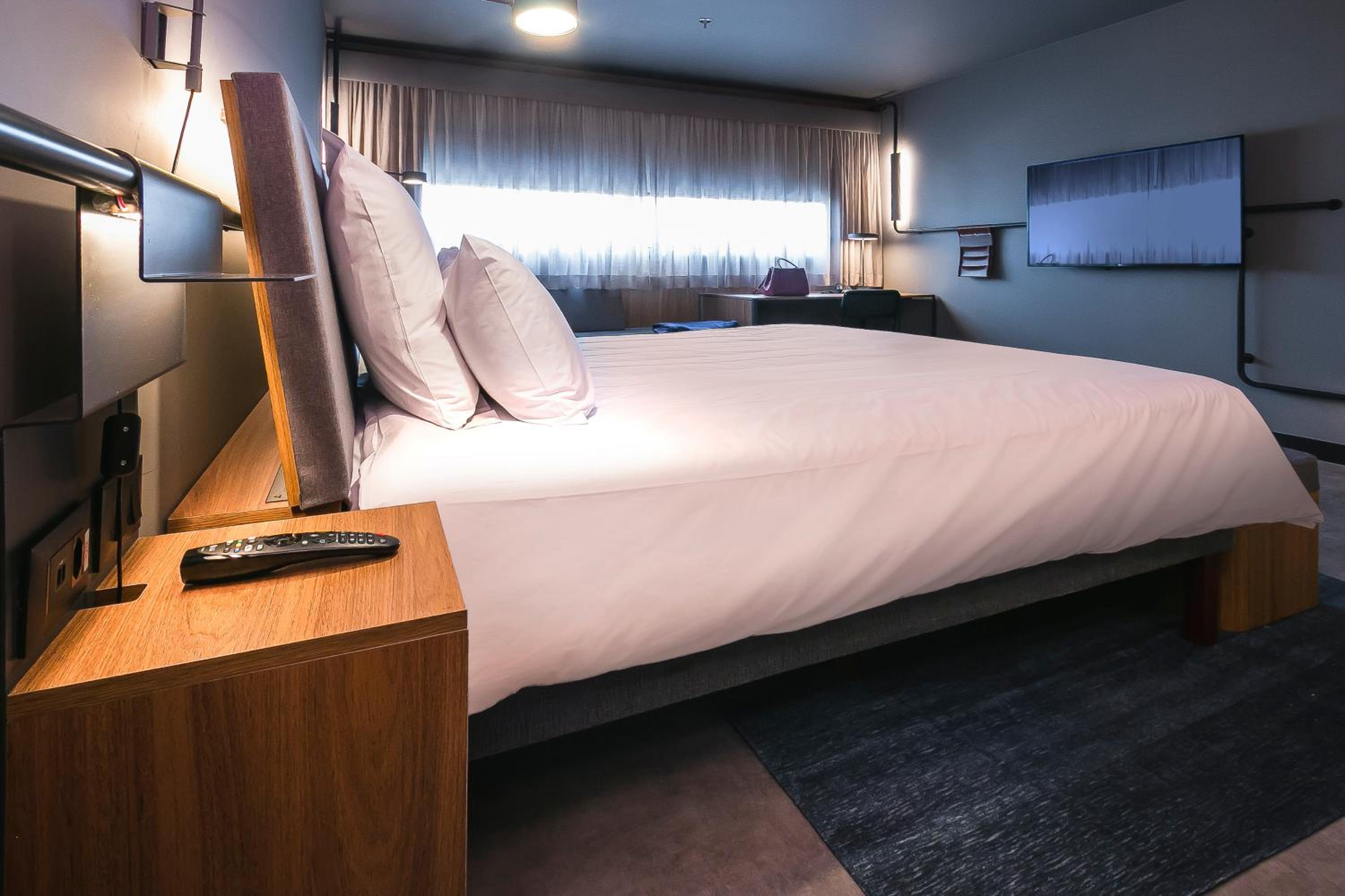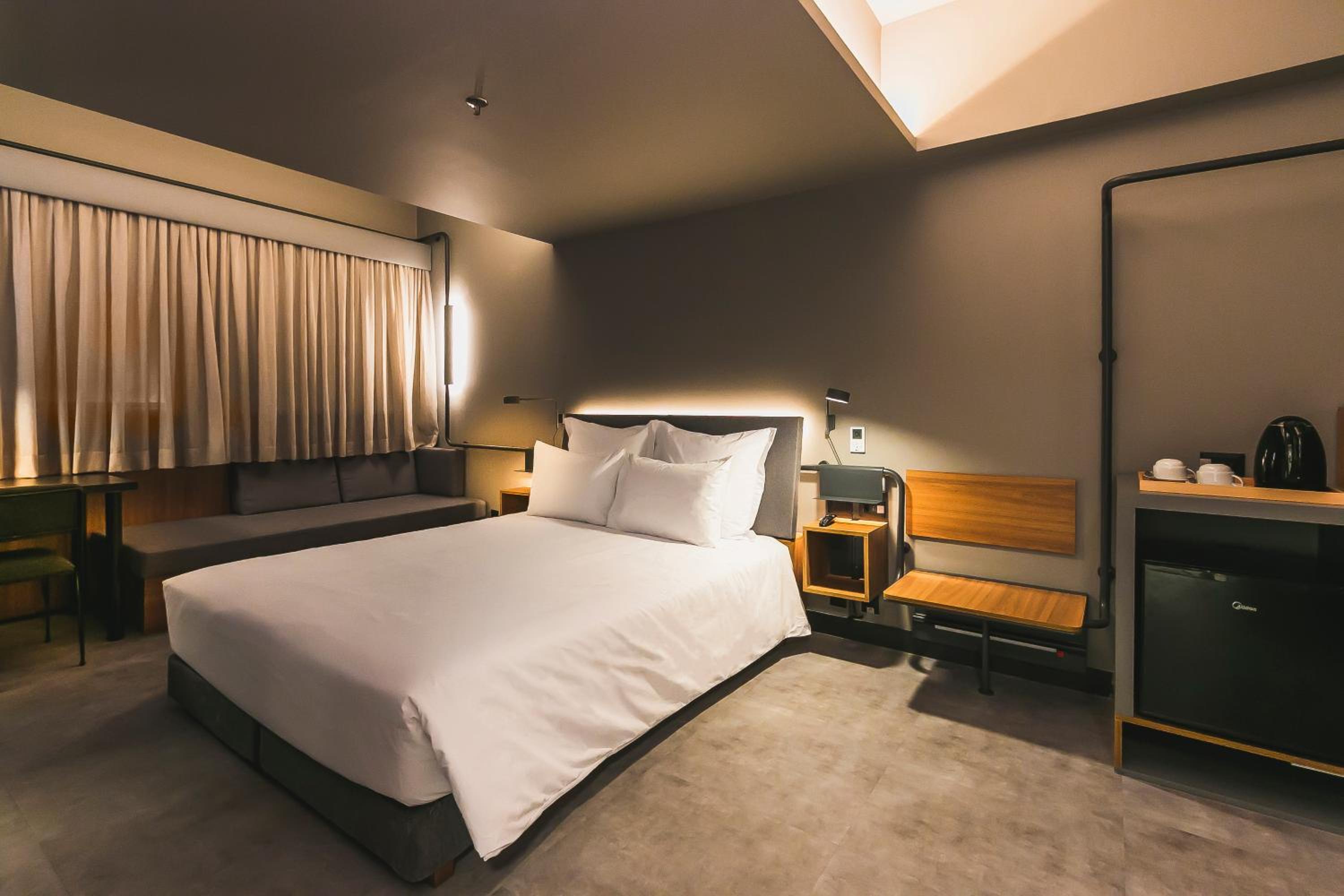 Climatização e iluminação aconchegante, cama confortável e vista ótima da cidade