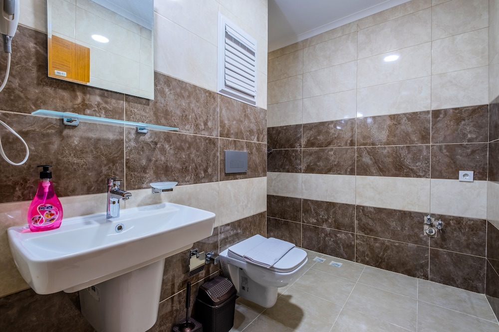 Doesn’t deserve the 4.5 stars average rating on Expedia - very disappointed as I relied on it. Although the property was new, it was not clean! We looked at 3 rooms and all of them had old leftover soap bars in the bathroom, the new ones were just placed on top of them. The kitchen counter and sink was not clean and had marks all over. These made us think that the rest of the apartment was not cleaned at all; this made us really uncomfortable. It was also very noisy all night as it was on the main road. There is no place to eat or buy food or snacks nearby.