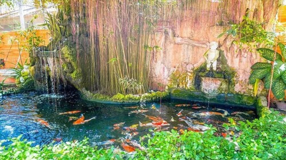 - Pretty and kept clean garden, nice koi pond!