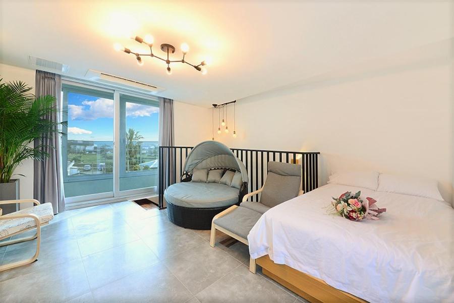 Indulge in breathtaking sea views from your accommodation at Jeju Rosemary Pension.