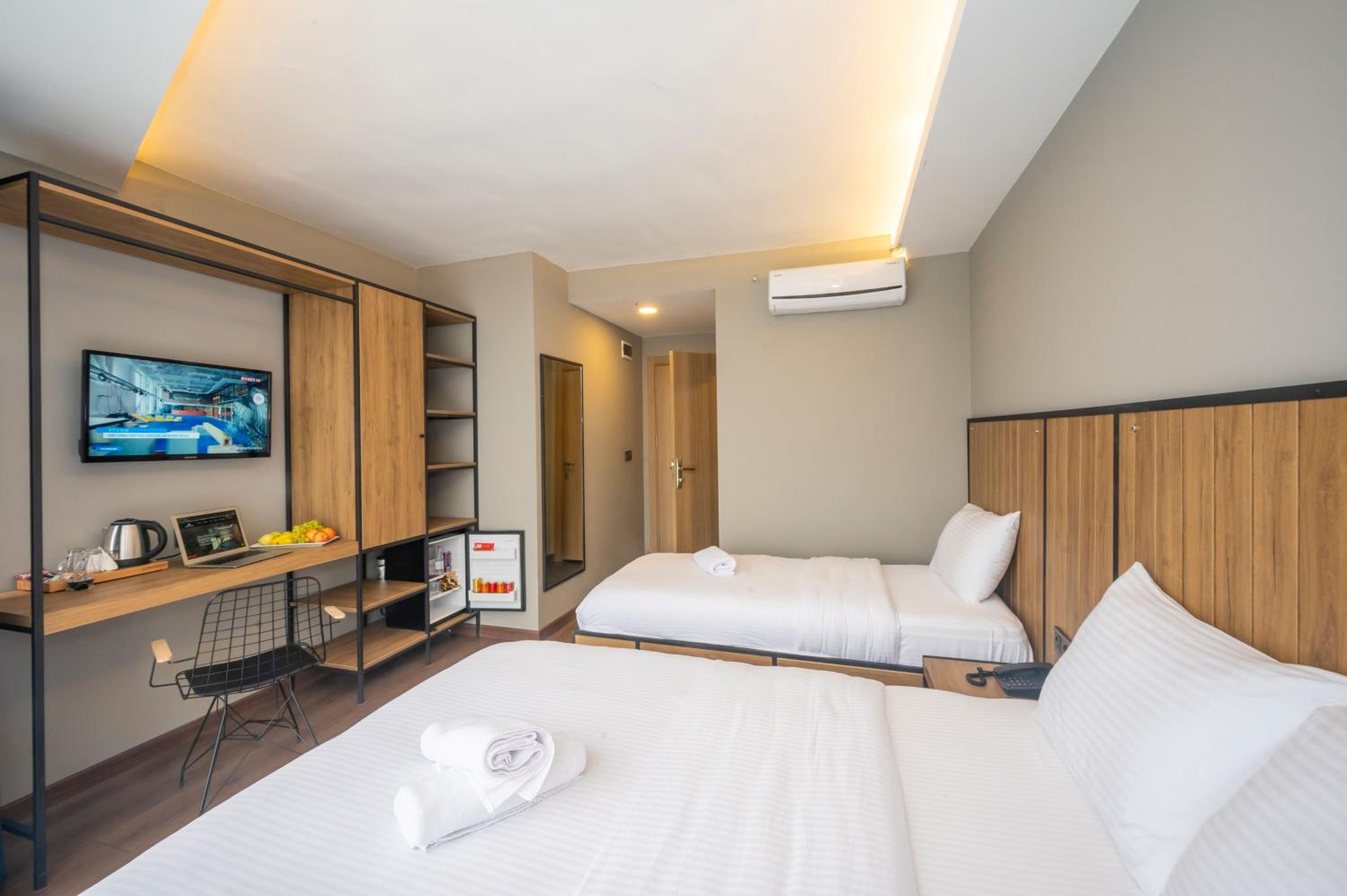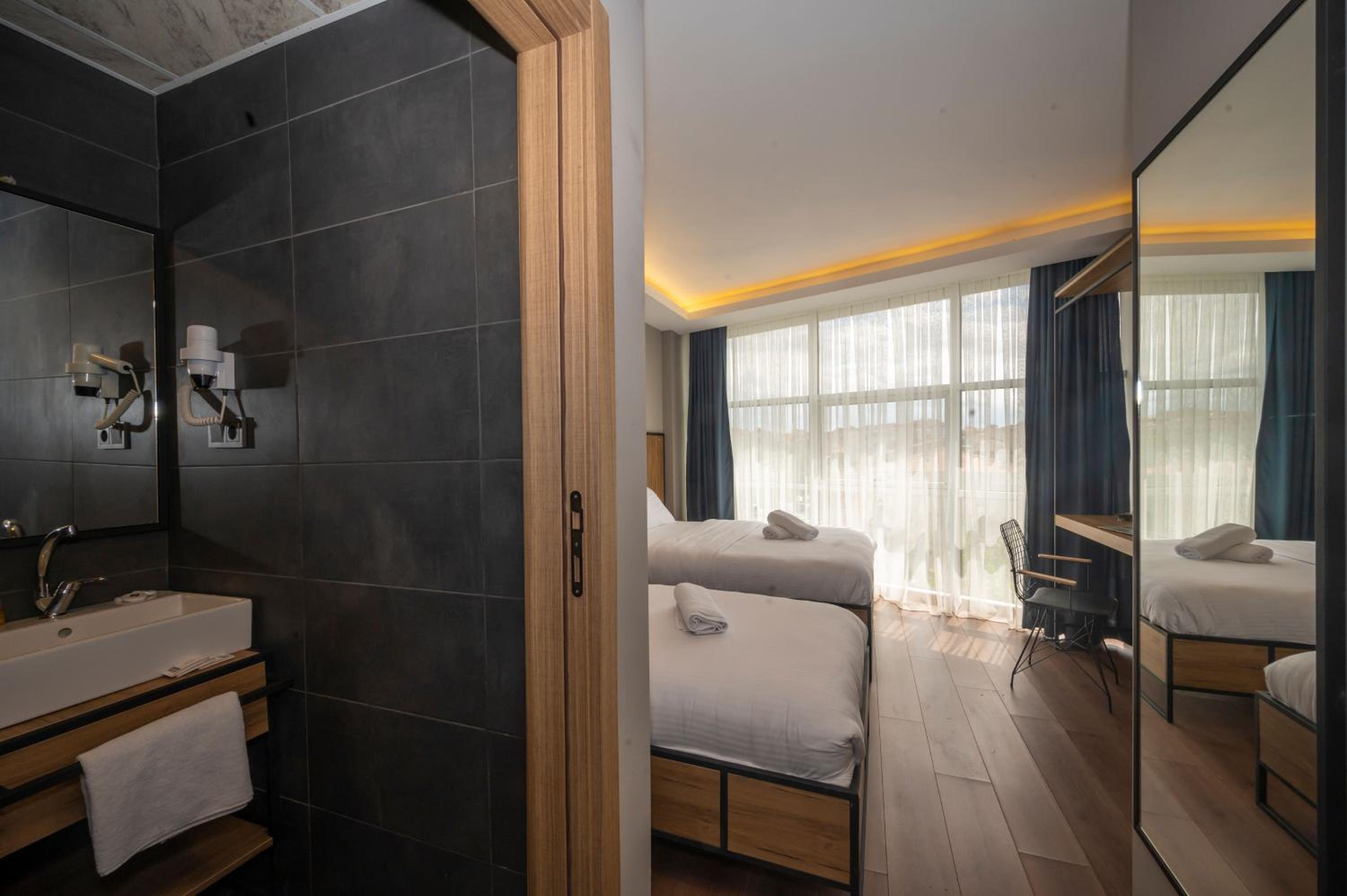 Çorlu Dem Hotel offers air-conditioned rooms with modern amenities like a coffee machine, minibar, and flat-screen TV. Guests can enjoy a comfortable stay with conveniences such as a safety deposit box and free WiFi.