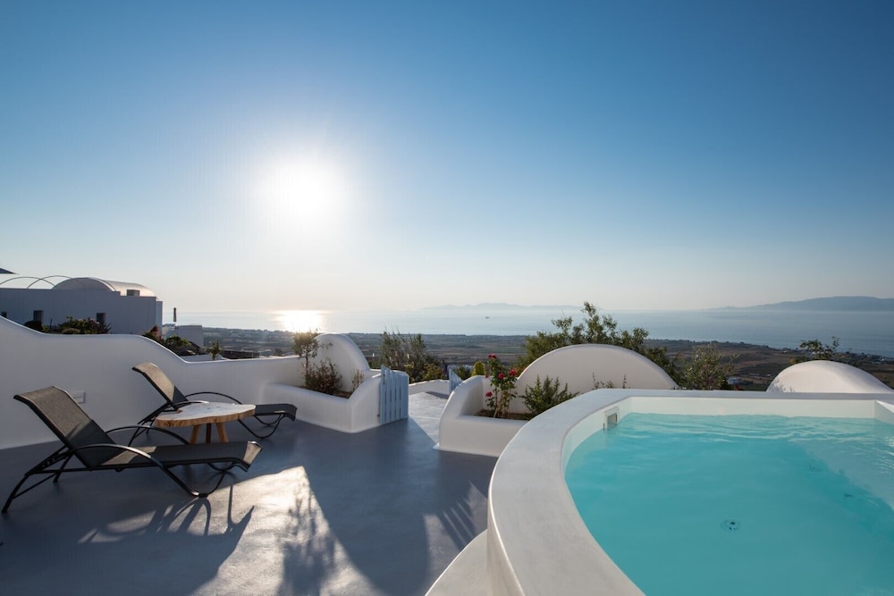 And finally - it is the most private stay you will find with an incredible view of the sunset every night. If you stay in Oia or Fira you will have people walking by and taking pictures all around your hot tub because all of the hotels and airbnbs are on top of each other.