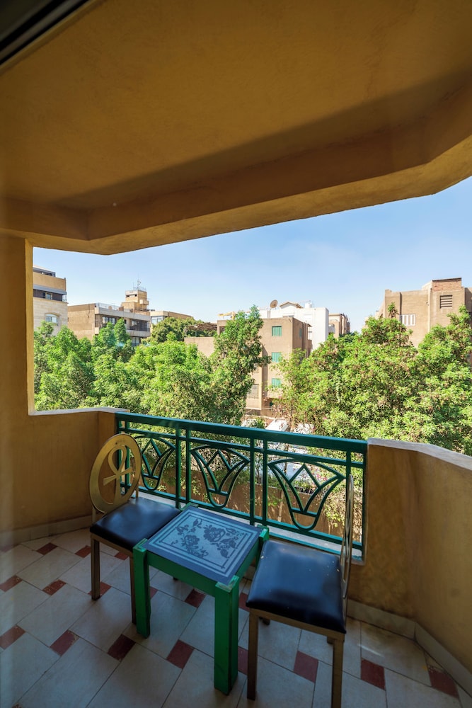 The only positive was the staff. They were very helpful, kind and friendly. However it does not warrant a 4 star rating Sheet did not even cover top of mattress. Mattress full of hard springs and uncomfortable. Shower kept turning hot and cold. Breakfast was not great. Only Nescafé. WiFi was weak. Only thing to recommend is that it is close to the pyramids and other than the over priced Marriott it looked like the best of the hotels around. Very tacky with overdone Egyptian motifs. Our room faces the street and street noises were very loud. Our friend’s room faced the inner courtyard ( with pyramid view) and had to deal with music until late as there were wedding parties below every night.