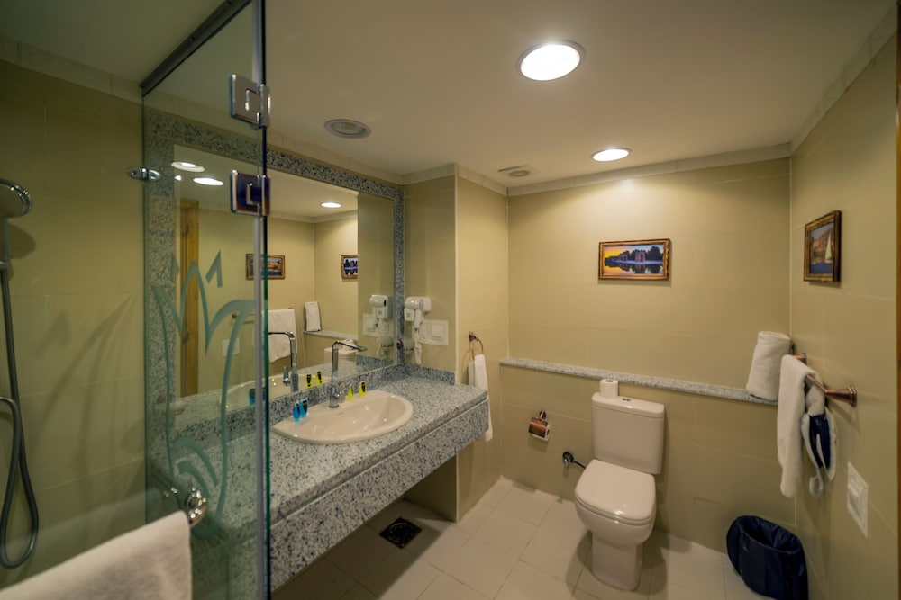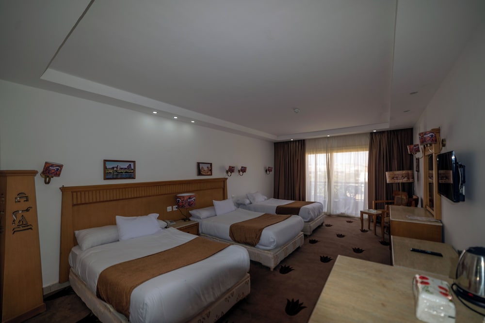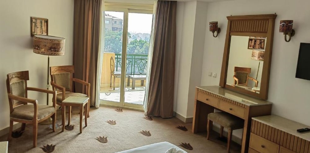 It has a great view, amenities were average. Some added decor seemed as an afterthought. You need your key card to run ac, so every time you get back its to a warm-ish room. Ac made noise throughout the night. The hotel hosted several weddings while we were there and party lasted from 12 to 3am. People were friendly, hotel manager did his best to accommodate us. Free breakfast was good but basic. If you want pyramids view, this would be a hotel to consider.