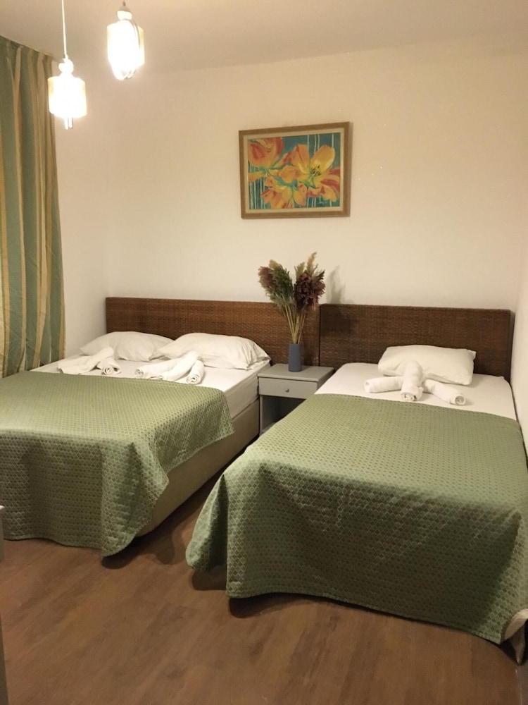 Parasına göre idare eder bina eski ve bakımsız oda temizlik kötü çalışan bir arkadaş var o da herşeye yetişemiyor denize yakınlığı iyi taşlık bir deniz var deniz ayakkabısız girmeyin Beldibi bölgesi kemer civarında en gelişmemiş bir yer ulusal market yok ekmek simit fırını yok en yakın 10 km uzaklıktaki göynükte var aracınız yoksa sıkıntı bir daha gelir misin diye sorarsanız asla gelmem
