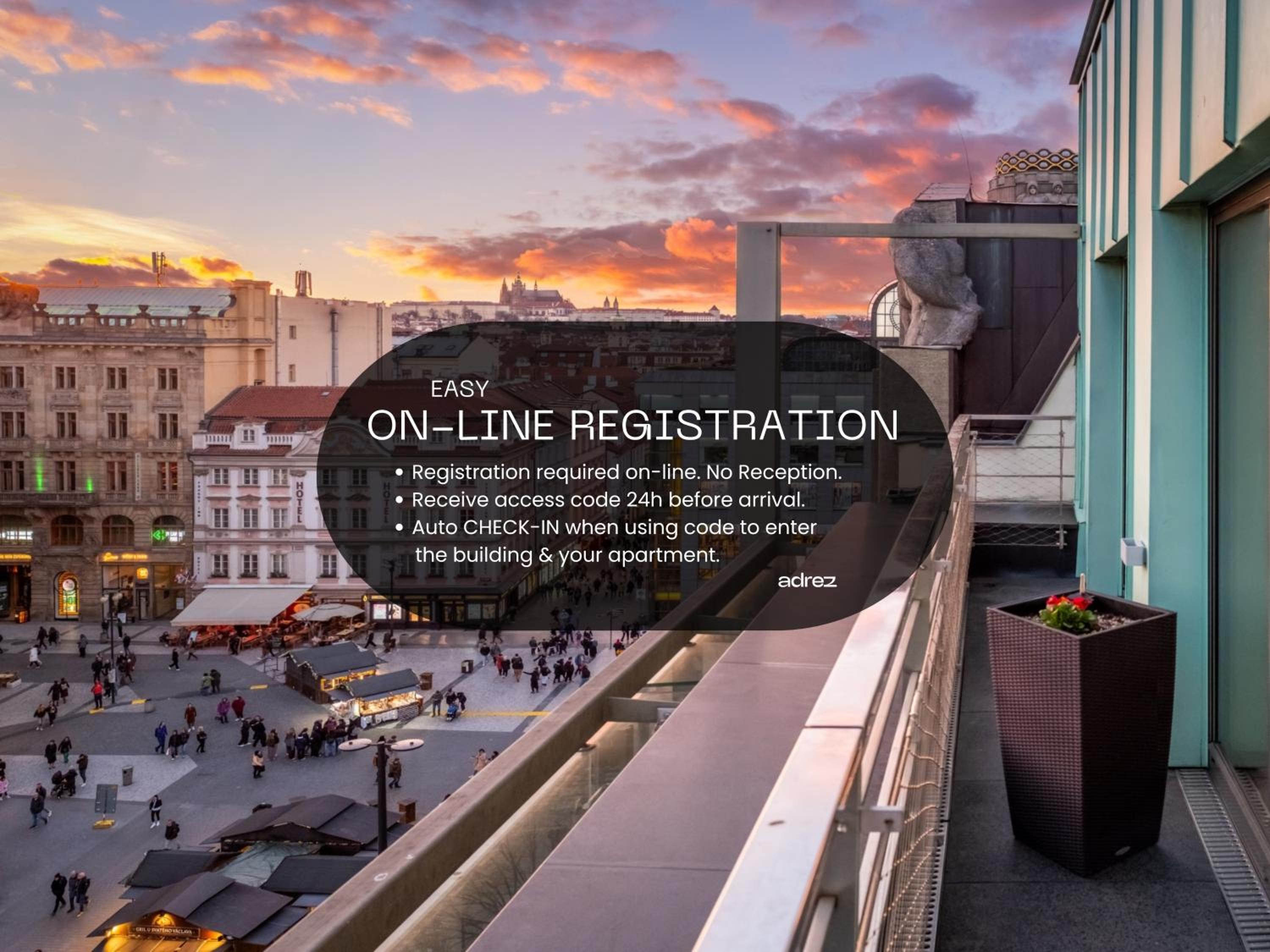 These apartments are fully online with no Reception. You will receive a link to fill in personal details for all in your reservation then receive a code for the apartment after payment. The alternative is to visit our central Reception at the Hotel "Palác U Kočků" (Palace At the Cats).