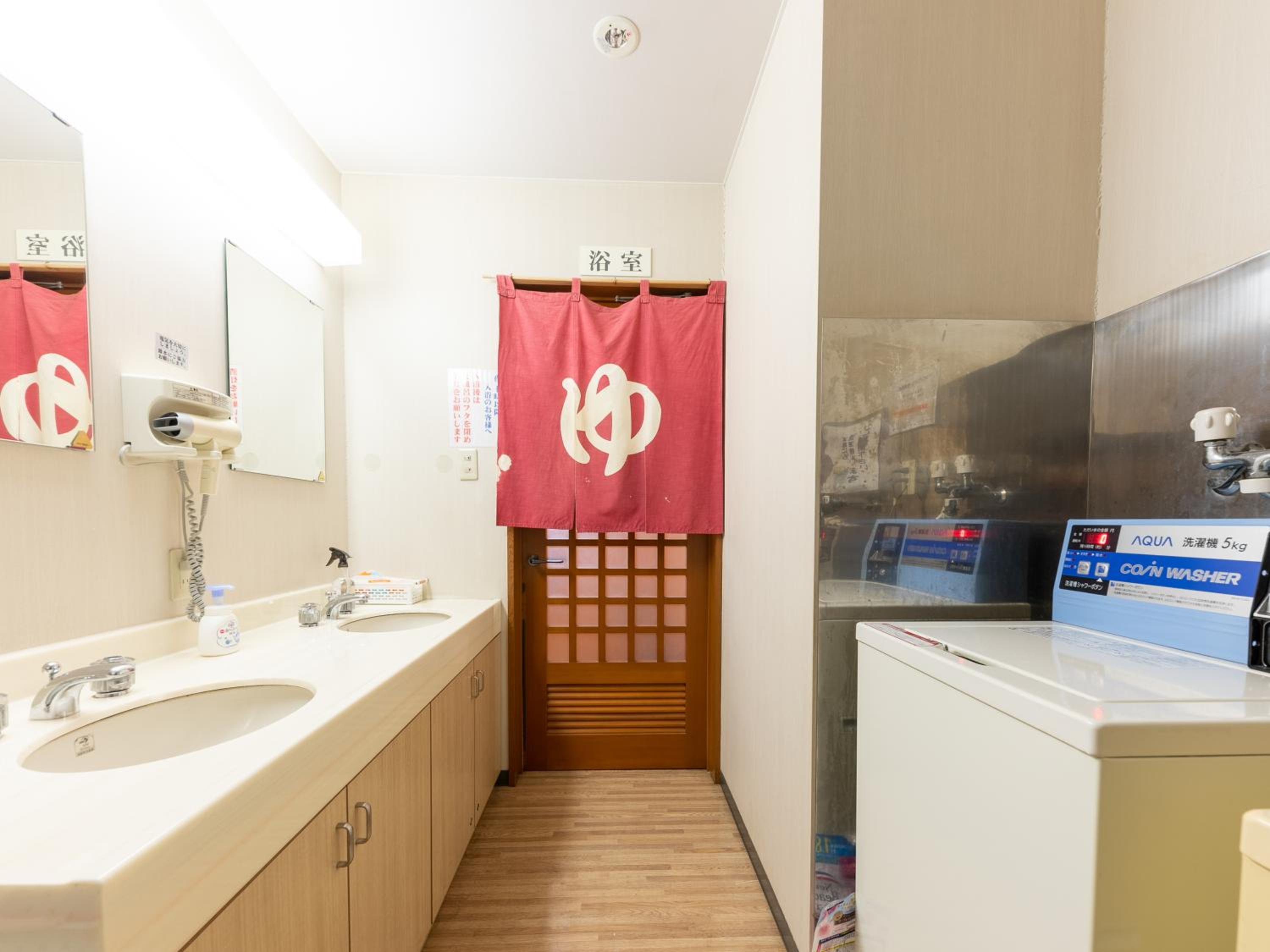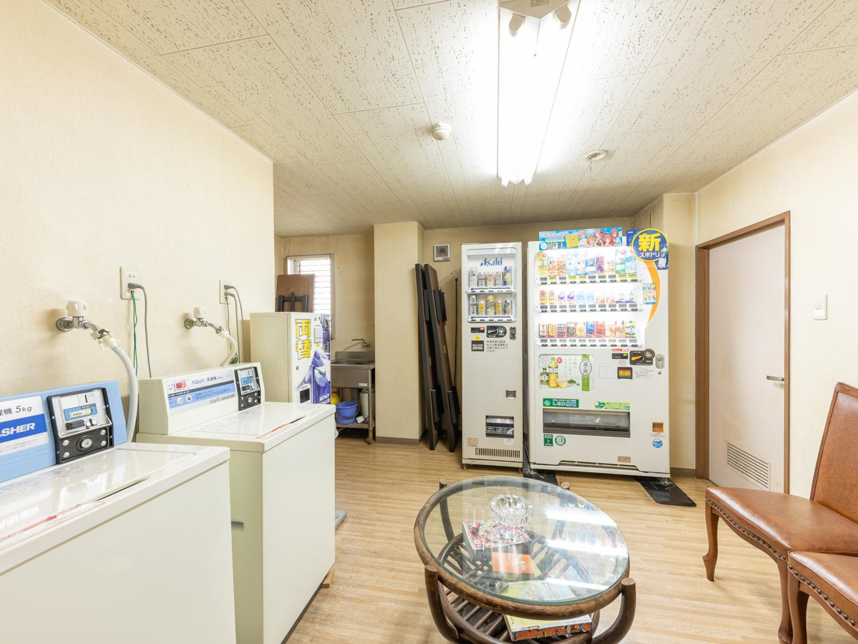 一回には洗濯機、乾燥機、お酒の自販機と普通の自販機がある。