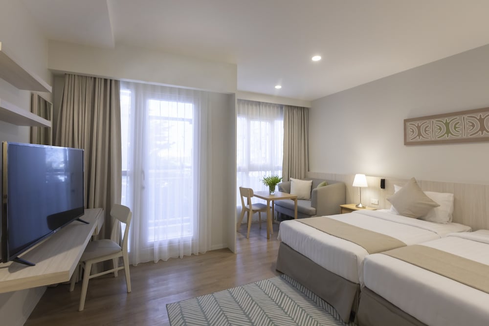 Indulge in comfort at this stylish apartment near the airport, offering a kitchenette, private balcony, and modern entertainment options. Stay connected with complimentary Wi-Fi and make use of the convenient facilities provided. Book now for a delightful stay at Ban Chang's finest aparthotel.