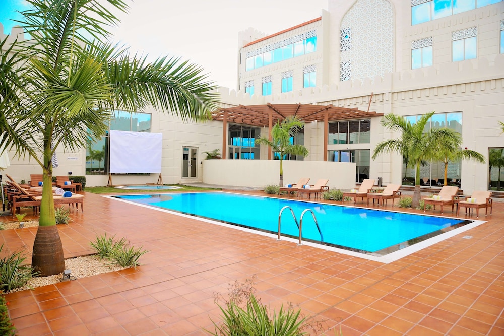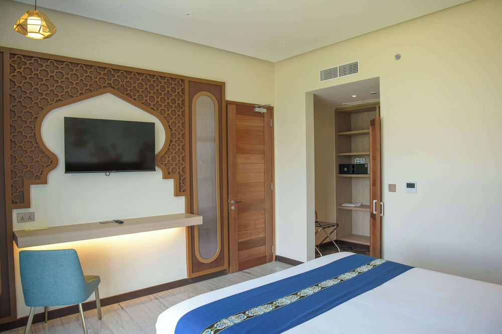 Savor delectable meals at Dhow Restaurant, unwind at the cafe, and make use of services like room service and complimentary reception.