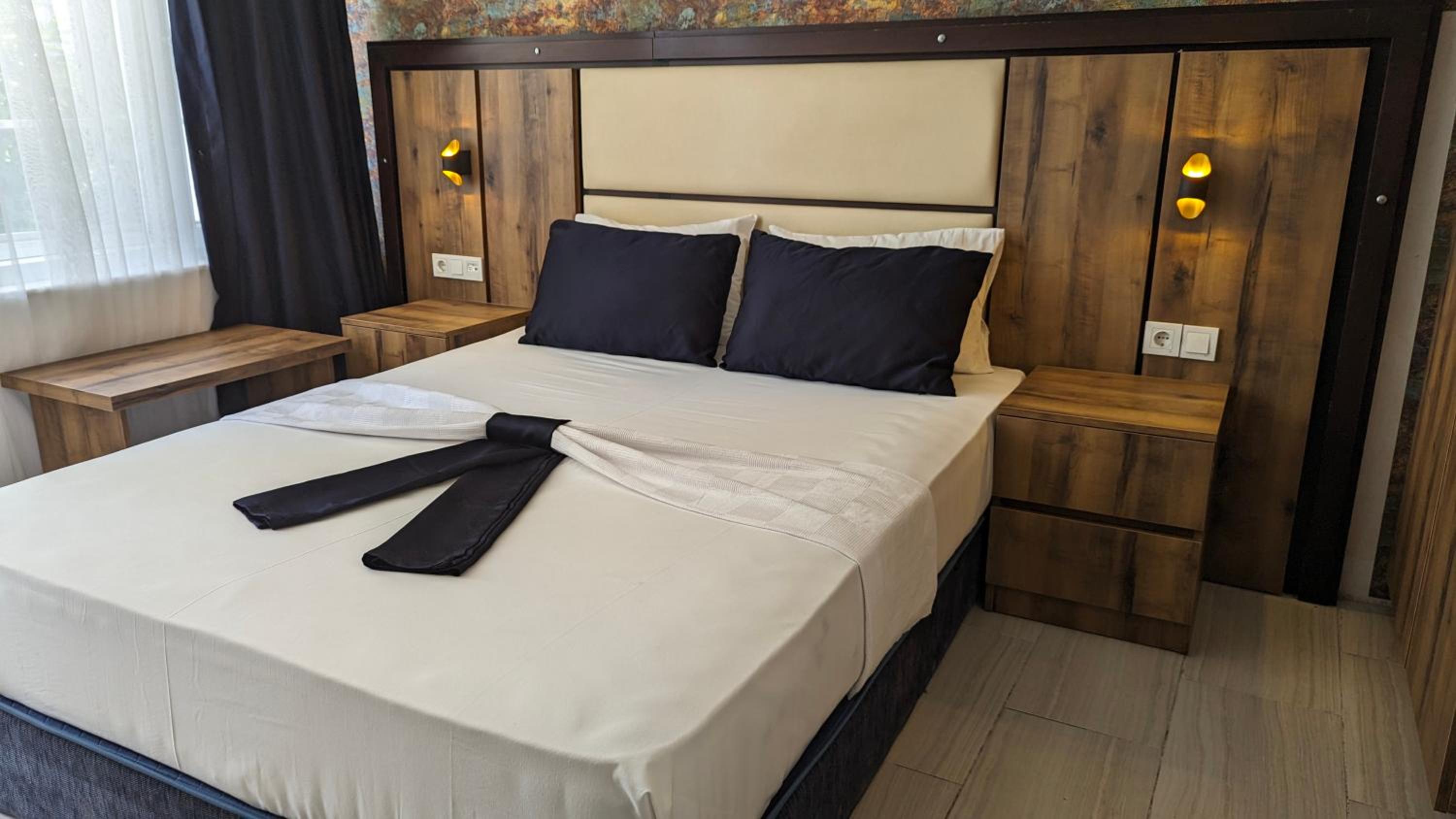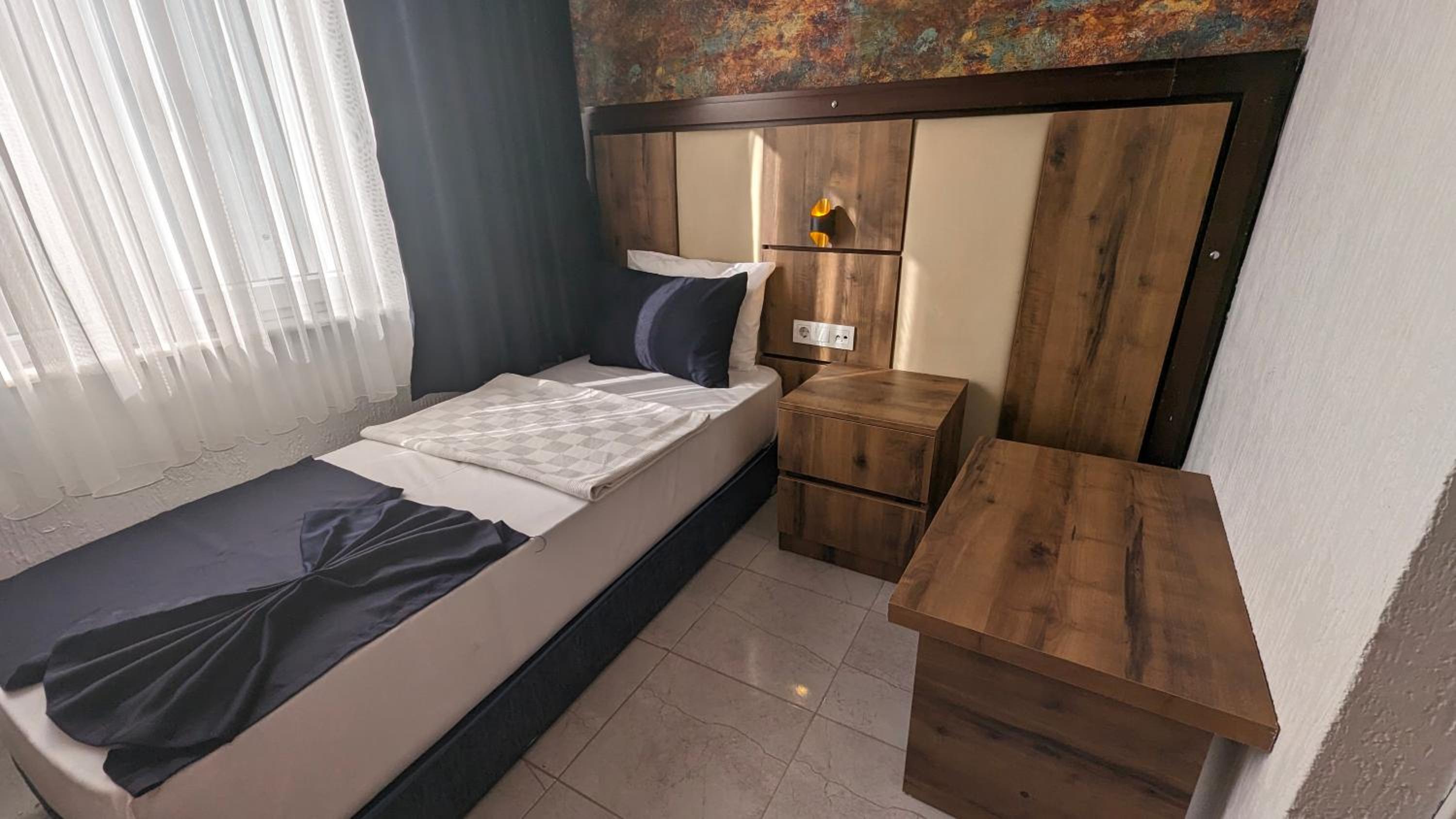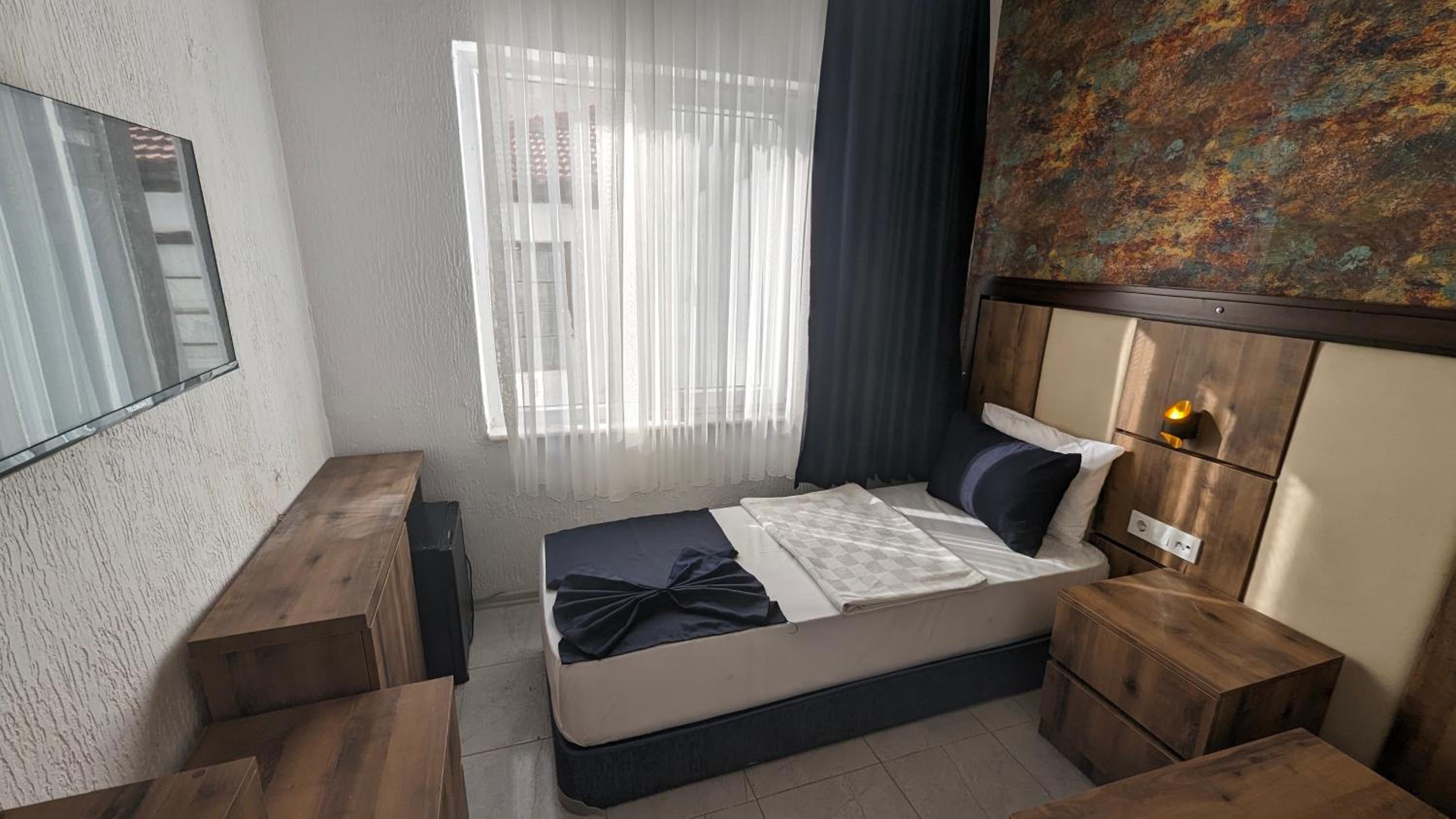 Gayet standart kalınabilir bi otel, fakat aşırı tozluydu tv arkasının tozunu anlarımda yatakta hareket ettikçe özellikle pikeyi üstümüze örterken gözle görülür aşırı toz dağılıyordu etrafa…