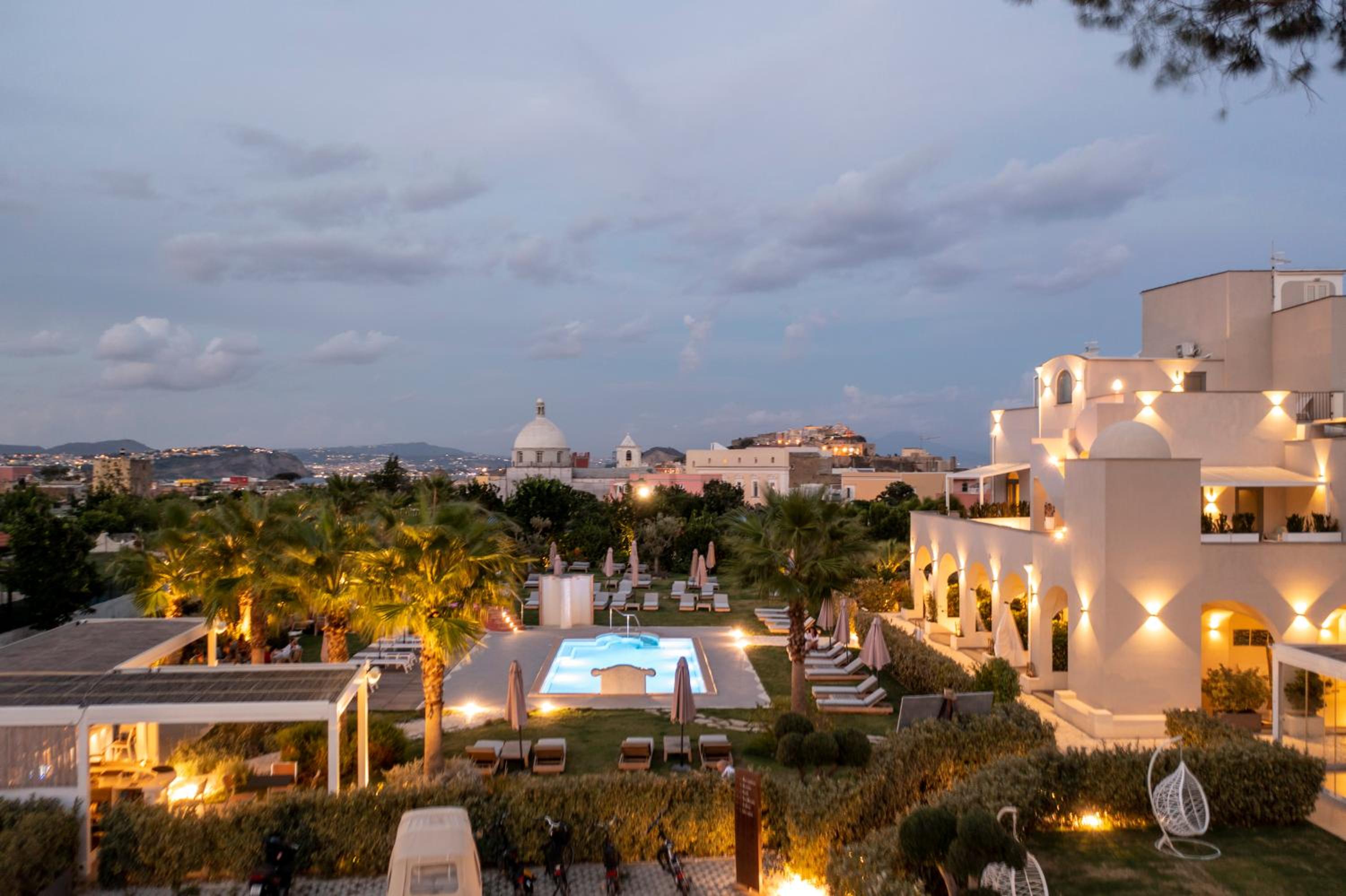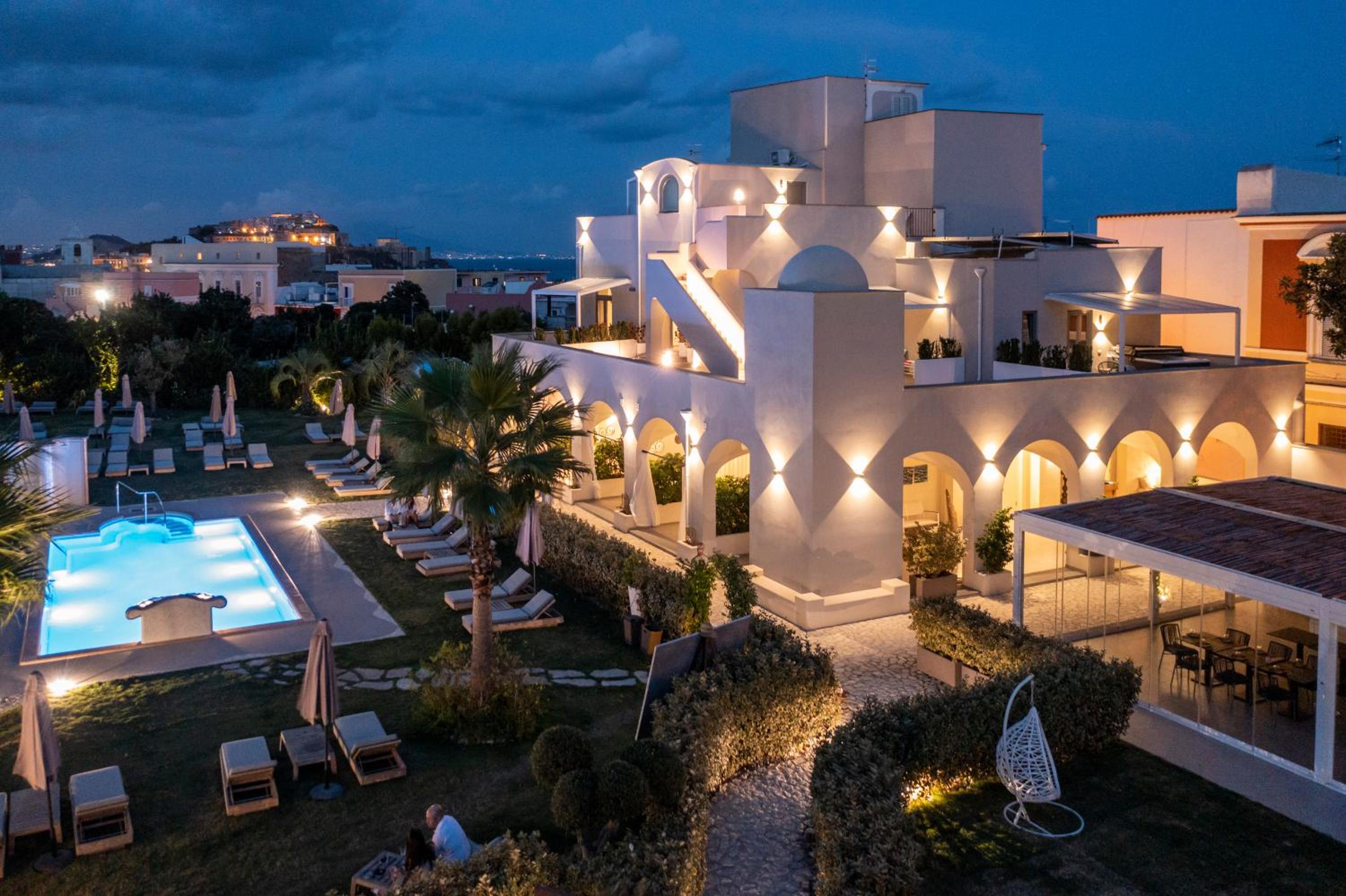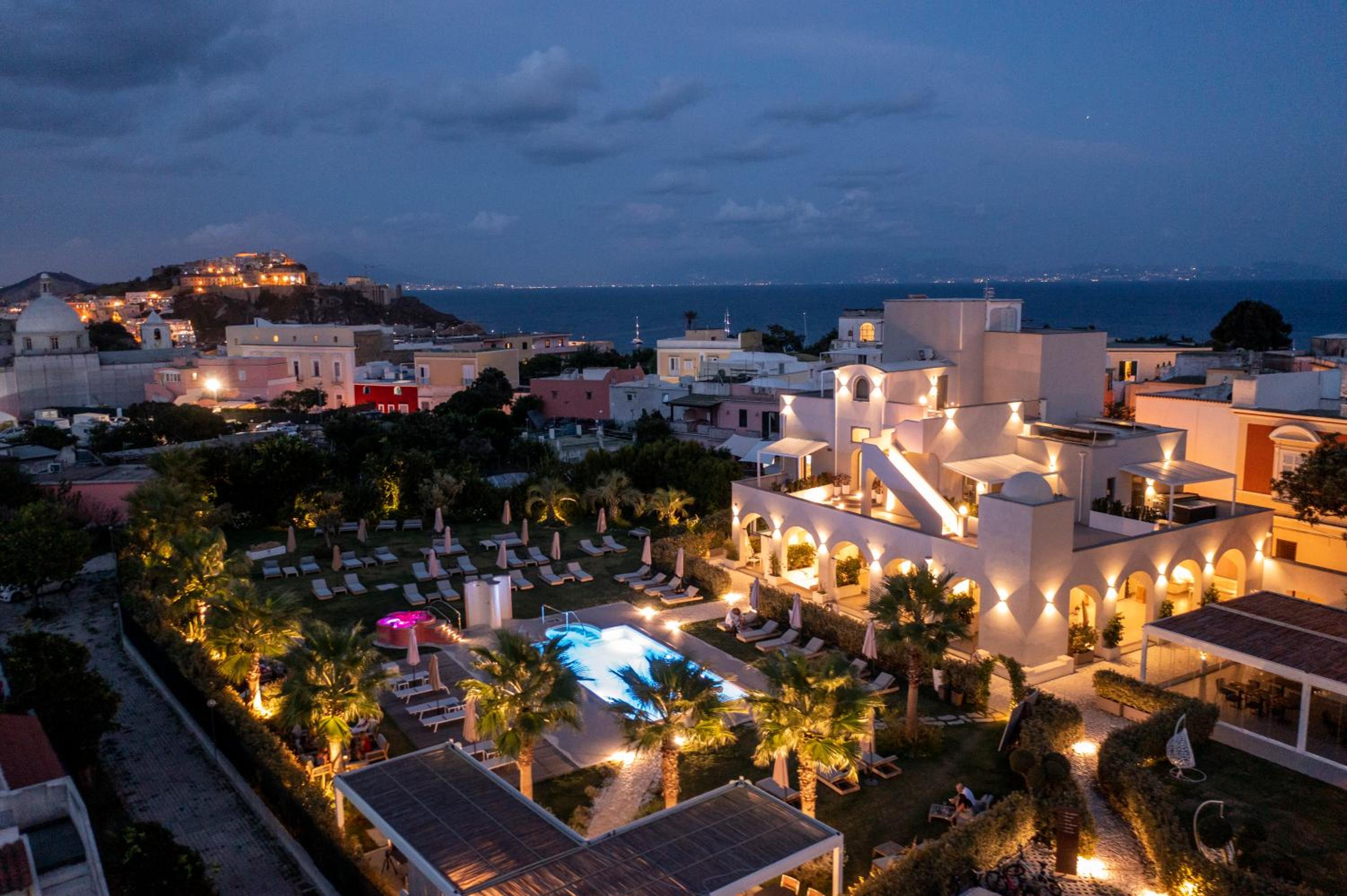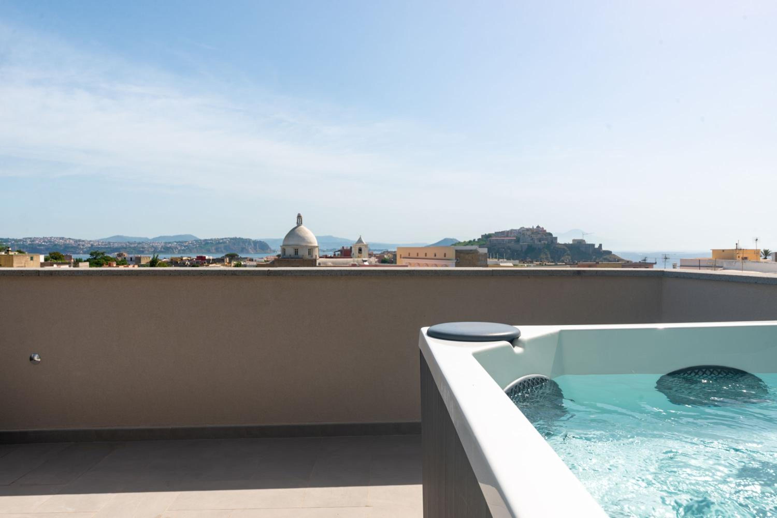 Beim Insula Boutique Hotel handelt es sich um ein nettes Hotel der oberen Mittelklasse, einige der Zimmer wie mein Zimmer Nr. 10 mit einer Dachterrasse und einem Whirlpool mit Blick auf die Terra Murata, das Meer und die Kũste Neapels mit dem Vesuv sind sehr schön! Pool und Garten sind ansprechend!