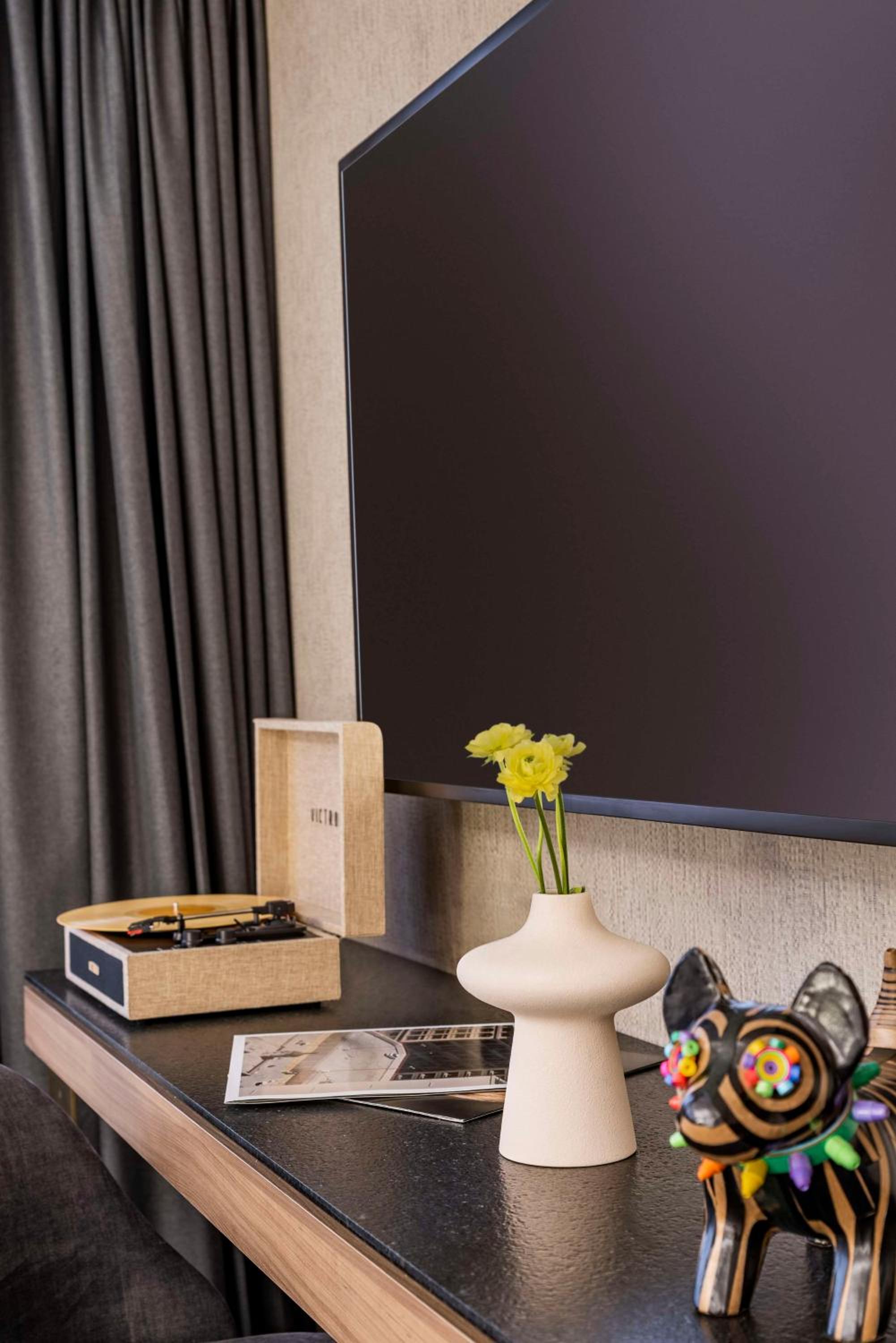 Nice location - lovely leafy neighborhood. Wonderful attention to detail - snacks in the room (no charge), steamer for clothes, record players and records in the room. Amazing breakfast. Best buffet ever.
