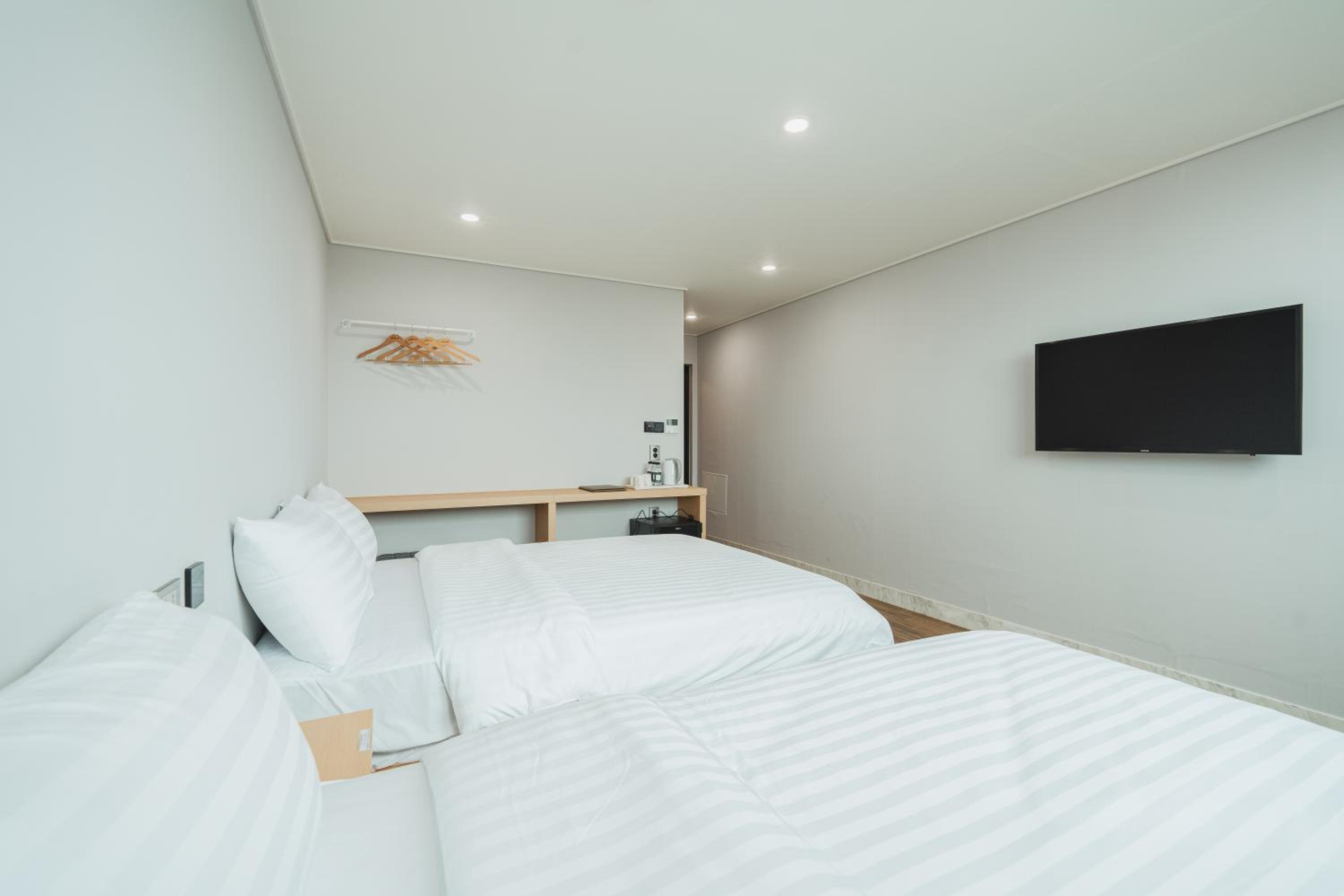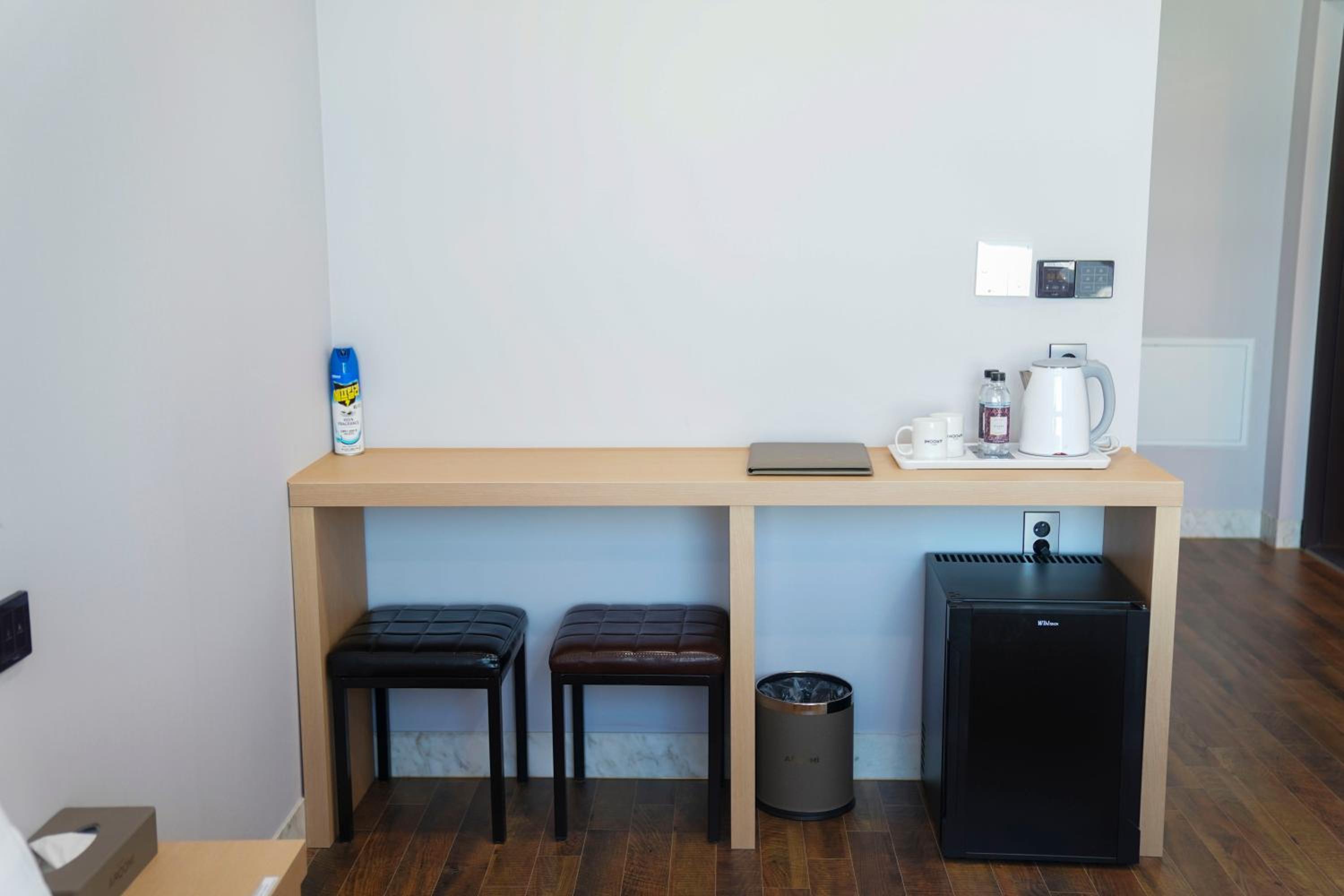 Convenient Amenities: Aroomi Hotel Hyupjae offers air-conditioned rooms with free WiFi, flat-screen TVs, and city views. Guests can enjoy the convenience of a kettle and fridge in each room.