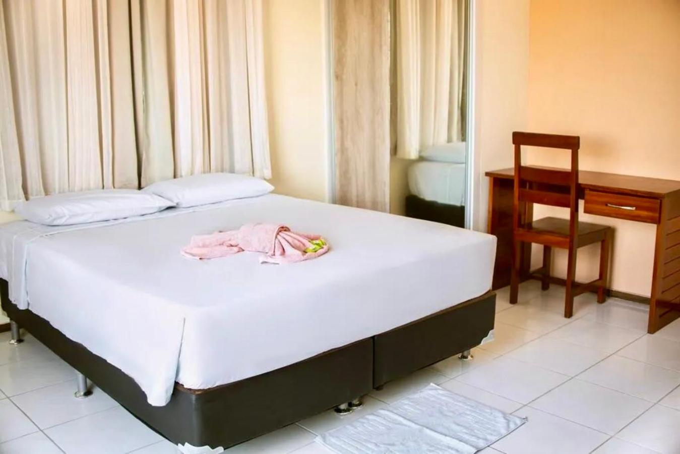 Quarto limpo, Lençóis limpos, ar-condicionado ótimo, tem televisão smart e frigobar para armazenar algo que precise, achei que o preço foi justo, contém área de lazer com piscina linda para tirar fotos, perto de tudo!
