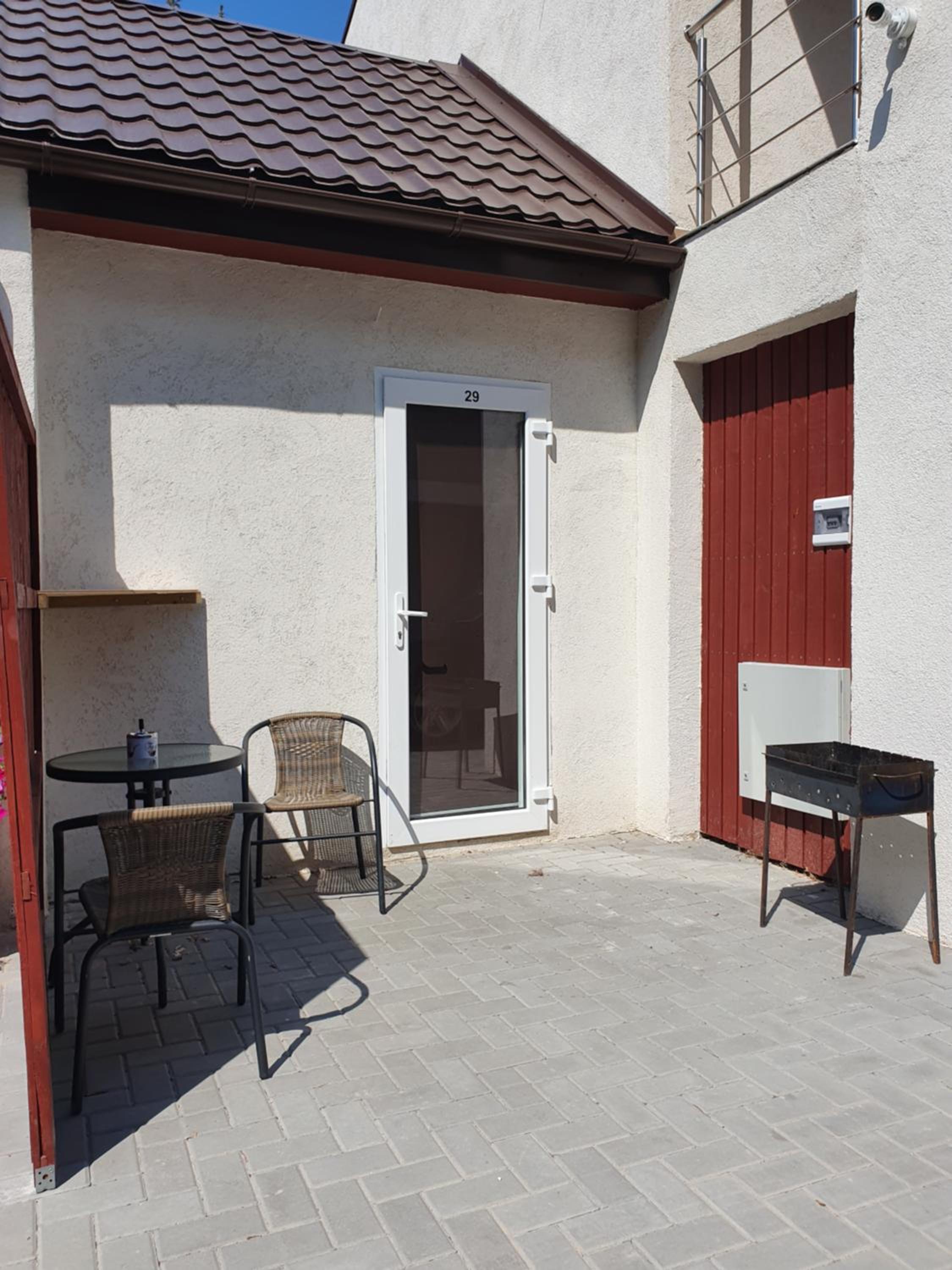 Pritrūko stogelio virš durų ir lauko baldų