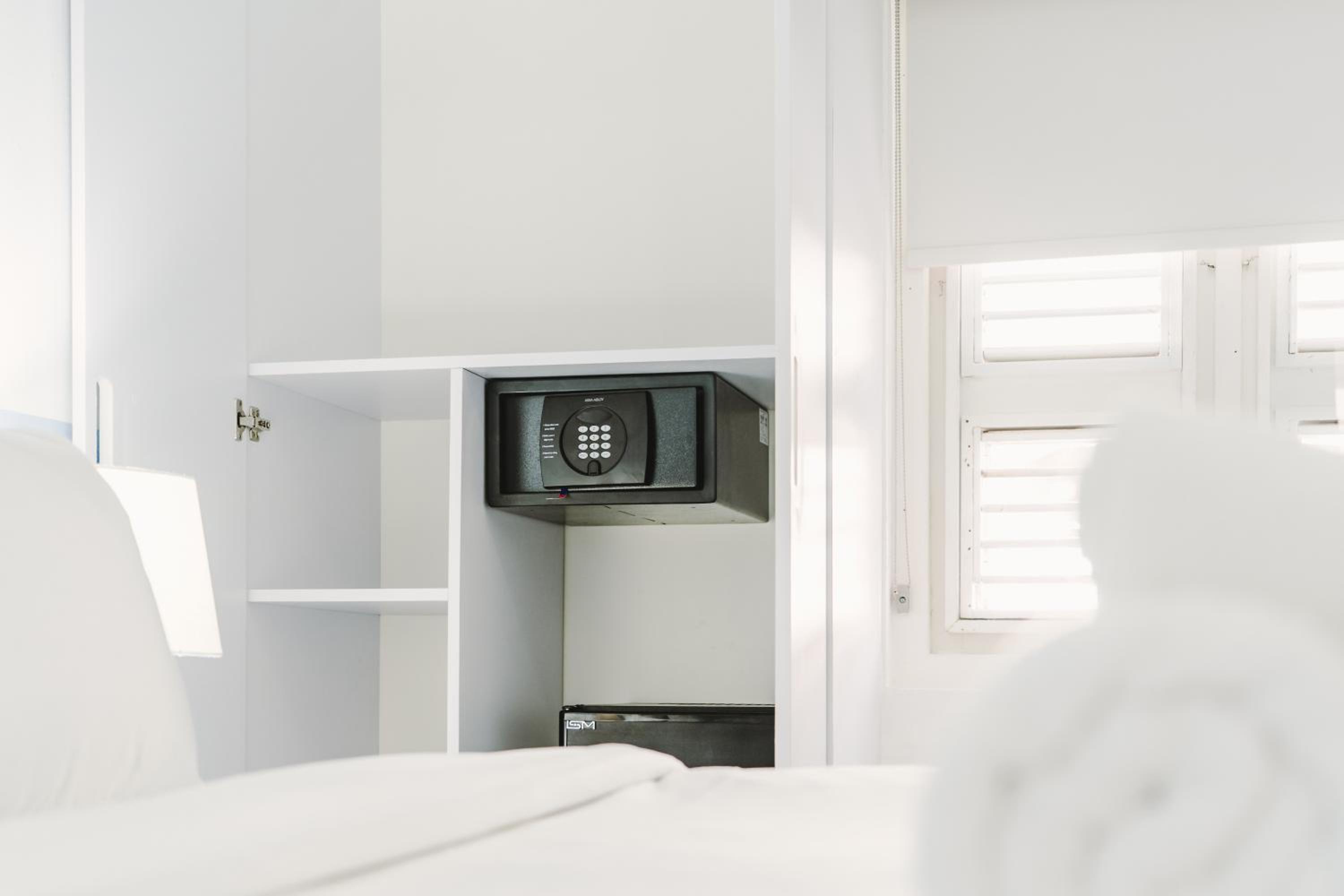 Er was een kluis op mijn kamer. Deze was helaas gesloten. Verscheidene malen gevraagd om door het hotel te openen wat toegezegd wordt maar gebeurde niet. Heb het maar laten zitten dus kon ik de kluis niet gebruiken