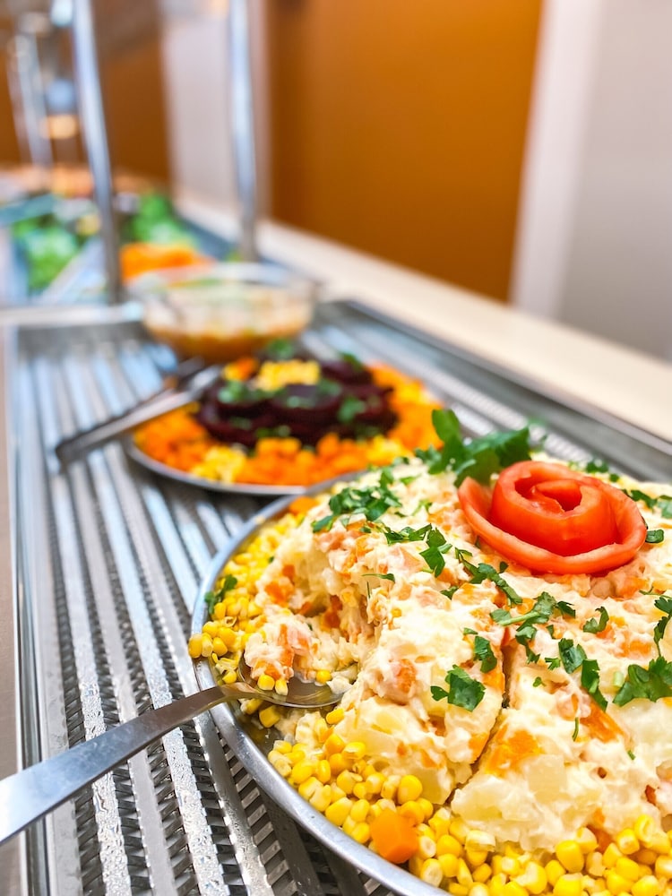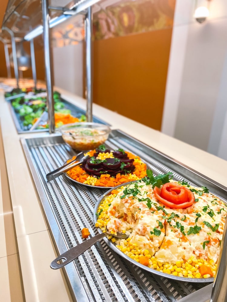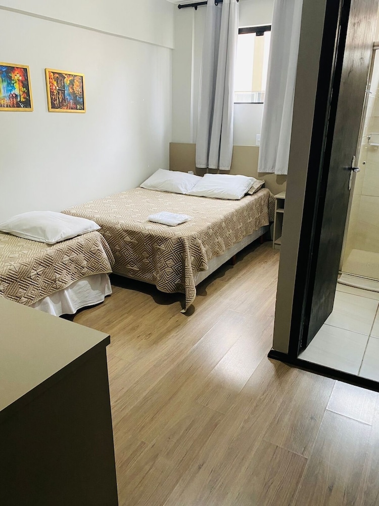 Custo-benefício ok, porém - no momento da oferta e reserva via sistema, nos foi mostrado outro local e quarto. Na chegada é que fomos entender que a recepção ficava numa torre (bem mais bonita e moderna), e o quarto sendo ofertado era um promocional, beeeem mais simples e pior, noutra torre sem elevador e o nosso quarto ficava no 4° andar, ou seja, vários lances de escada. Tivemos que sair, atravessar a rua para chegar na outra torre, cujas instalações são antigas. Enfim, fora isso, como precisávamos só dormir uma noite, o hotel nos atendeu. Café da manhã muito bom.