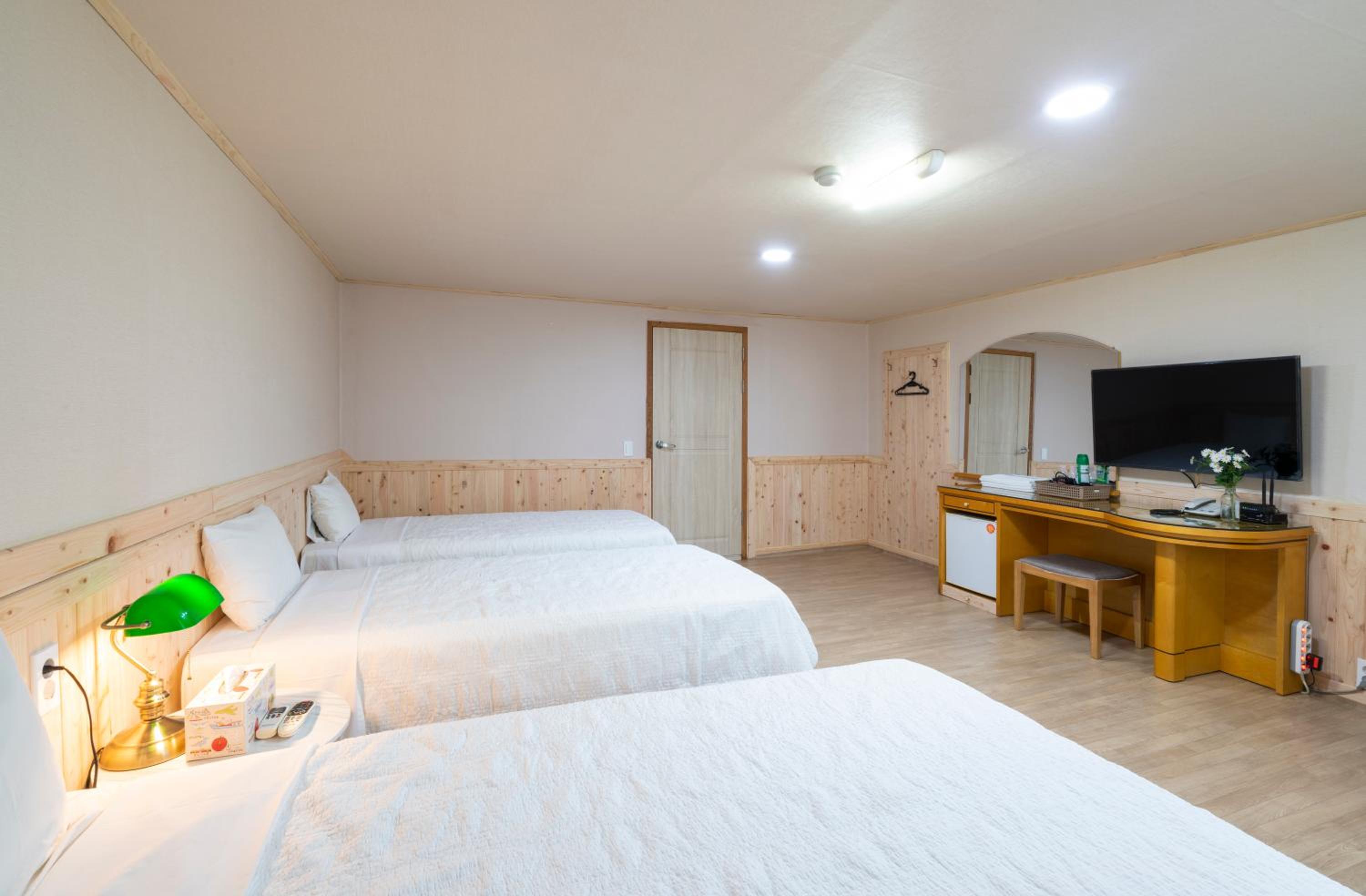 Each room at New Jeju Hotel is equipped with a flat-screen TV, cable channels, and cozy bed linens. The attention to detail in providing essential amenities like towels enhances the overall guest experience, making it a home away from home.