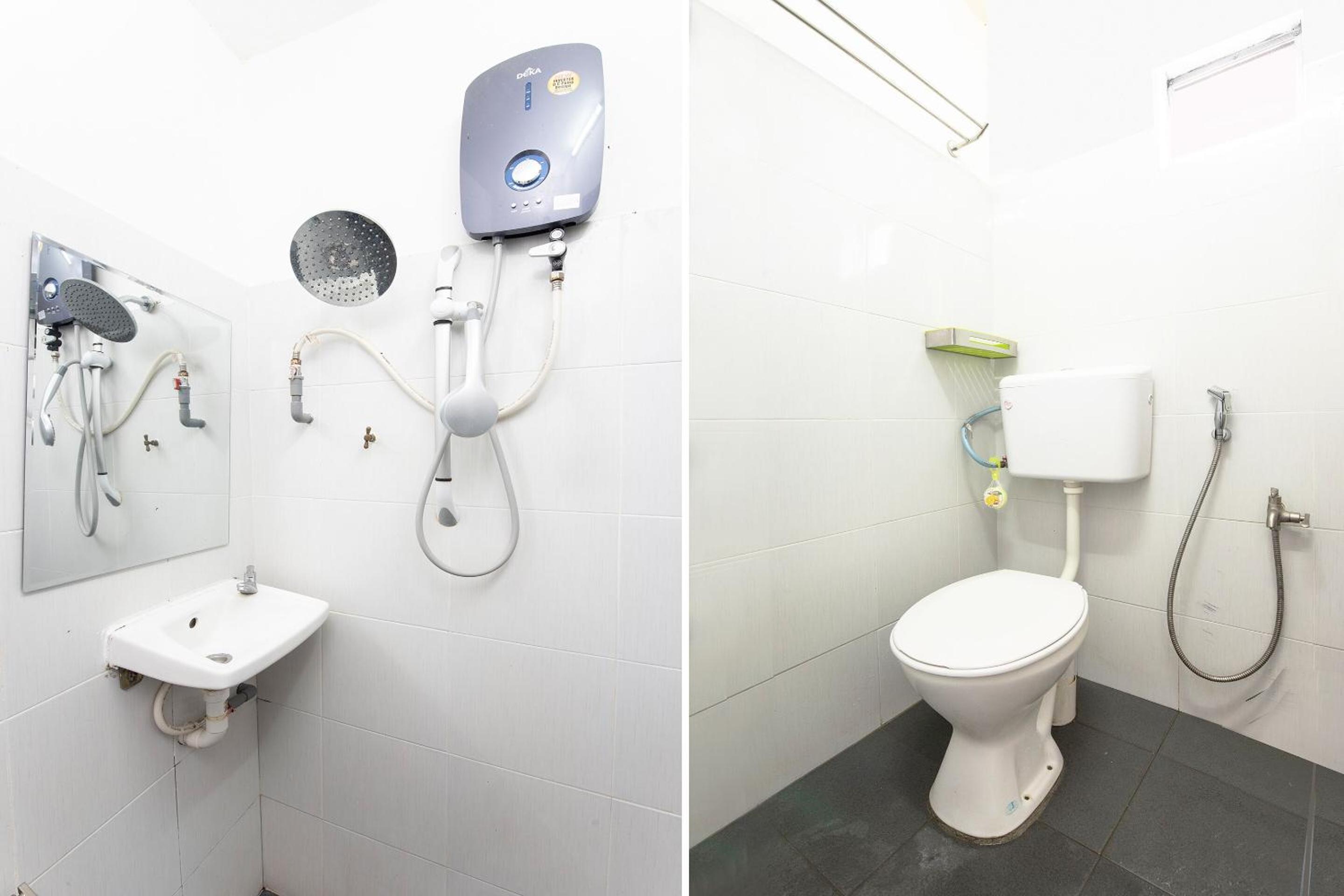 Toilet sink leaking. Shower head holder is broken.