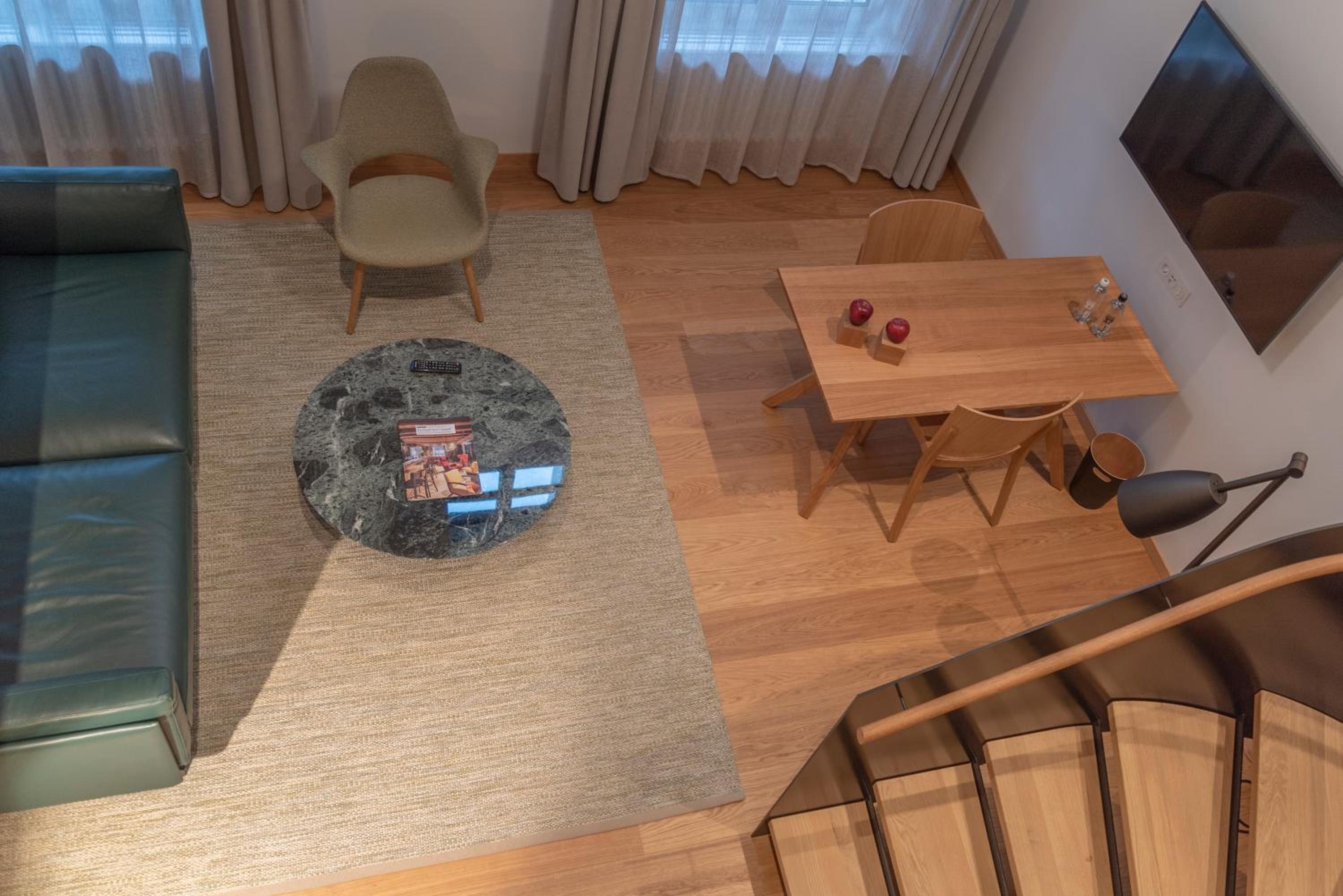 Experience a unique stay in one of the 3 distinct houses - Adler, Ochsen, and Wolf, each designed to provide comfort and style. The rooms are elegantly furnished with modern amenities for a relaxing retreat.