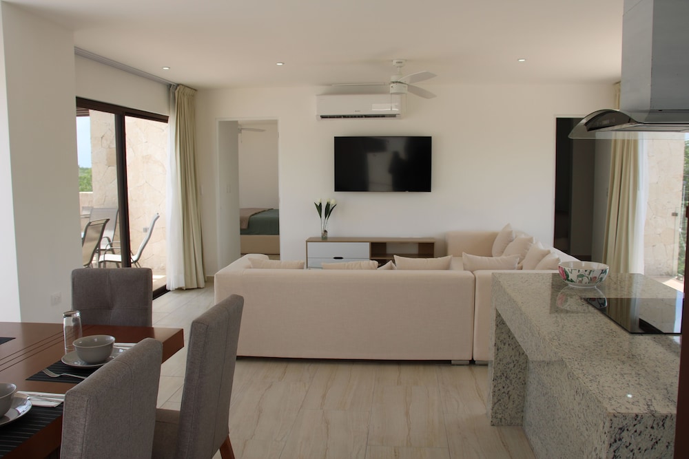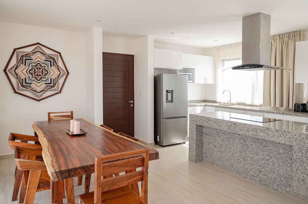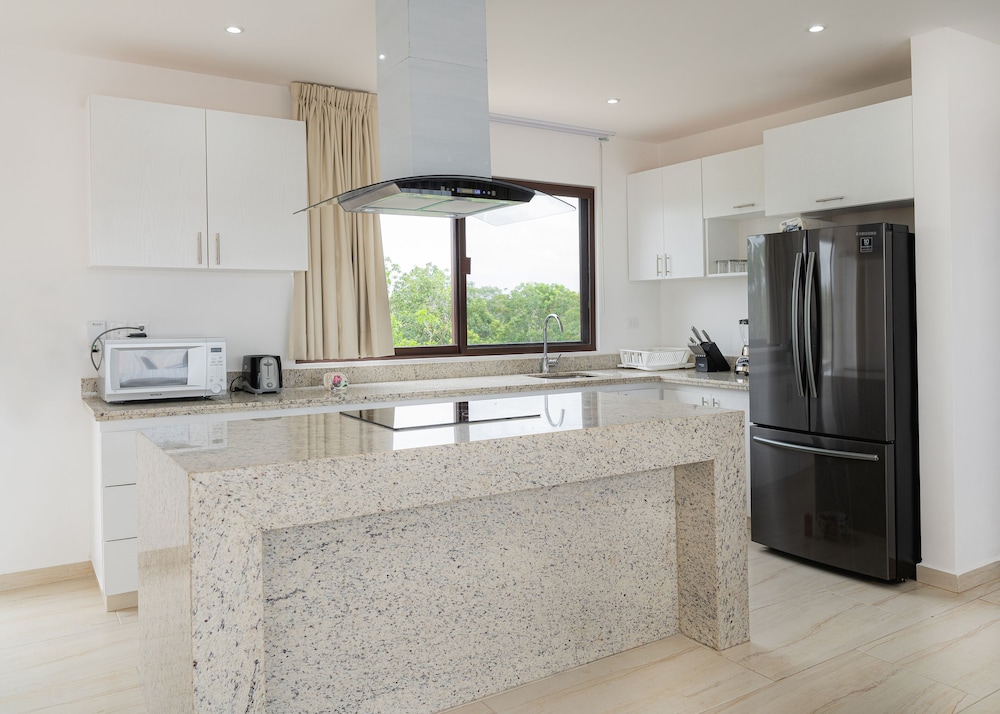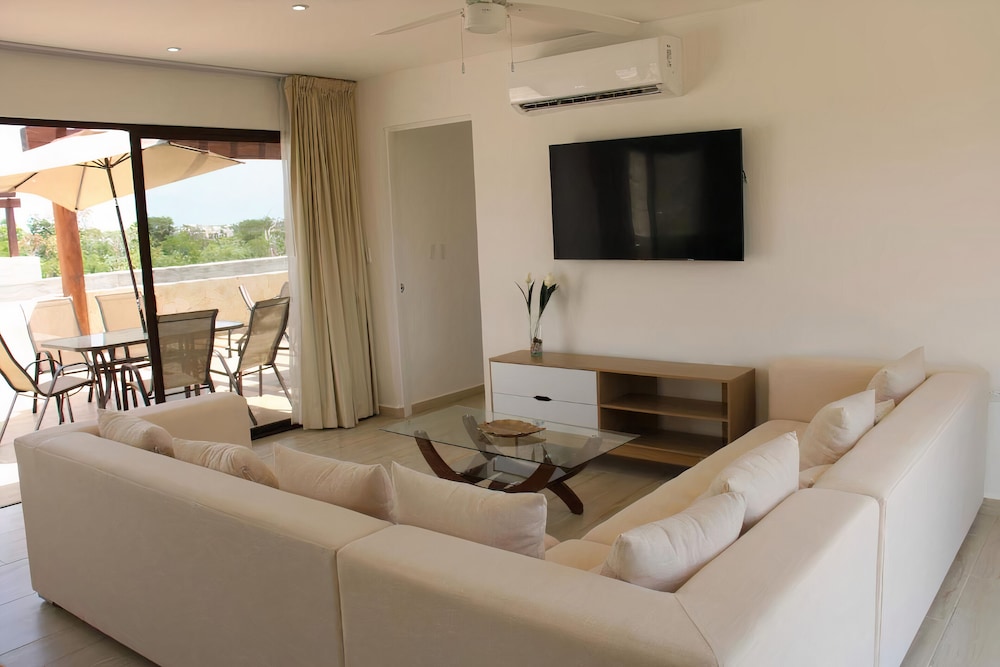 Excellent place for a short stay in Tulum. Only problem I had is very short hot showers. We stayed in a penthouse suite and hot water would last 4 min and turn cold. But overall the stay was very nice. 10 min walk to main road to eat or 15 min taxi to the beach.