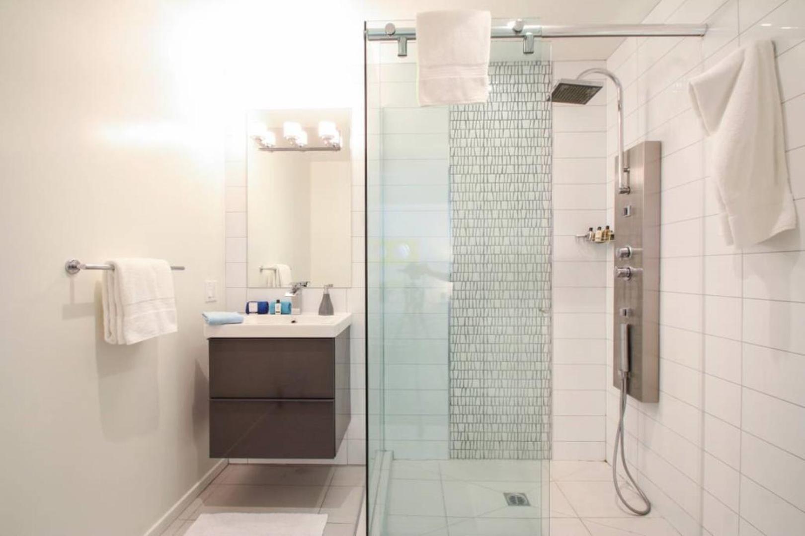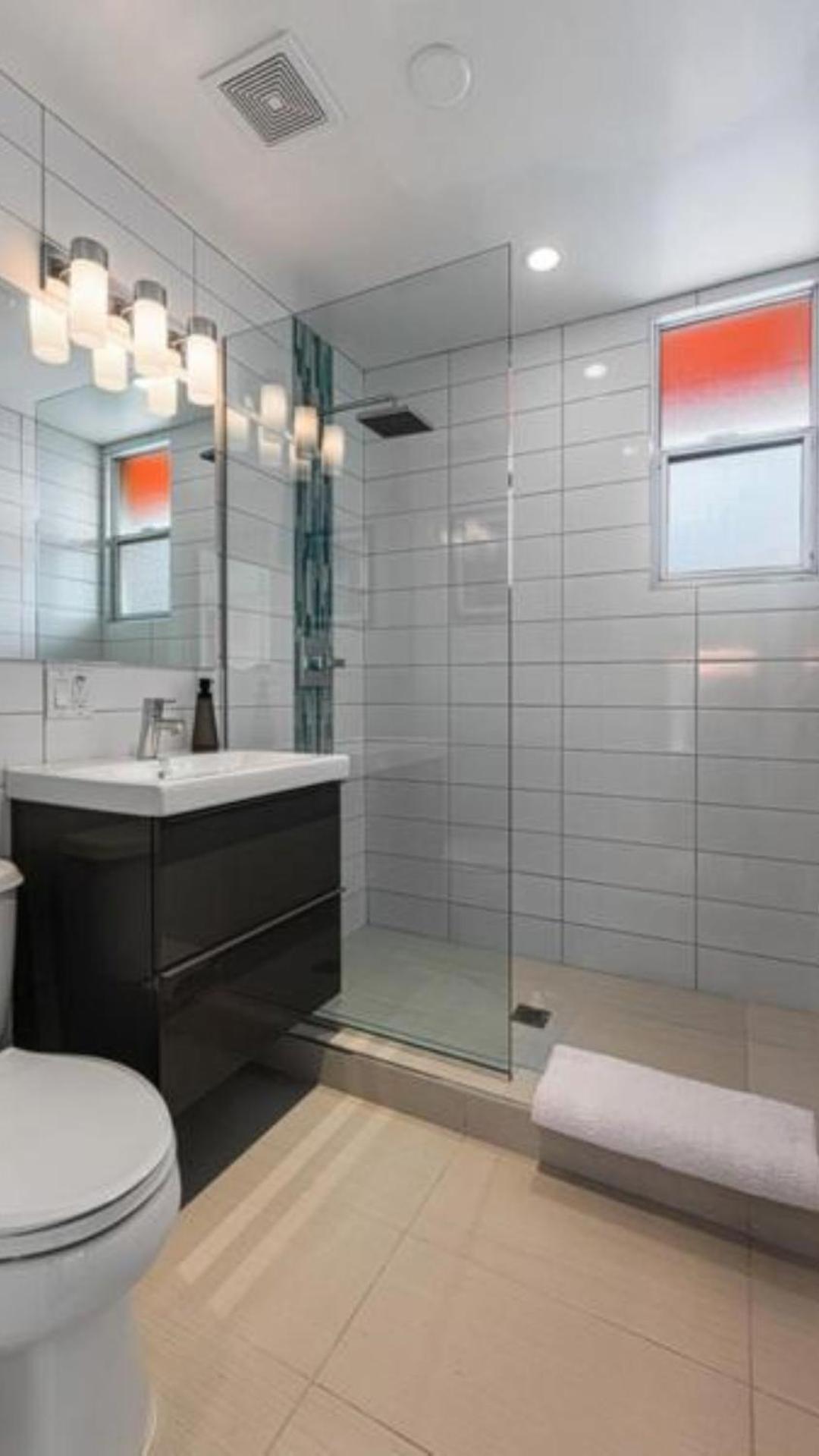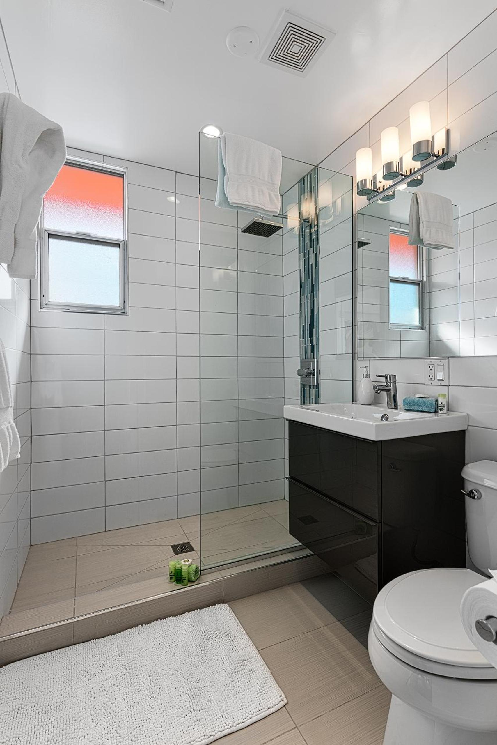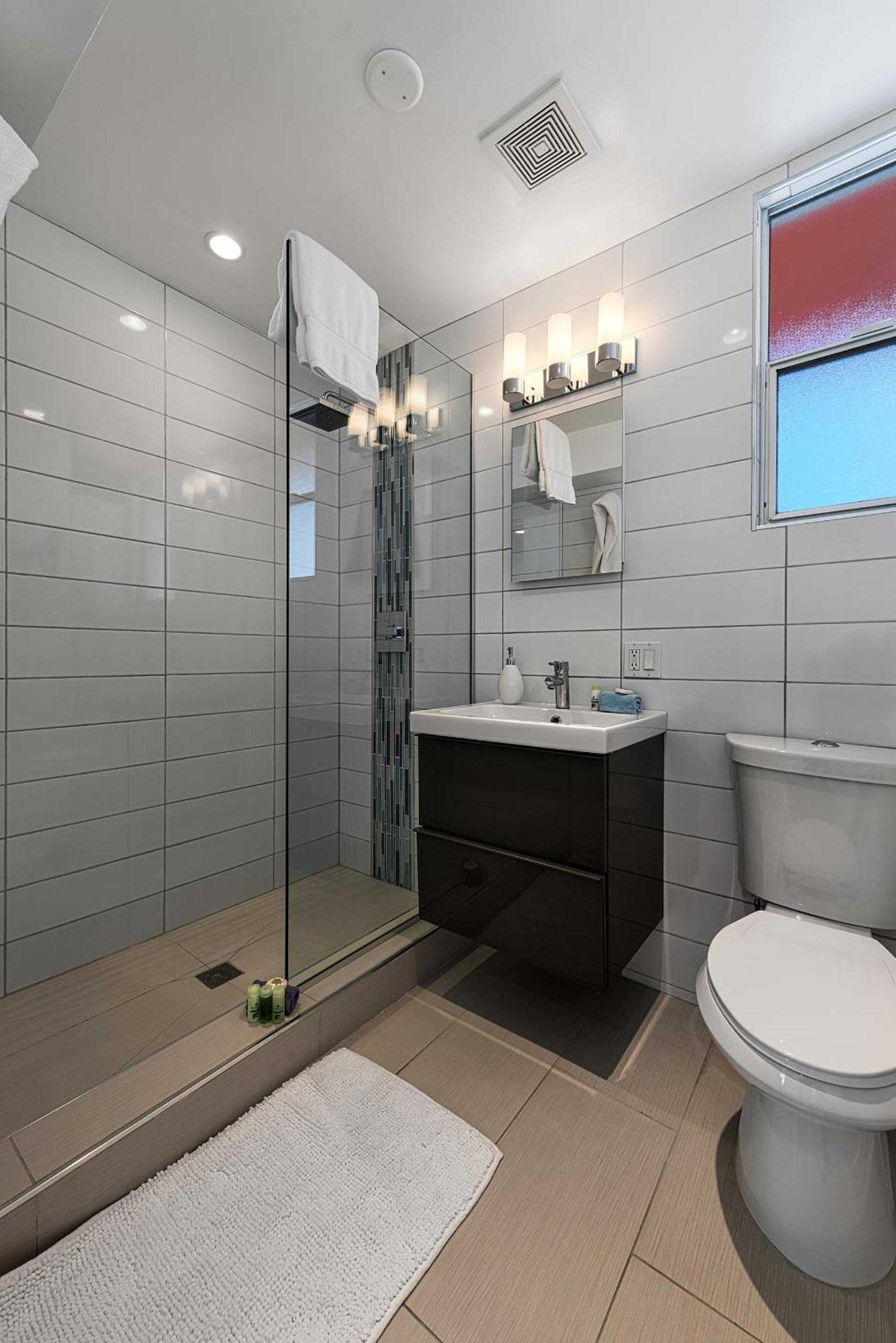Bathroom needs refreshing. Door did not close.