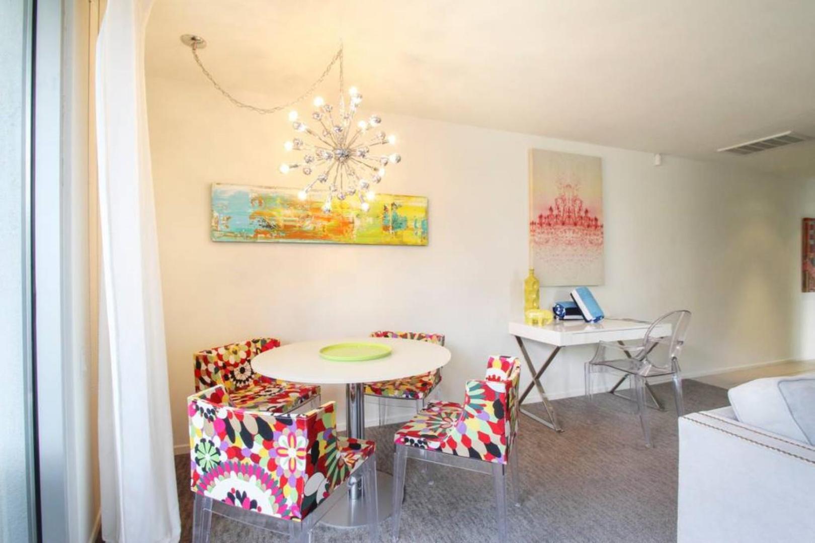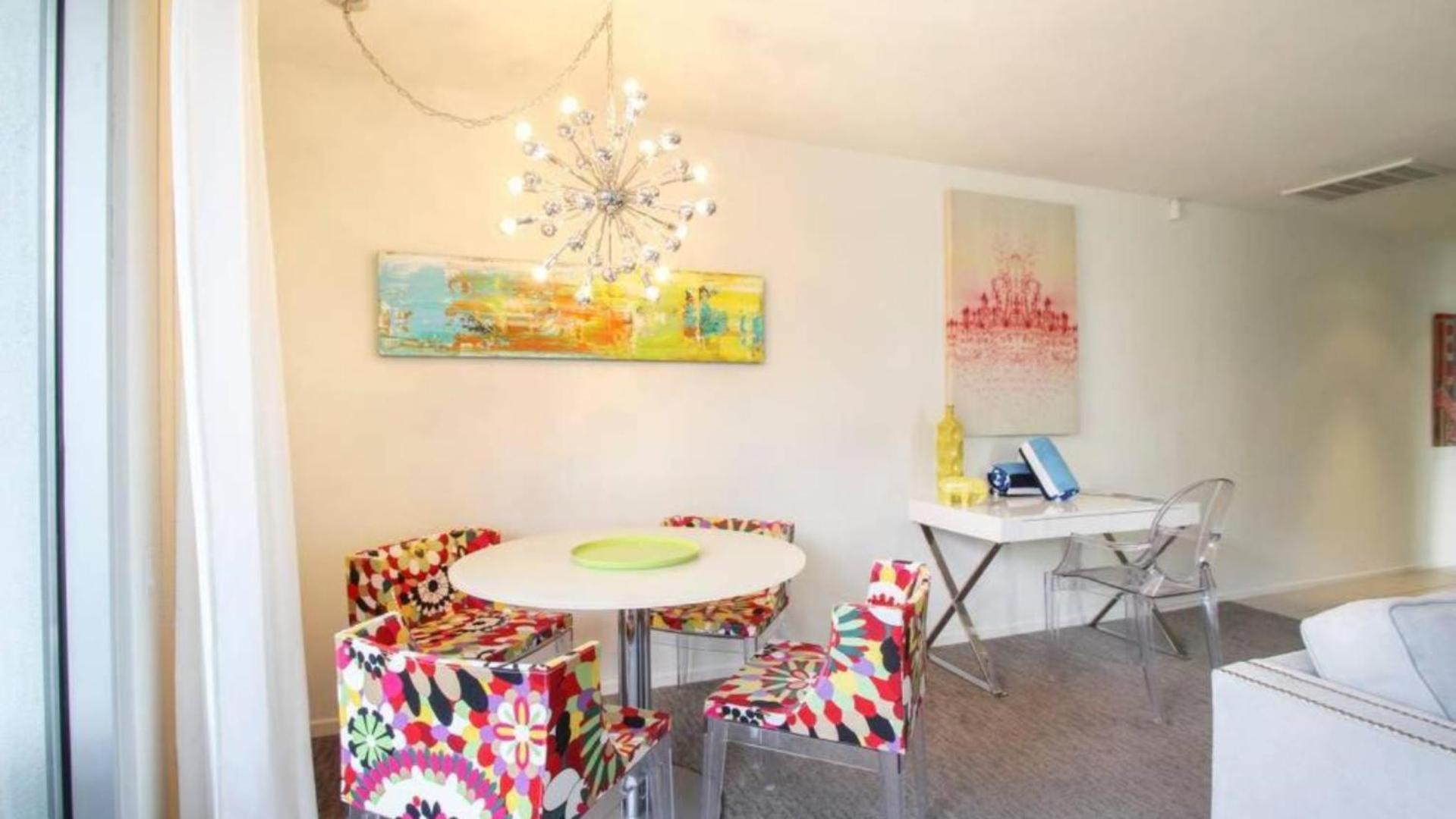 The staff was exceptionally friendly and helpful, welcome margarita was appreciated after a long drive—thank you, Jamie! Decor and overall vibe was so cheerful and sunny; unit was well-equipped, clean, and comfortable. The pool looked well-maintained, and the rental bikes and putting green were fun touches that we weren’t expecting.