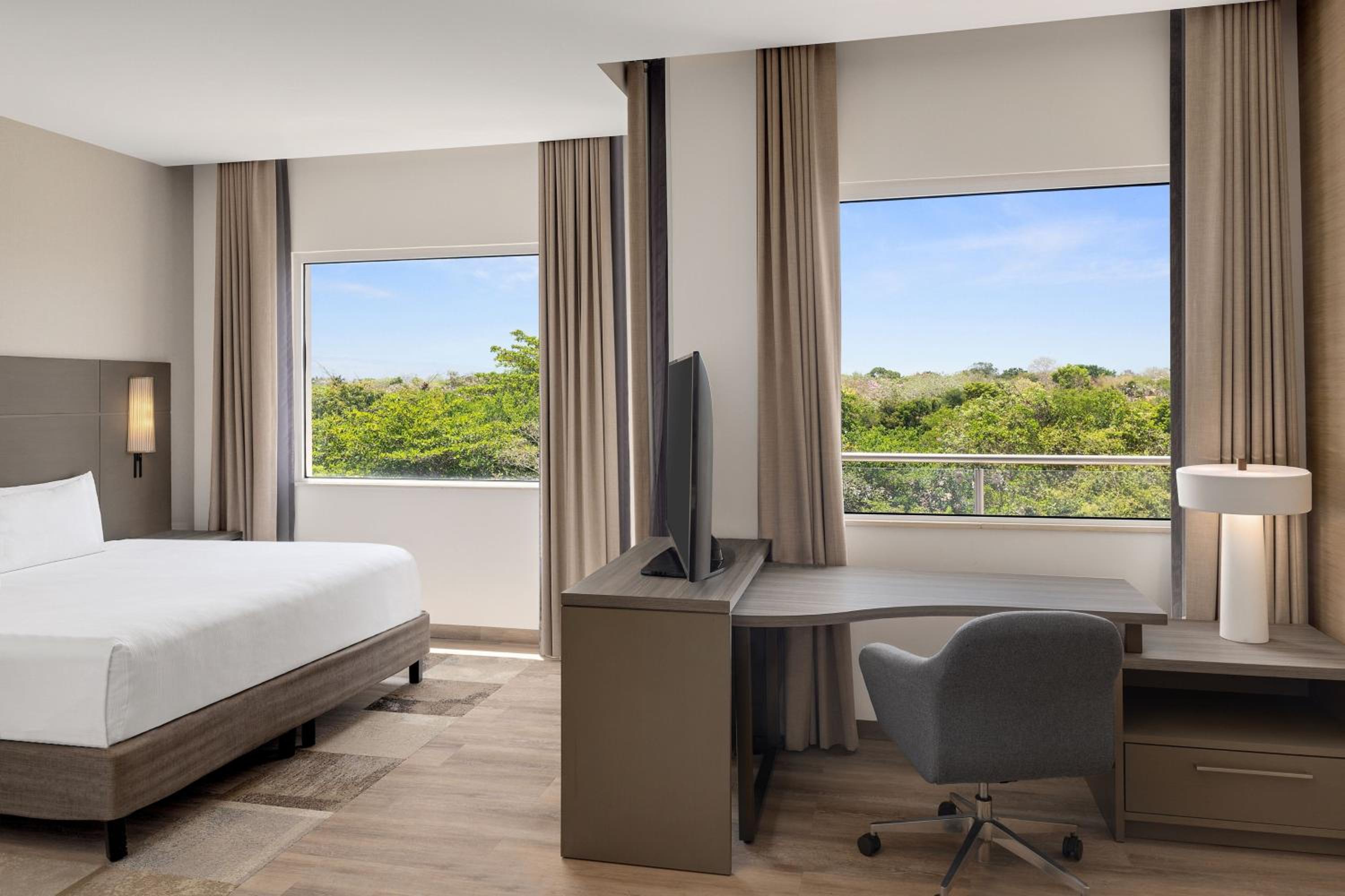 The rooms at Residence Inn by Marriott Playa del Carmen are elegantly designed and equipped with modern amenities such as air conditioning, flat-screen TV, and a kitchen. Some rooms even offer breathtaking city views from a private balcony.