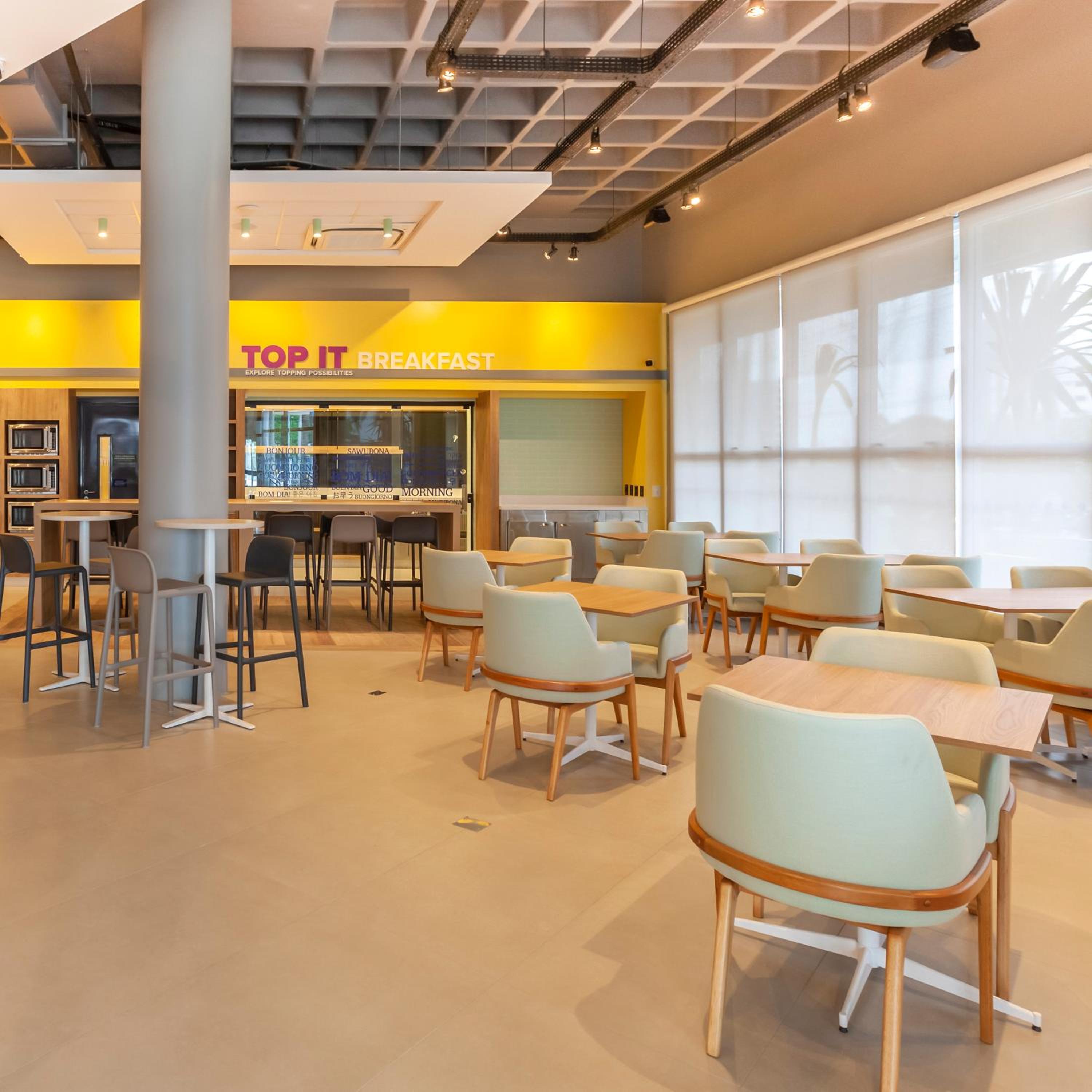 Café da manhã simples em relação ao valor da diária (por uma diária um pouco mais cara é possível obter um grande banquete em hotel concorrente próximo). O horário de café em dias comerciais deveria começar às 6h (inicia 6:30h), facilitando a alimentação de quem trabalha cedo ou viaja. Também não há restaurantes, apenas comida congelada na recepção, mas não atende bem como opção de alimentação saudável. Por ser um dos hotéis com diária entre as mais caras da cidade, estes pontos deveriam ser melhorados. Não vejo uma clara identificação com os serviços da marca Hilton global.