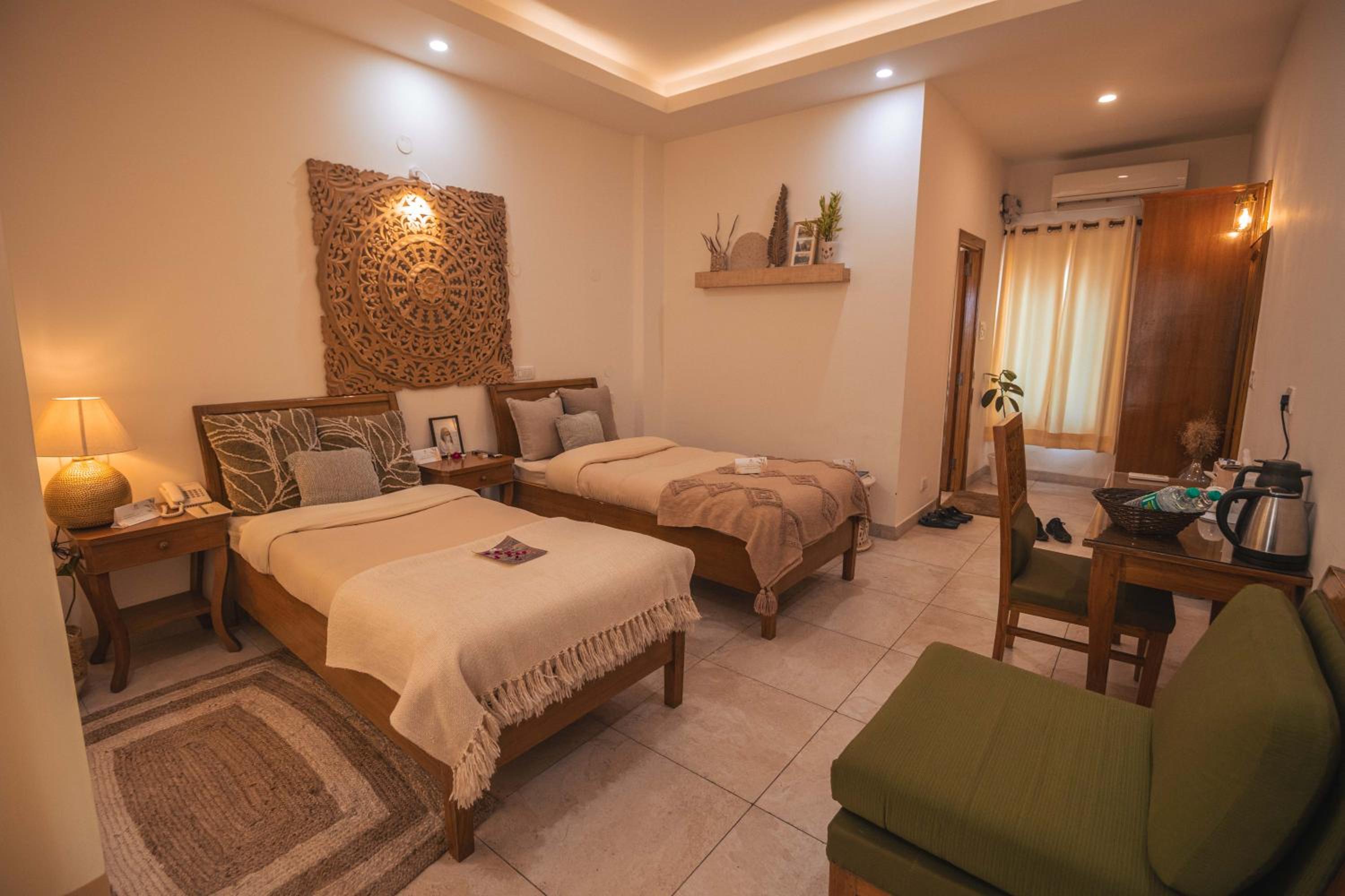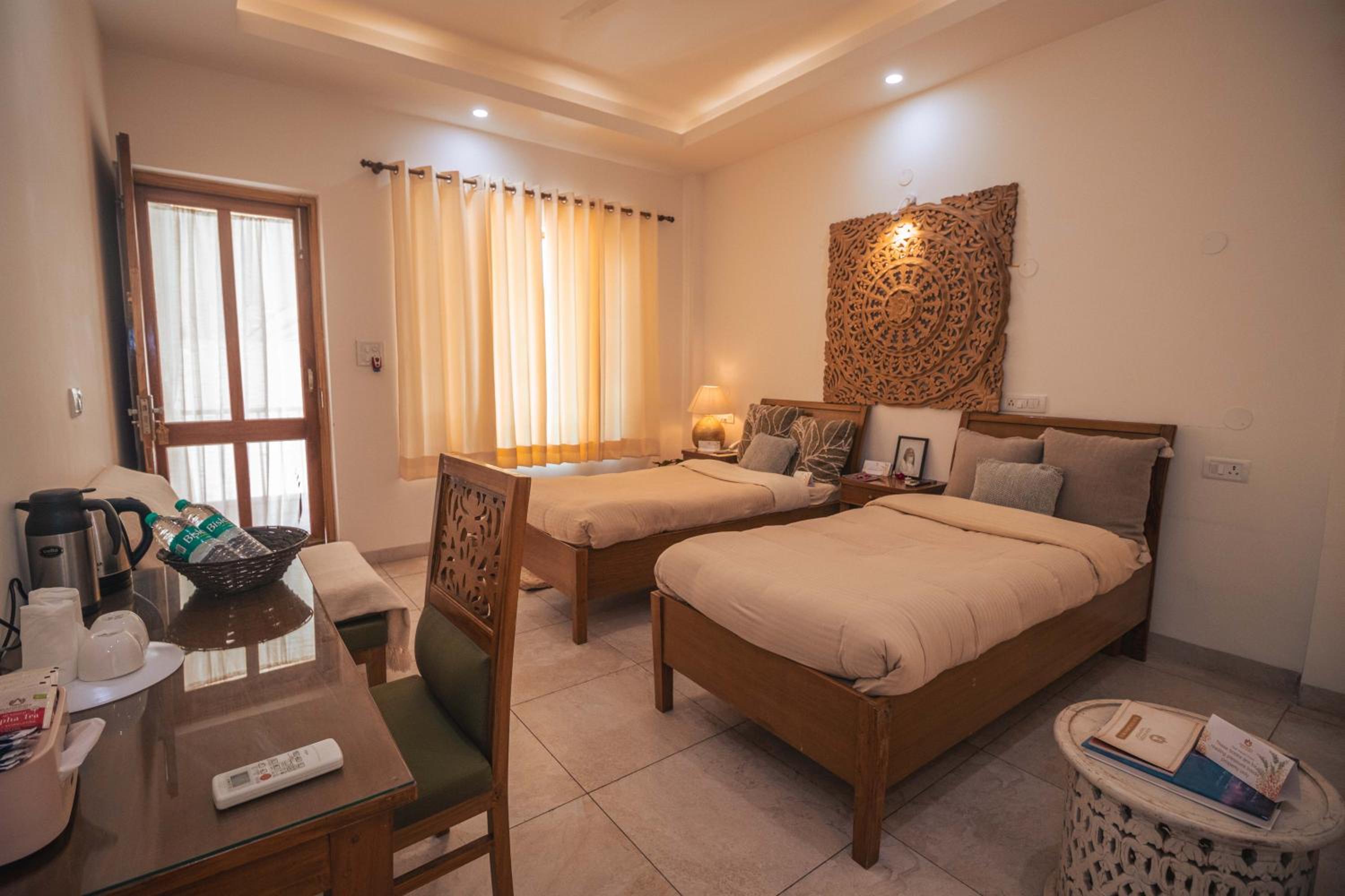 Experience the tranquility of Rishīkesh at Maharishi Ayurveda-Boutique Wellness Retreat. Indulge in our air-conditioned rooms, each offering a private balcony with breathtaking mountain views. Relax in comfort with free WiFi and modern amenities, ensuring a peaceful stay.