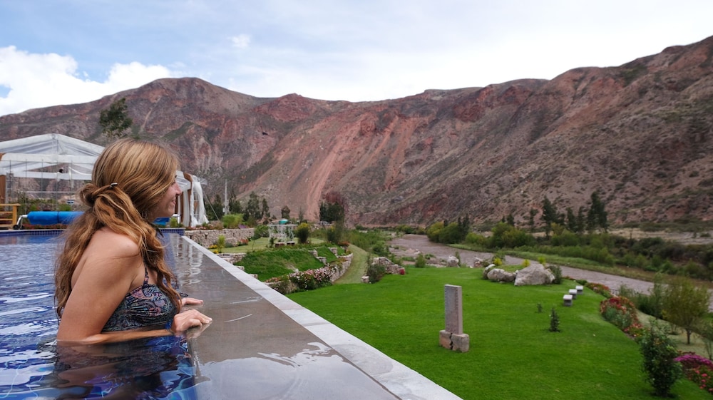 I loved this hotel! The place was beautiful, great view of the mountains, beautiful landscape. Definitely a great place to relax. The staff was also amazing! I received a few VIP perks: welcome chocolate mousse, access to a nice big jacuzzi and free upgrade to the suite with a huge jet bathtub. They also have a nice infinity pool and the hotel is close enough to town. Plus llamas and alpacas on their property for close up encounters.