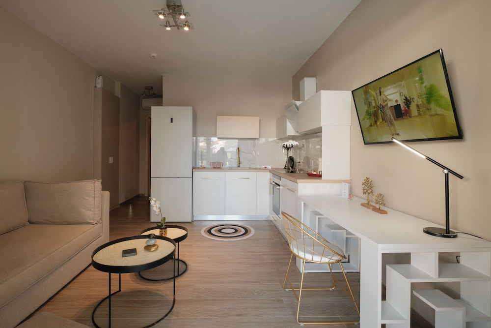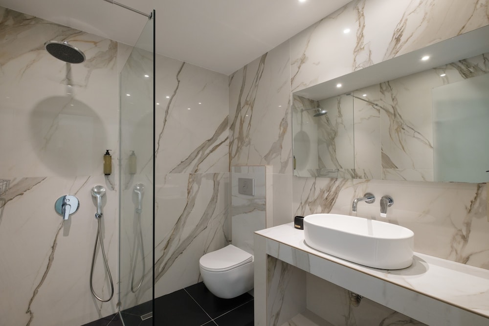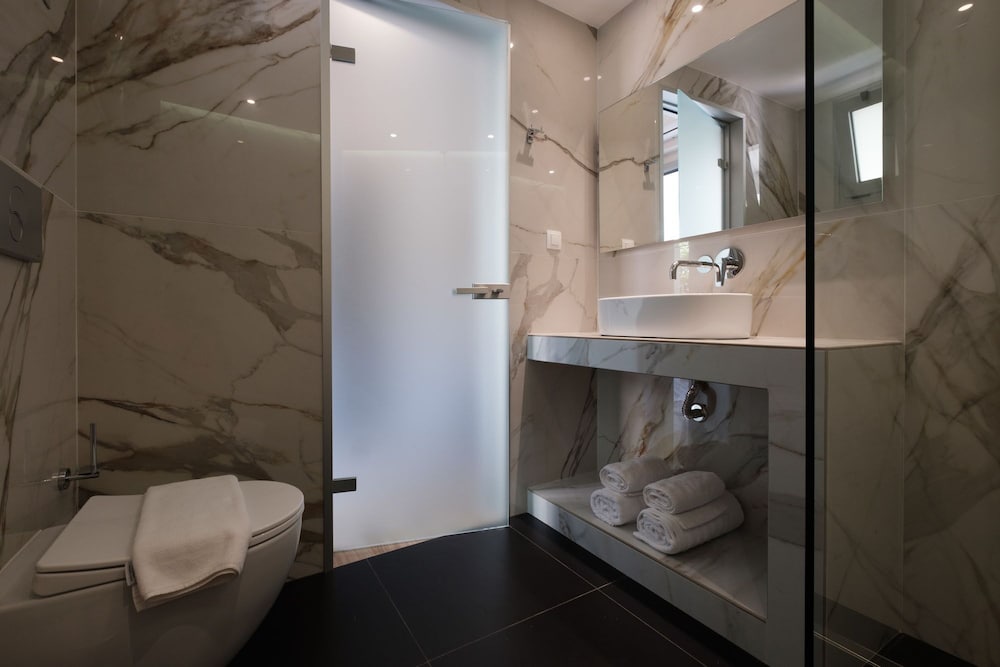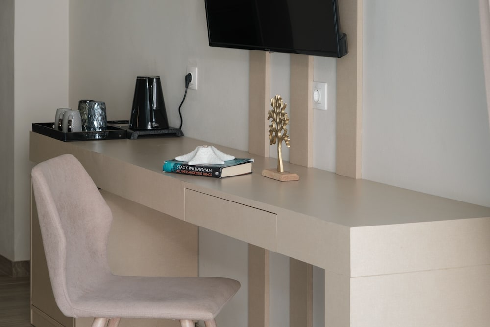 The hotel is modern design and has nice comfortable rooms and good pool with more than enough sunbeds and umbrellas. On check-in receptionist was very friendly and since early arrival she asked us to wait in the bar. We could enter the room 2 hours earlier than actual check-in which was very good since it was a hot day. After entering the room we noticed that the bathroom have not been thourougly cleaned as there were long black hair on the floor and we noticed the bed linen had some stains on them. We asked them to be changed and they changed them without a problem. Overall experience with the hotel was ok, breakfast was basic, but still ok, except the coffee was barely tasting like coffee and hot water meant for tea was lukewarm.