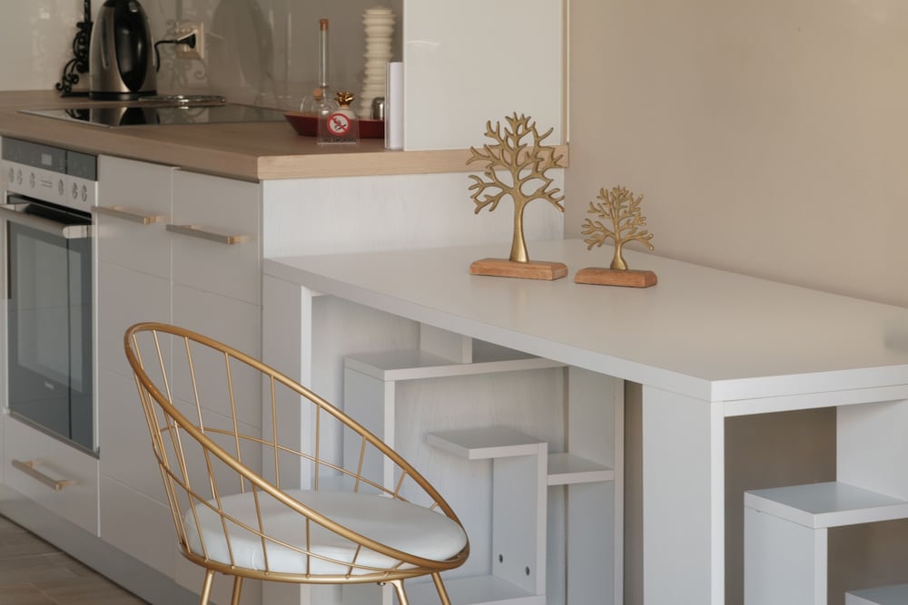 - kein Schrank zum verstauen von Kleidung, nur eine kleine Schublade