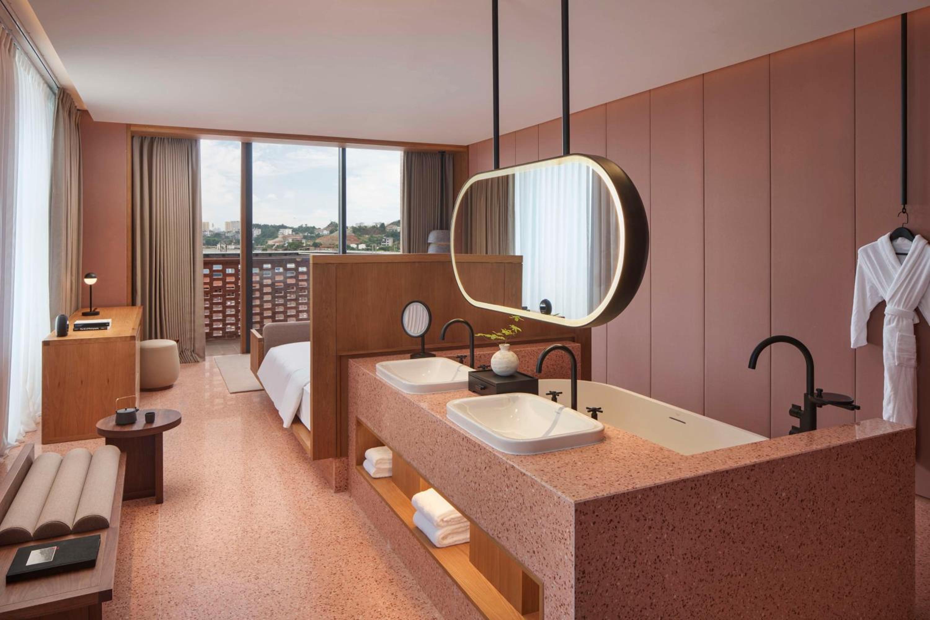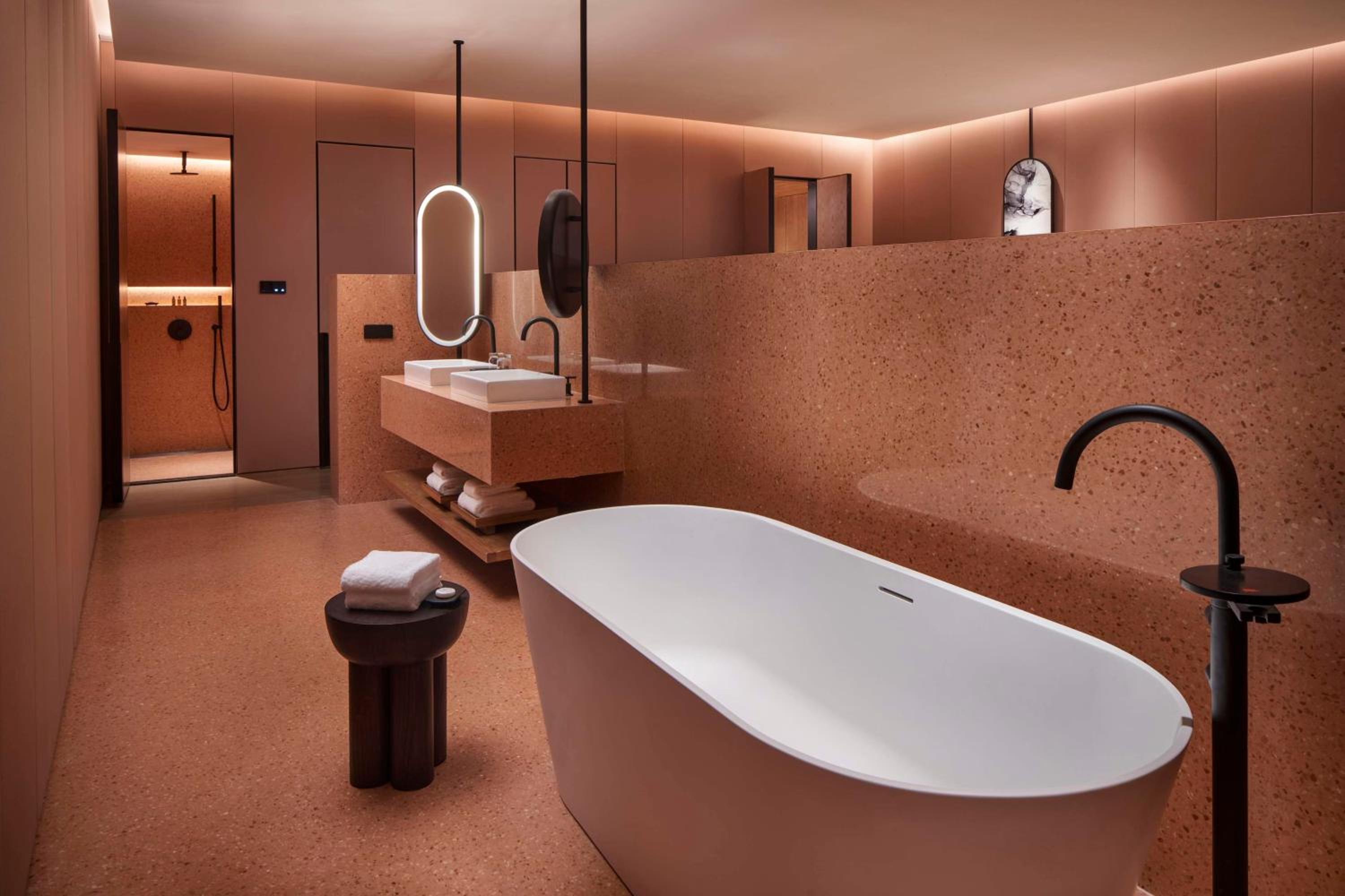 Design. Cleanliness. Furnishing. David chipperfield design. Beautiful Proportions. And spaces Very nice. Great location. Colors. Great bath tub and bathroom design.