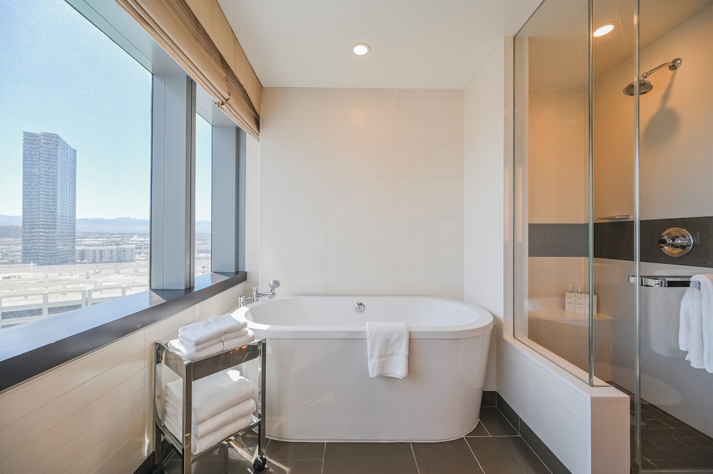 This is an OWNER’S SUITE which means that the apartment is not cleaned, trashes are not taken out, towels are not changed and basically the answer to all your questions is “it’s an owner’s suite so we can’t do anything”. Despite of extensive list of kitchen equipment at hotels.com, you need to ask Housekeeping to deliver all of them starting from a toast maker, still no silverware available only plastic ones. Washing machine is not working and only two dishwasher tablets are delivered even we stayed three nights. The view is not towards the Strip but to Aria’s entrance/garage. Next time I pay close attention that I don’t book a privately owned suite but a regular Vdara room.