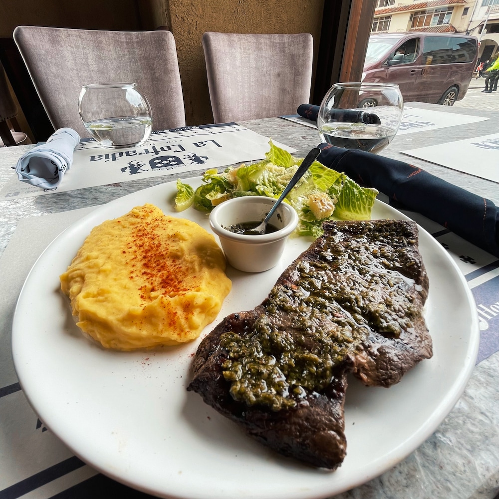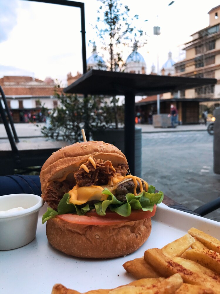 La mañana siguiente ibamos a desayunar pero de repente nos dijeron que no incluía desayuno cuando en la reserva via Expedia estaba incluido, sin hablar que reservamos la habitación “king” o la más cara. Ya cuando le mostré a la recepcionista la reserva de Expedia tuvo que hablar con el jefe y me dijeron que me daban un desayuno americano, el más básico del planeta. Claramente nos fuimos con mi esposa a los 100 lugares que hay en Cuenca para desayunar y comer. Pésima experiencia!